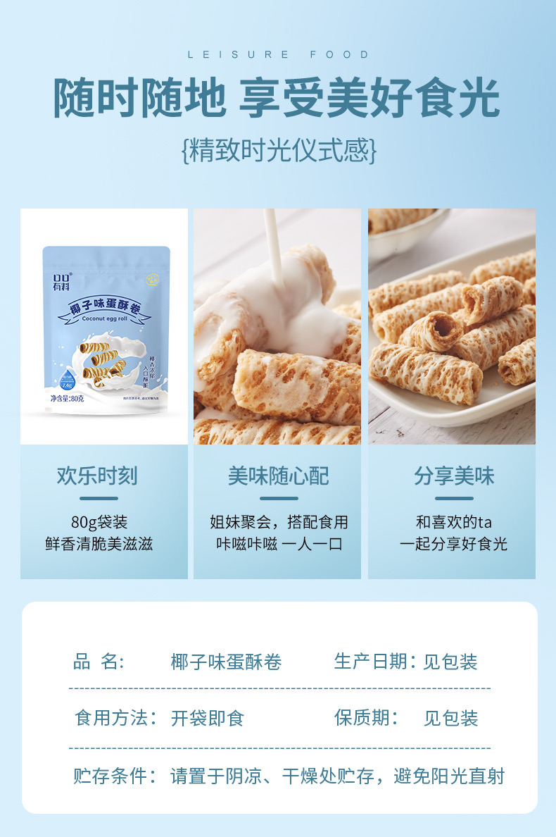 【满满烘烤椰奶香!蛋卷鸡蛋卷】层层酥脆,一口咬下,椰香四溢,椰子味蛋卷鸡蛋卷饼干 多规格
