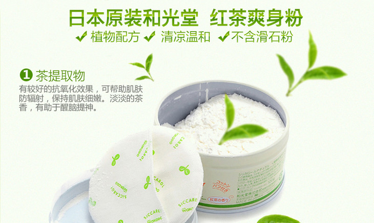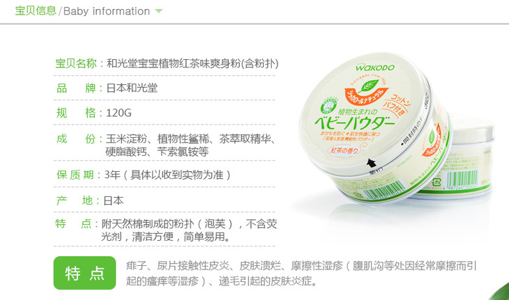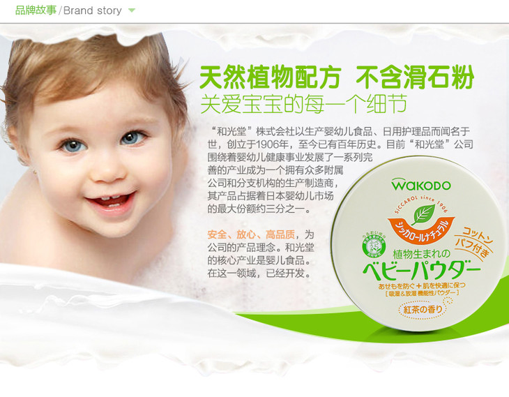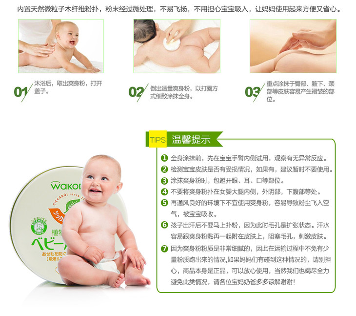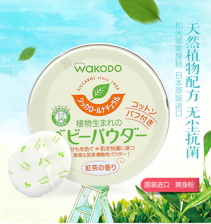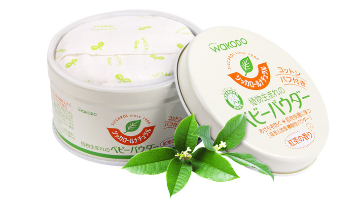 日本Wakodo和光堂婴儿爽身粉滋润保湿绿茶宝宝痱子粉120g