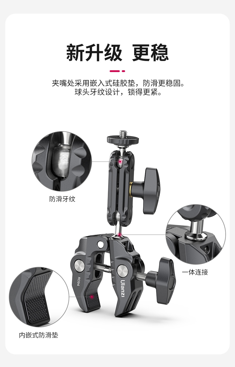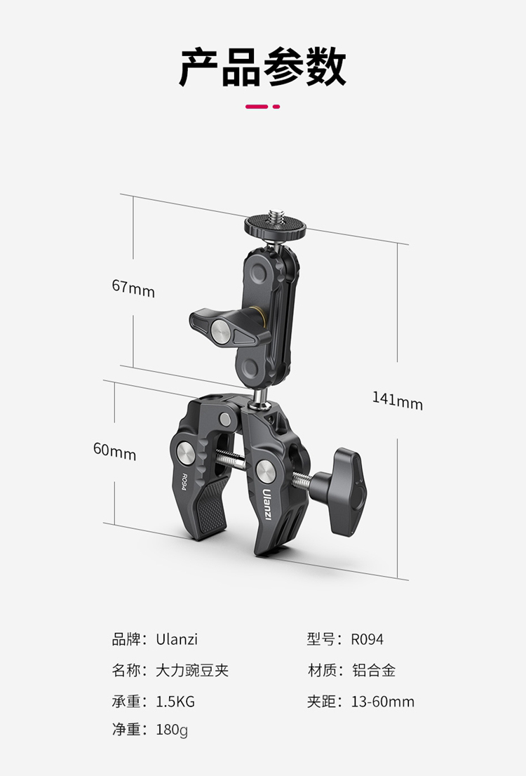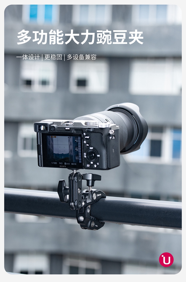 Ulanzi优篮子 R094大力夹豌豆荚多功能直播摄影配件蟹钳夹金属魔术手臂单反相机补光灯监控器C型手机固定脚架
