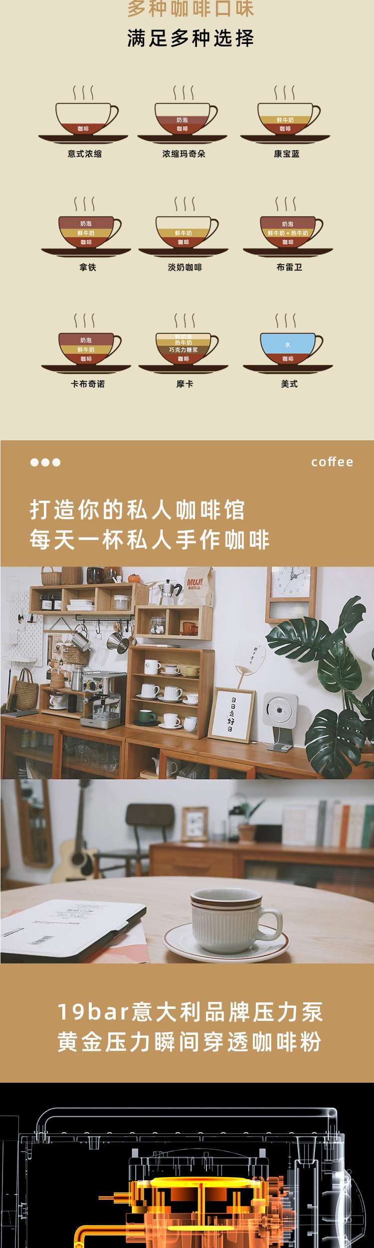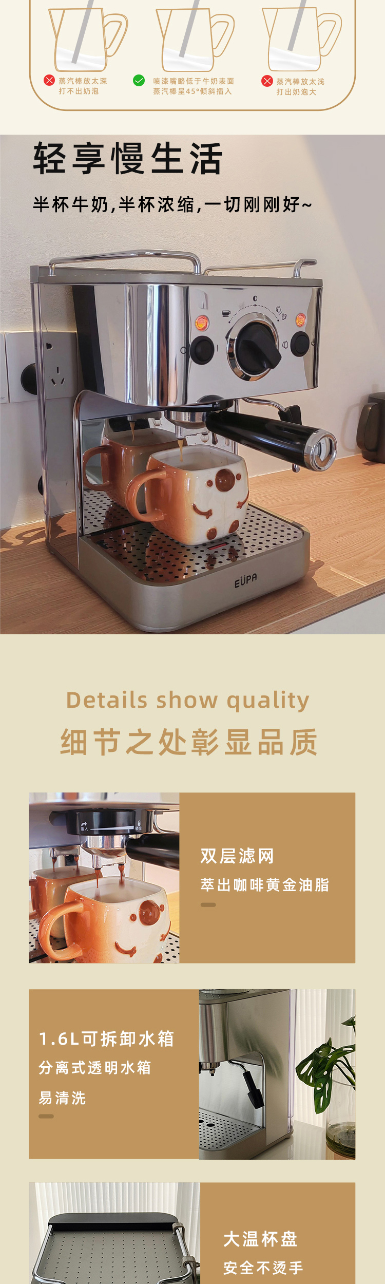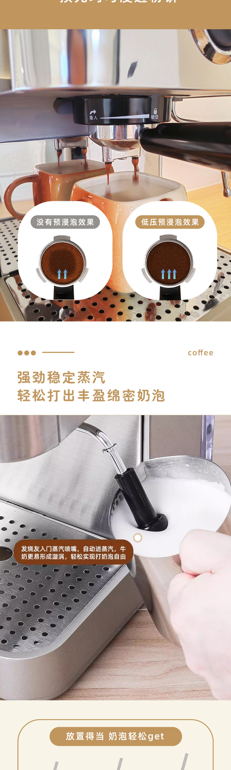灿坤 咖啡机TSK-1829A泵浦式高压咖啡机半自动意式浓缩小钢炮全钢机可露营EUPA