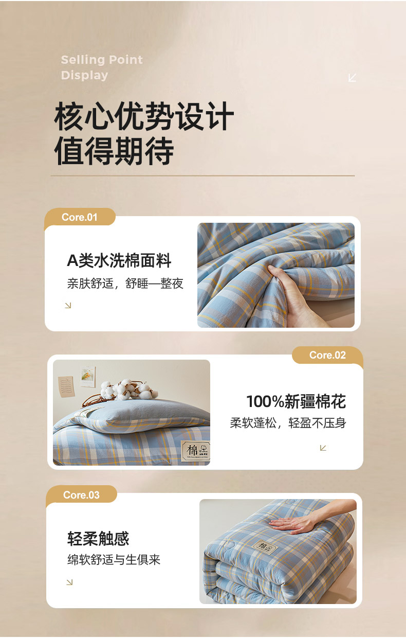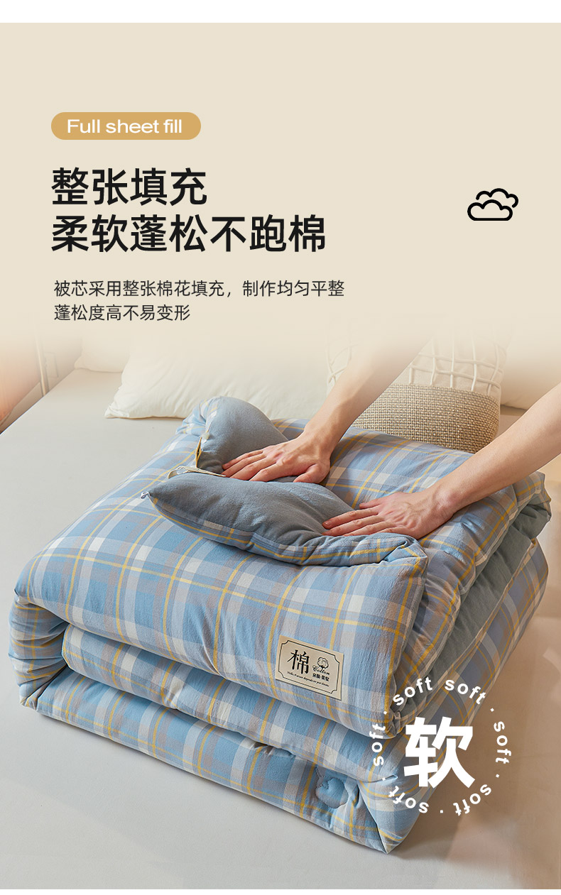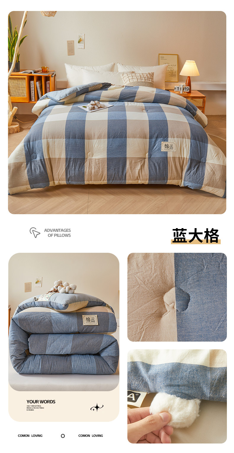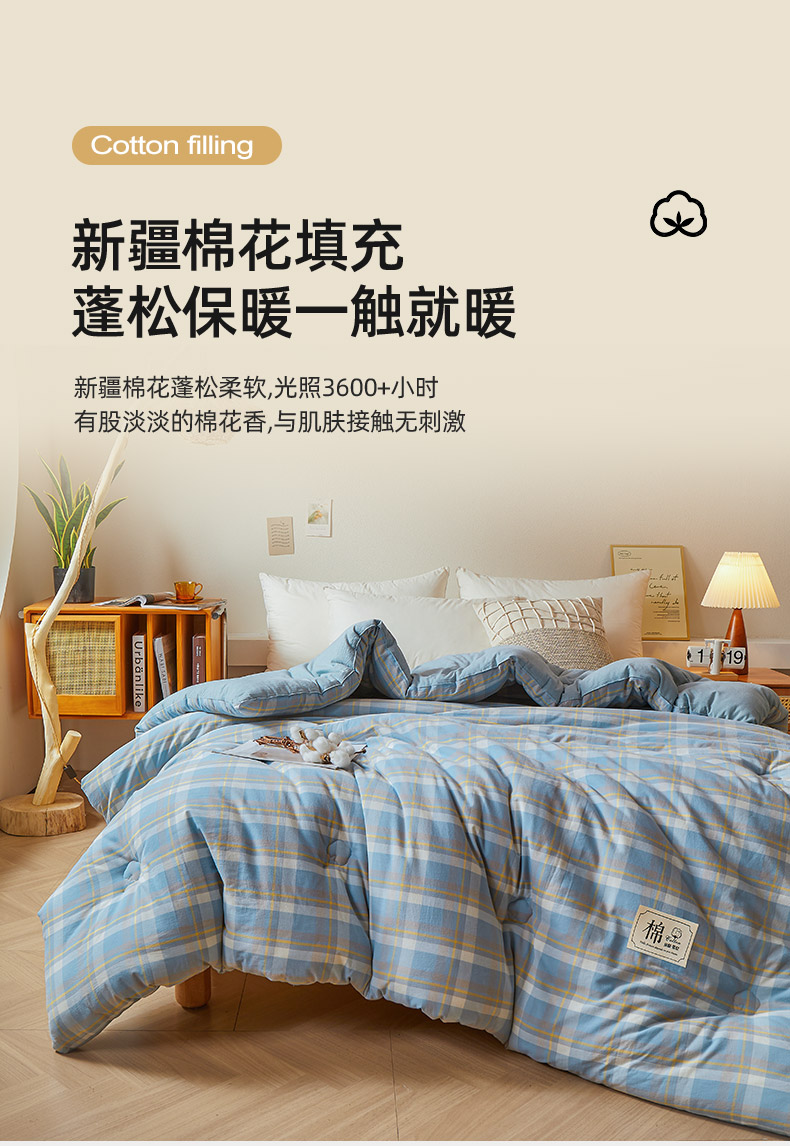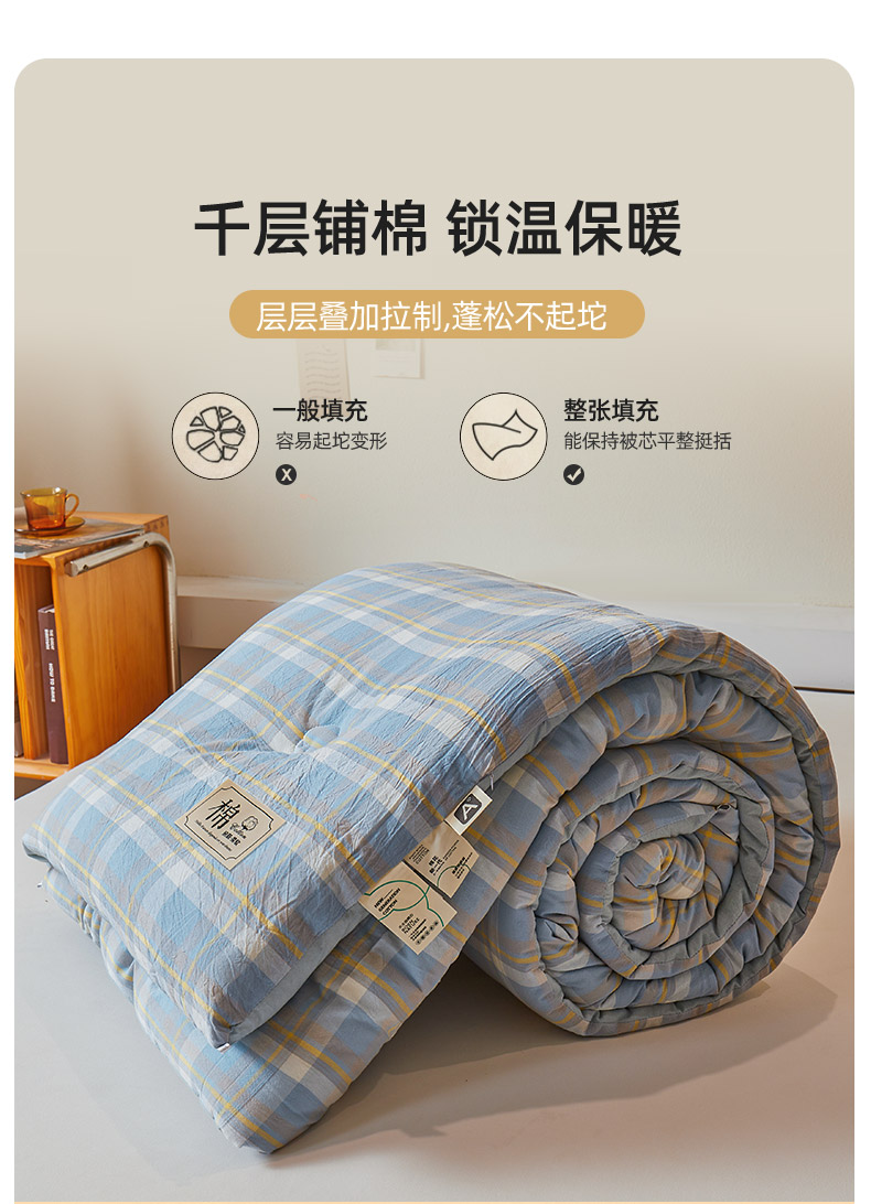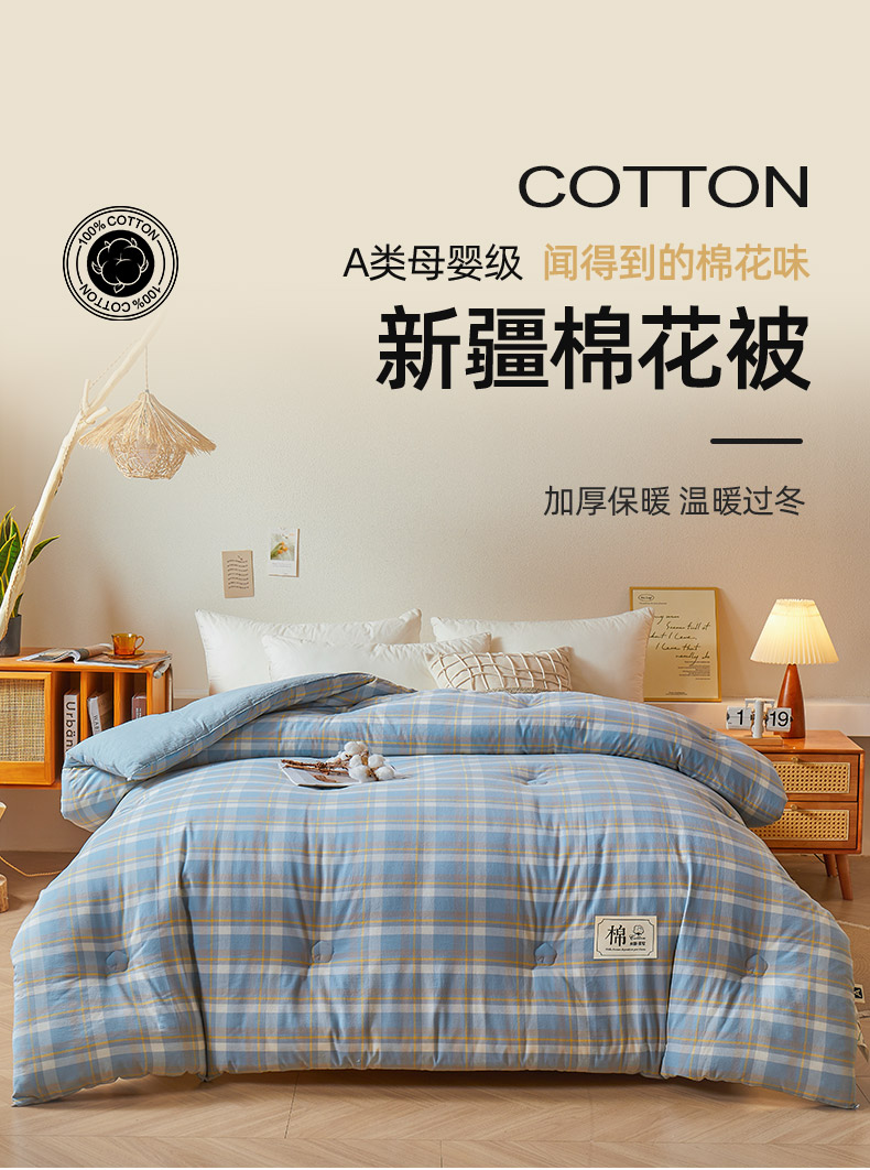 【品牌直发】加倍生活 A类无印风新疆棉花被 真棉花、带检测口 春秋被/冬被/加厚冬被 1.5m/2.0m/2.2m被芯