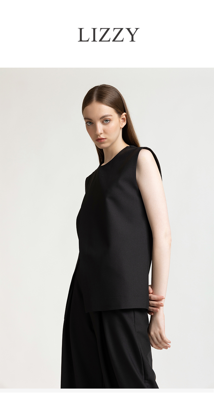 LIZZY 早秋 简约优雅帅气设计感开叉无袖廓版型知性气质通勤马甲上衣+直筒长裤7851