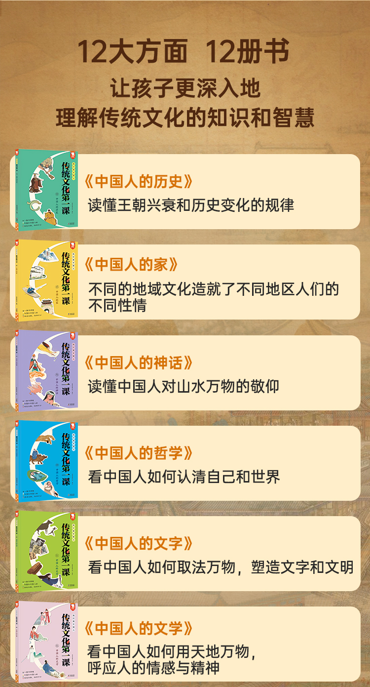 《传统文化第一课》典藏礼盒装 全12册 7-15岁 360+主题故事 5000+知识点 12大方面让孩子更深入地理解传统文化的知识和智慧 赠:传统文化桌游