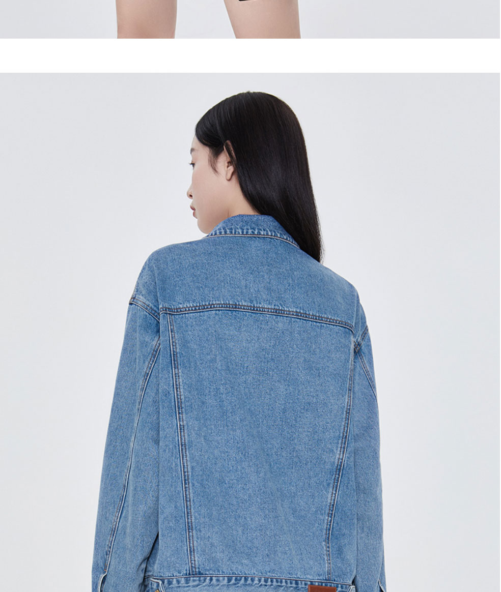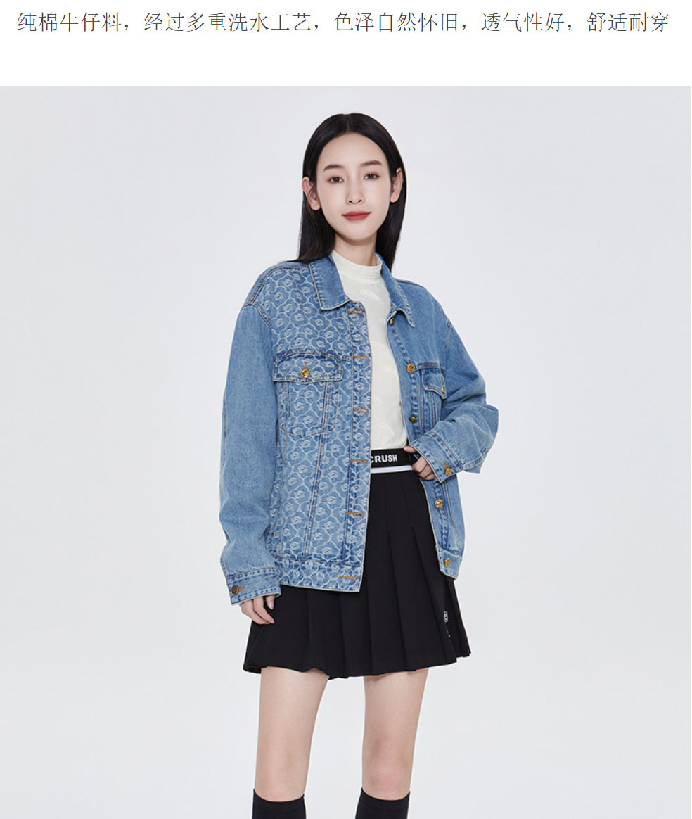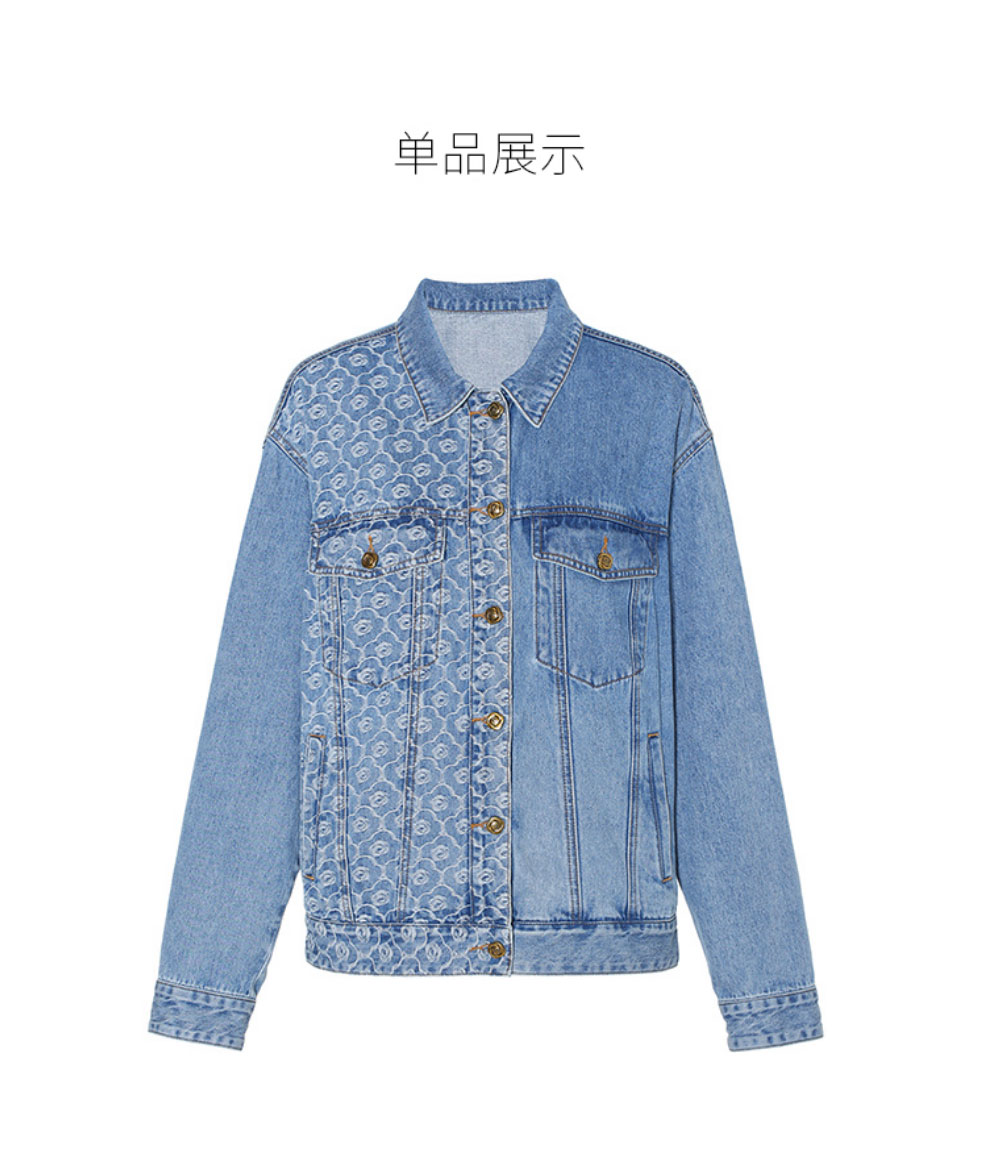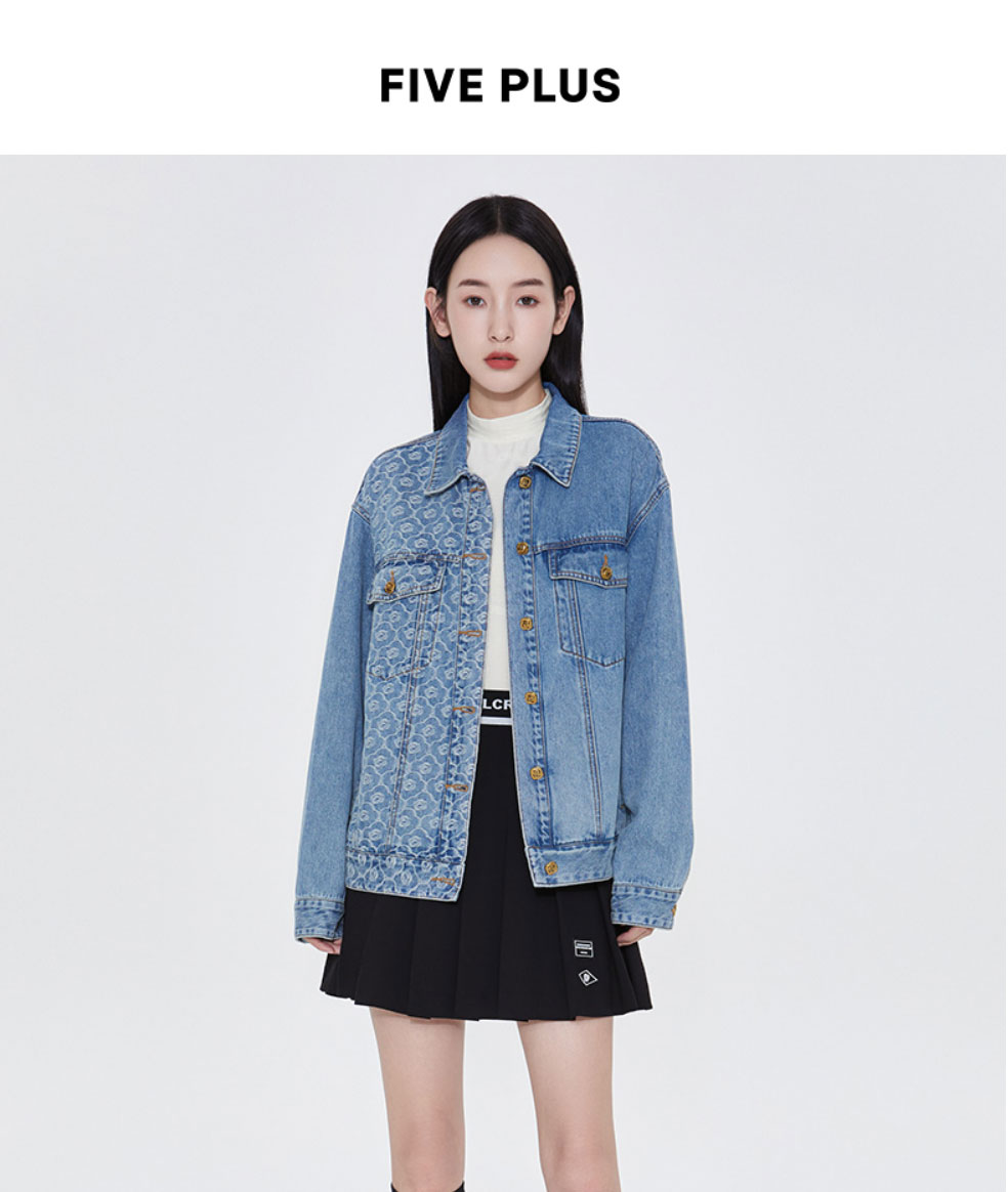 FIVE PLUS2022新款女春装bf风牛仔外套女宽松中长款夹克提花洗水2WA1041020