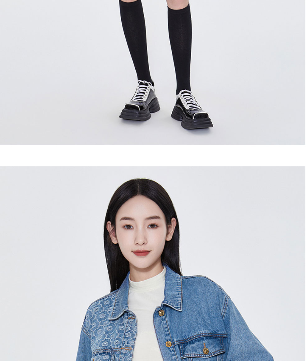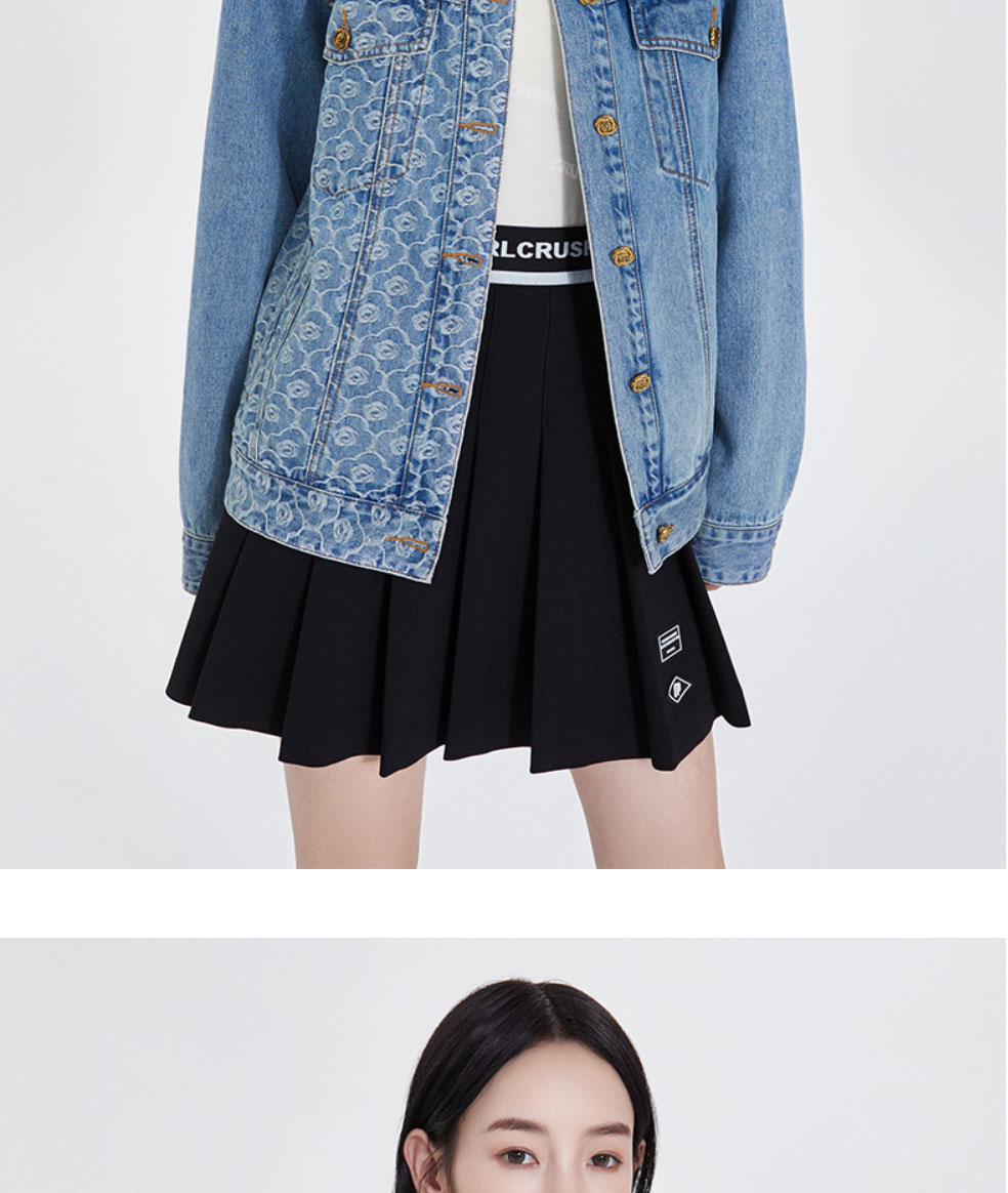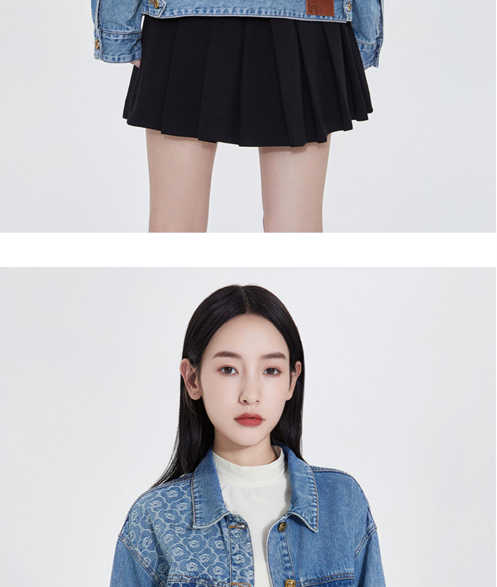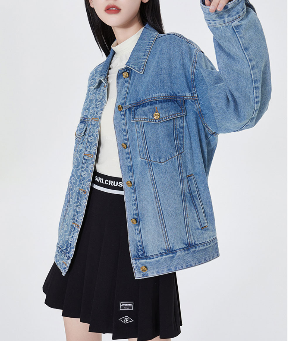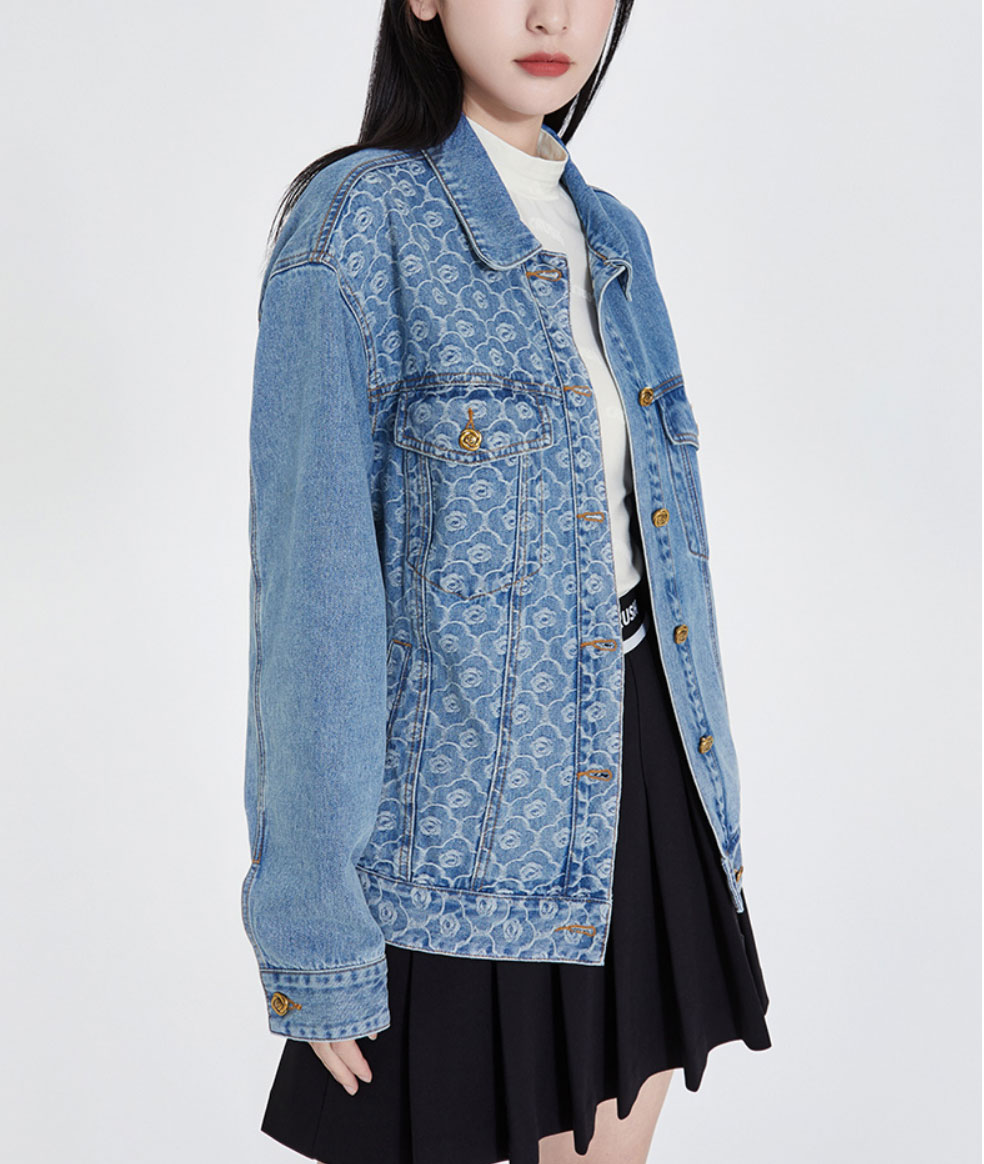 FIVE PLUS2022新款女春装bf风牛仔外套女宽松中长款夹克提花洗水2WA1041020