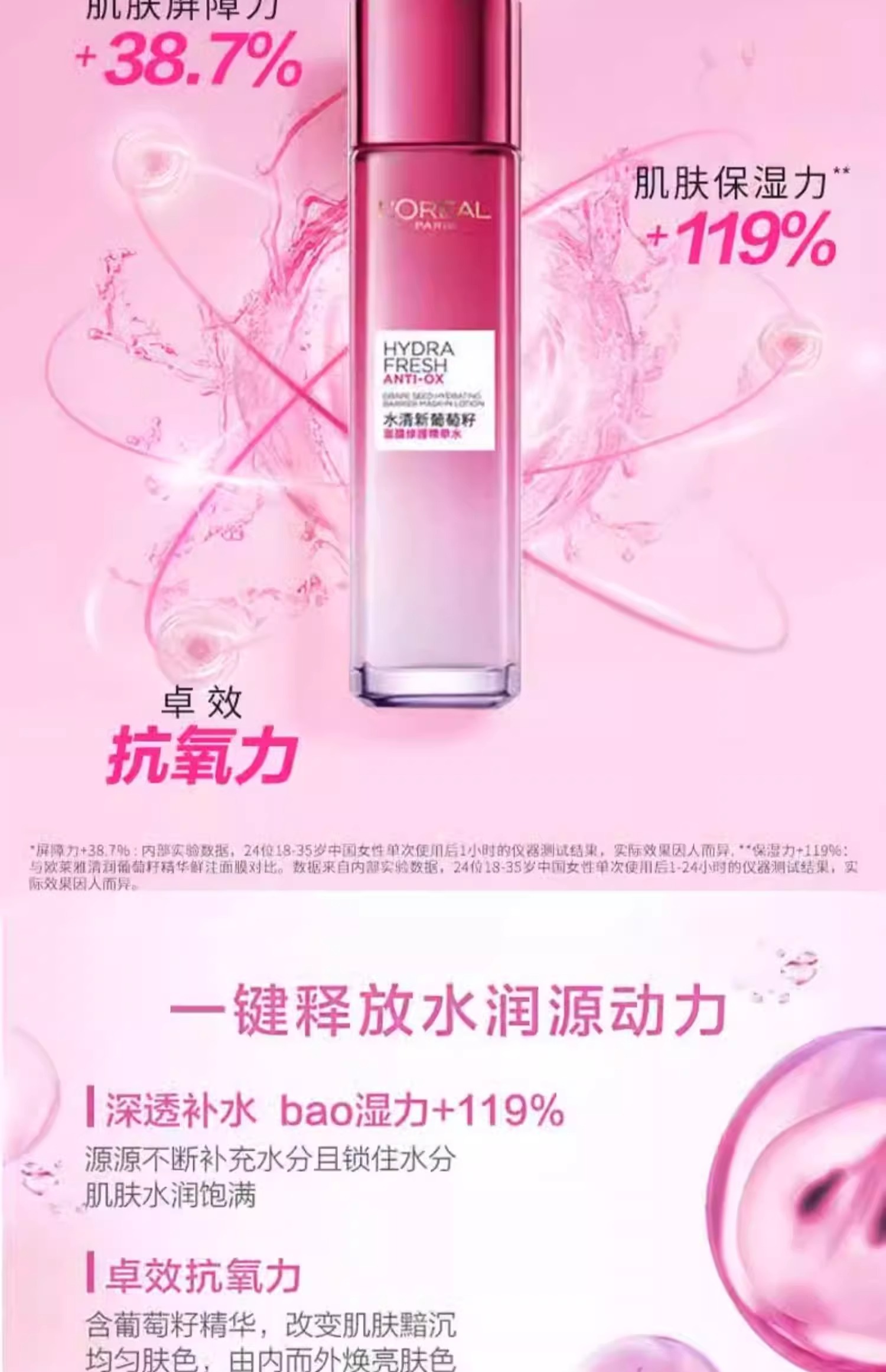 欧莱雅LOREAL水清新葡萄籽精华水130ml