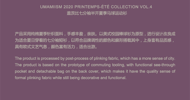UMAMIISM 20SS 盖茨比七分袖半开夏季马球运动衫小高领POLO衫