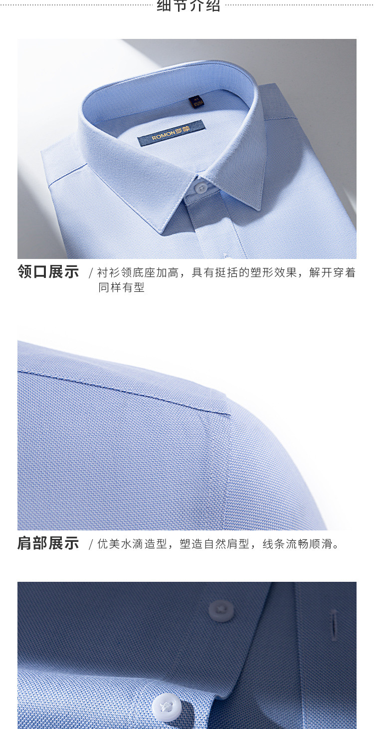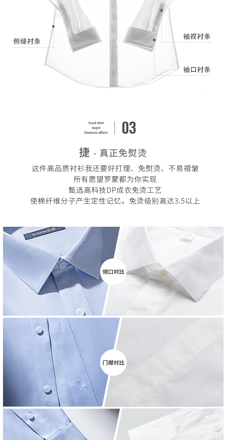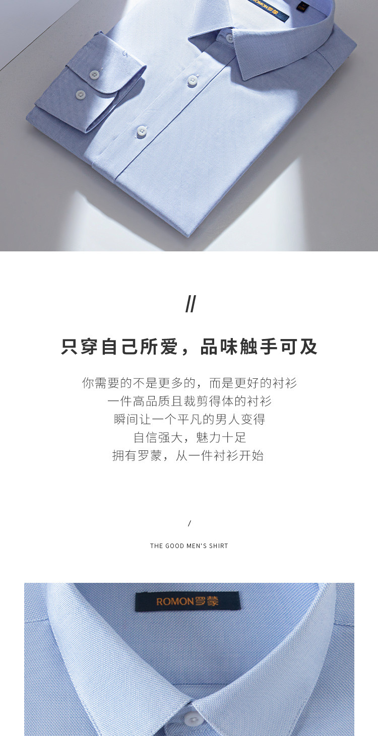 【100棉成衣免烫】罗蒙春夏长袖衬衫男士正装商务通勤纯棉刺绣衬衣