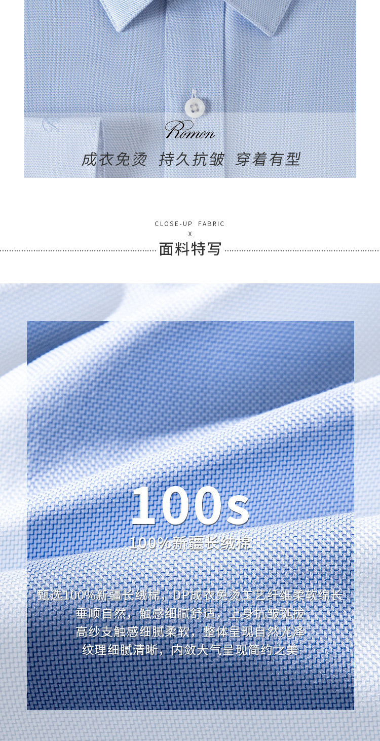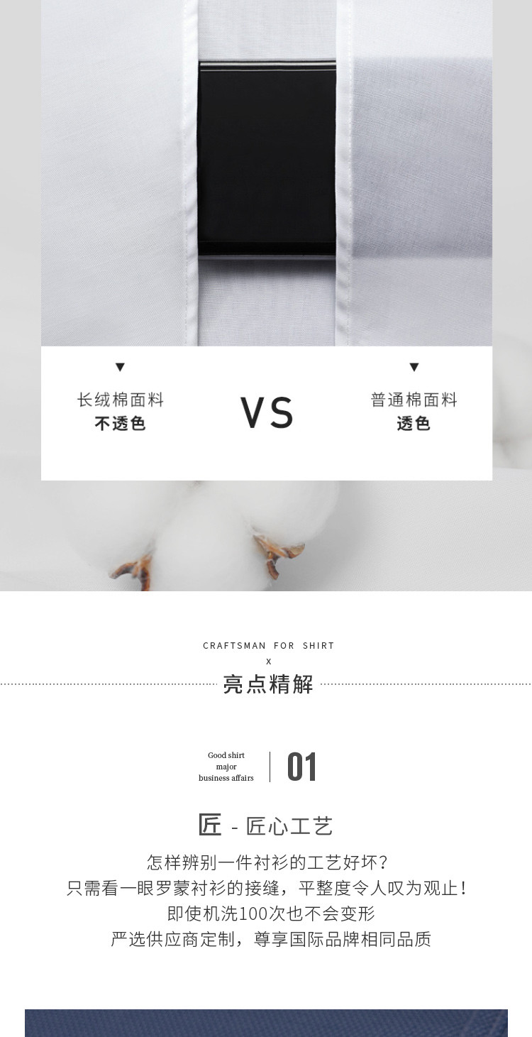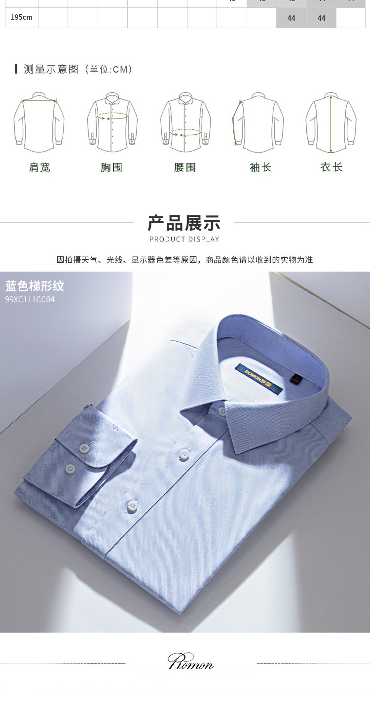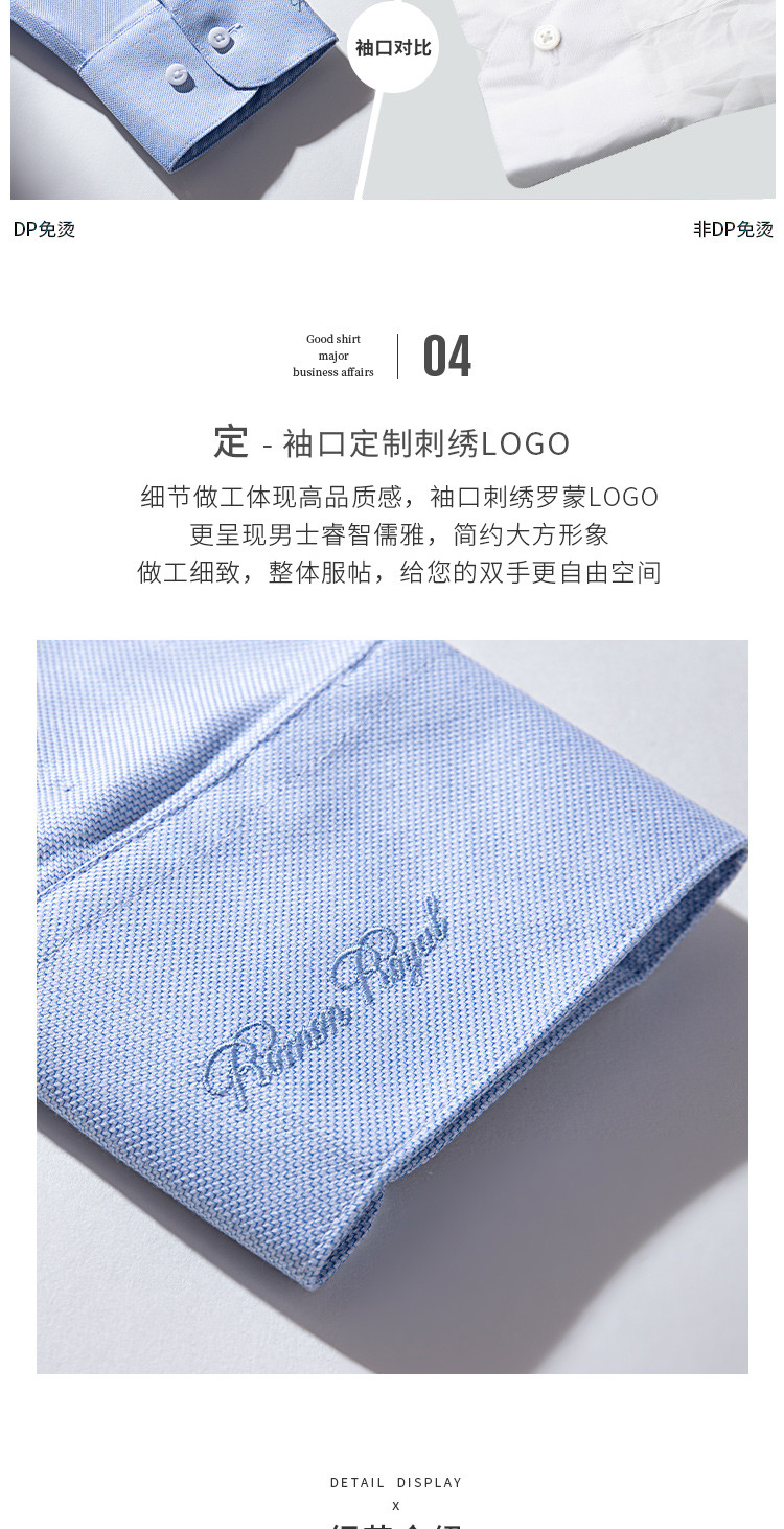 【100棉成衣免烫】罗蒙春夏长袖衬衫男士正装商务通勤纯棉刺绣衬衣