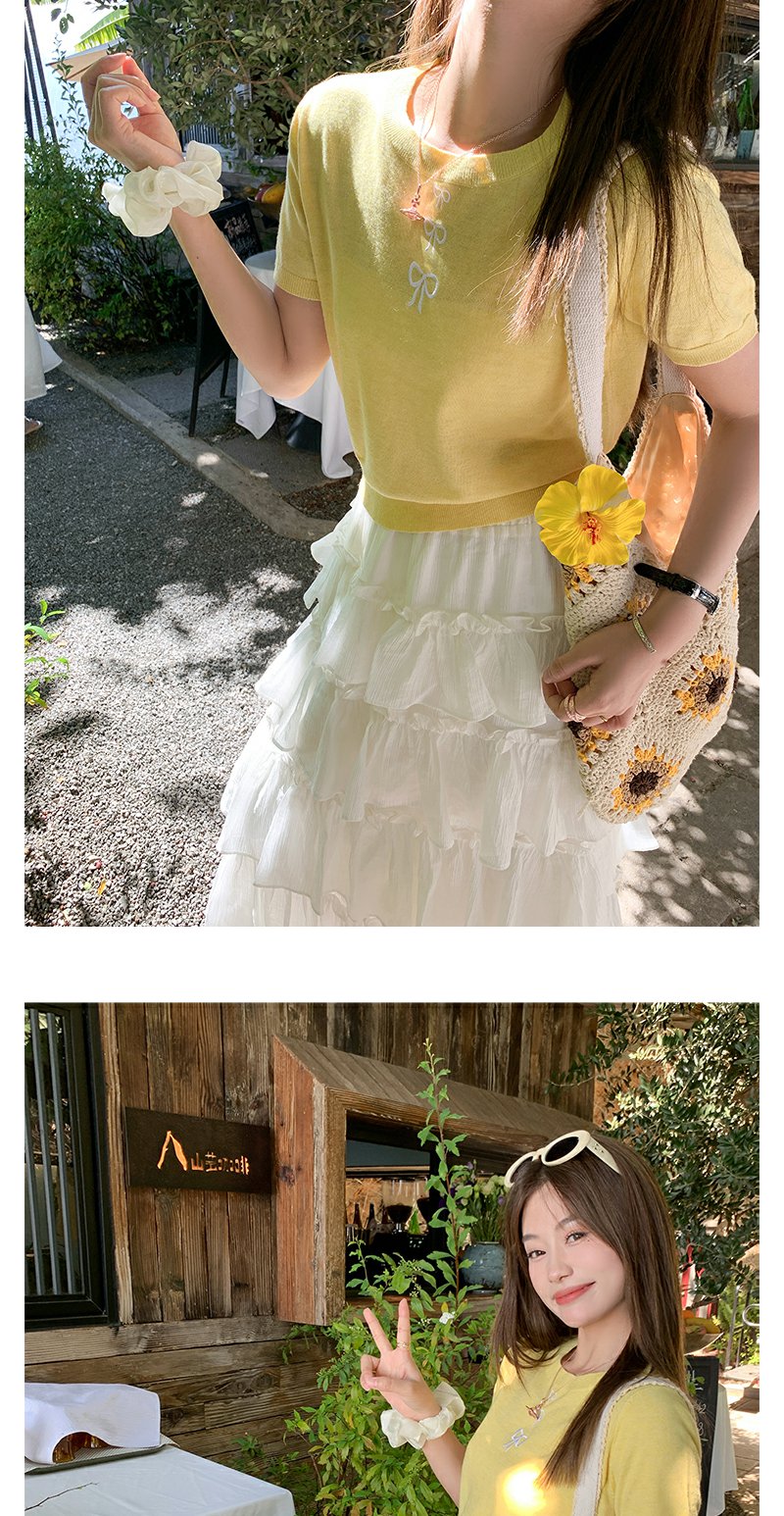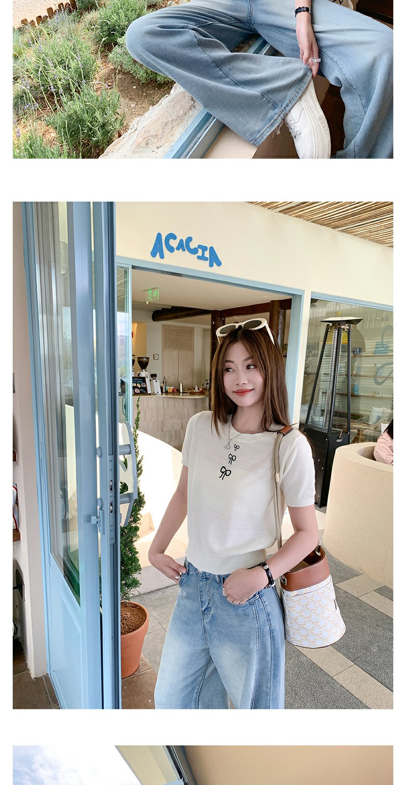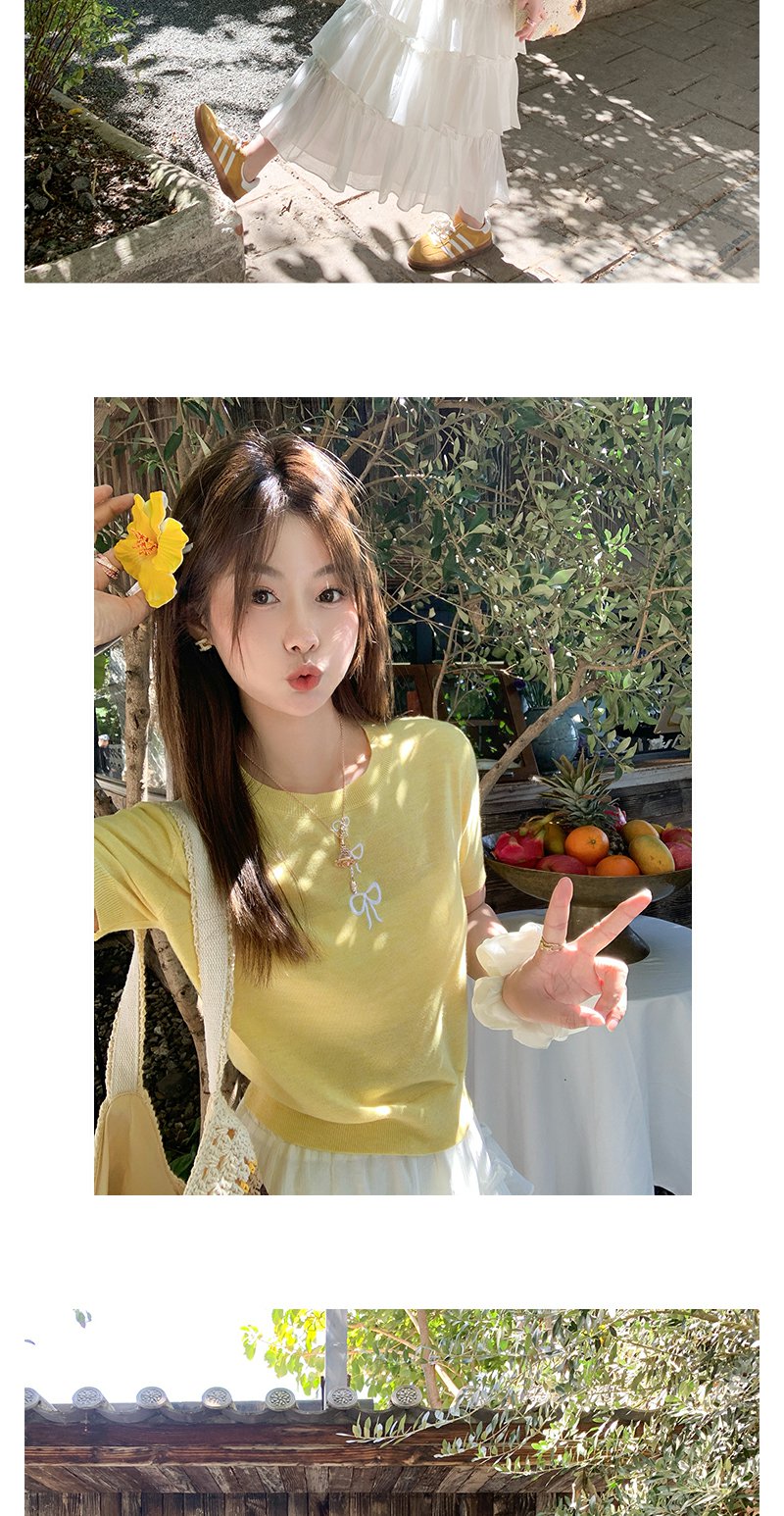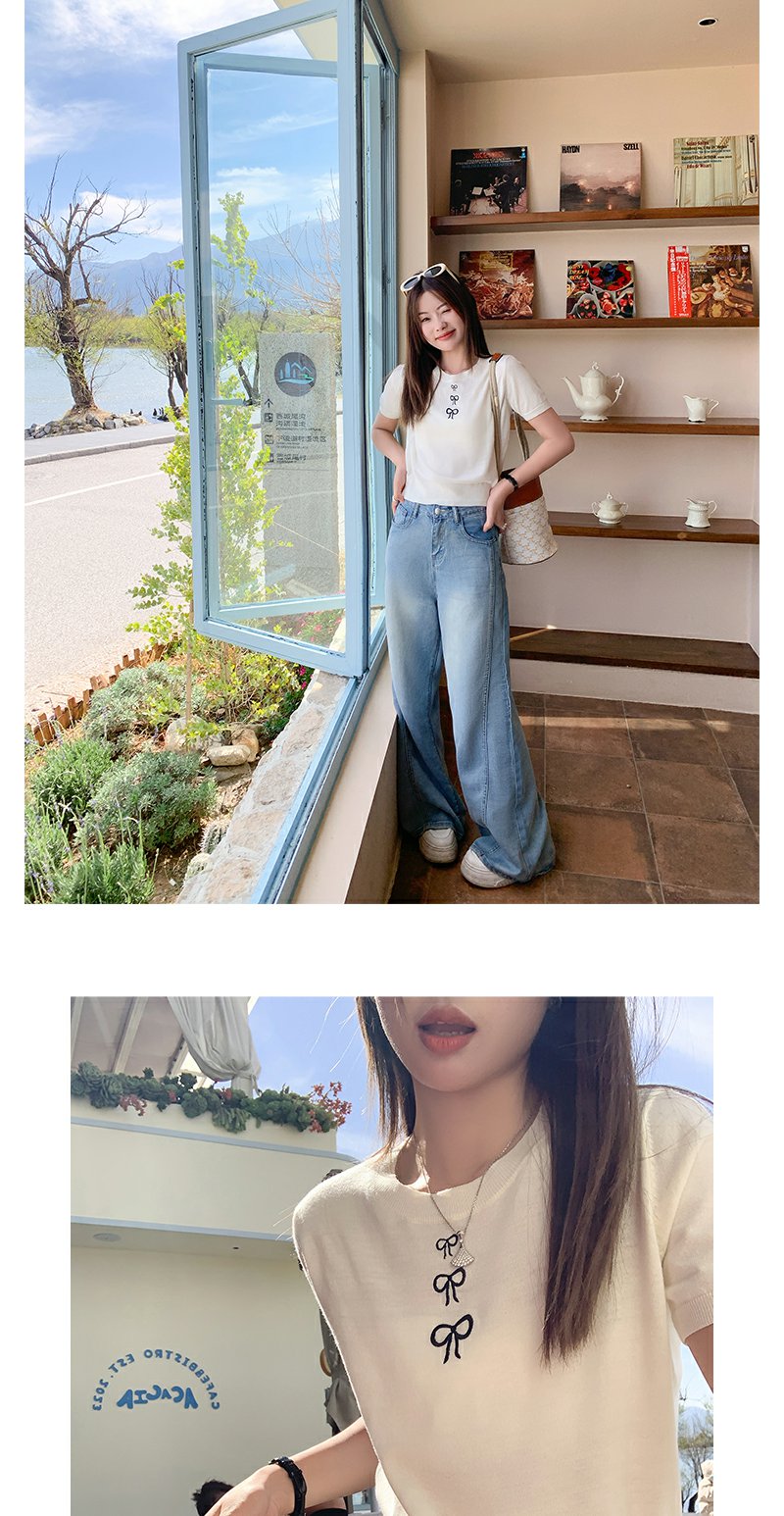 <曾小咸推荐>韩版2色蝴蝶结绣花针织短袖T恤