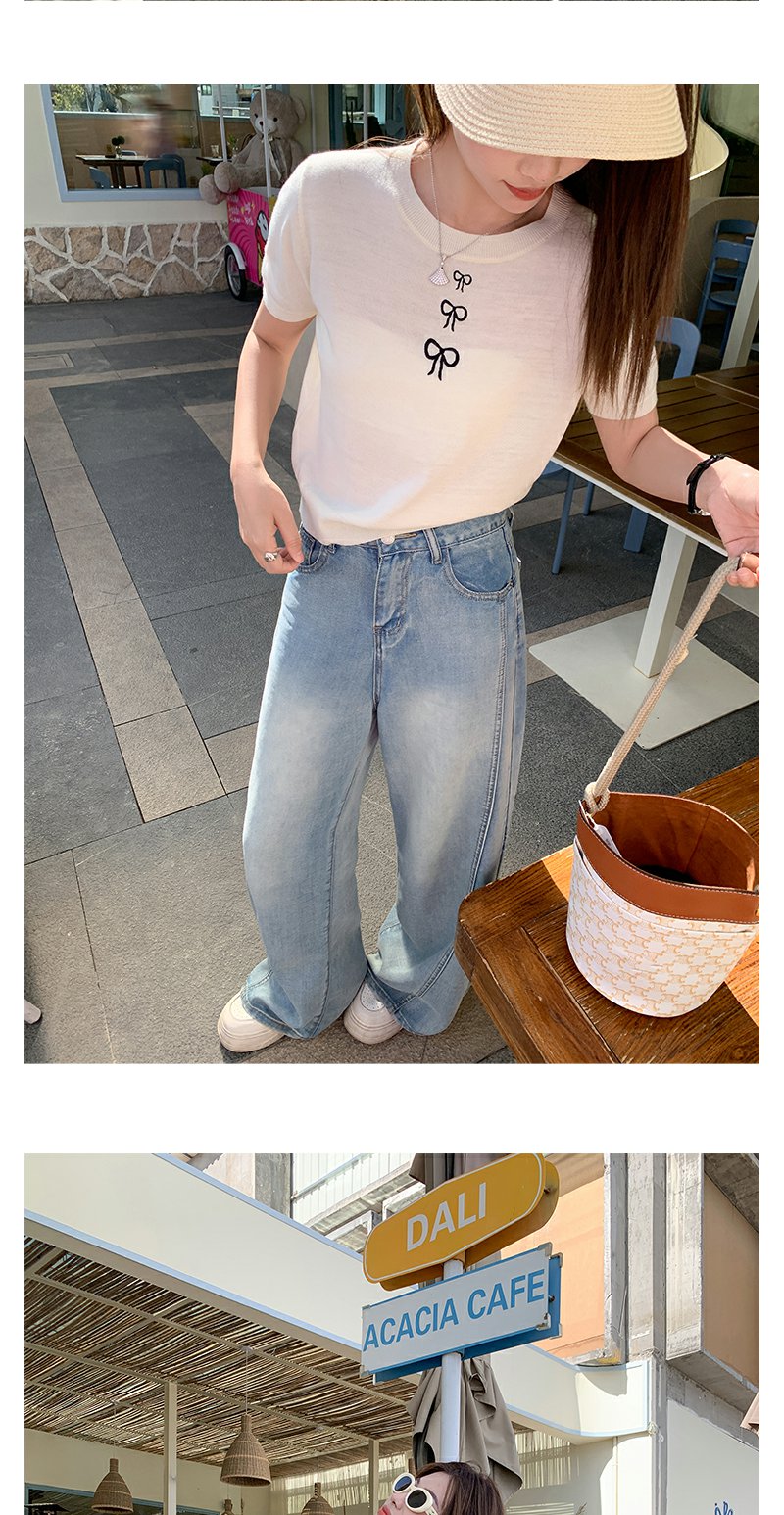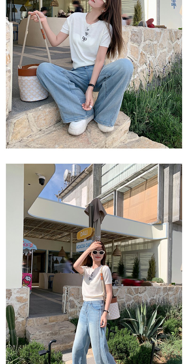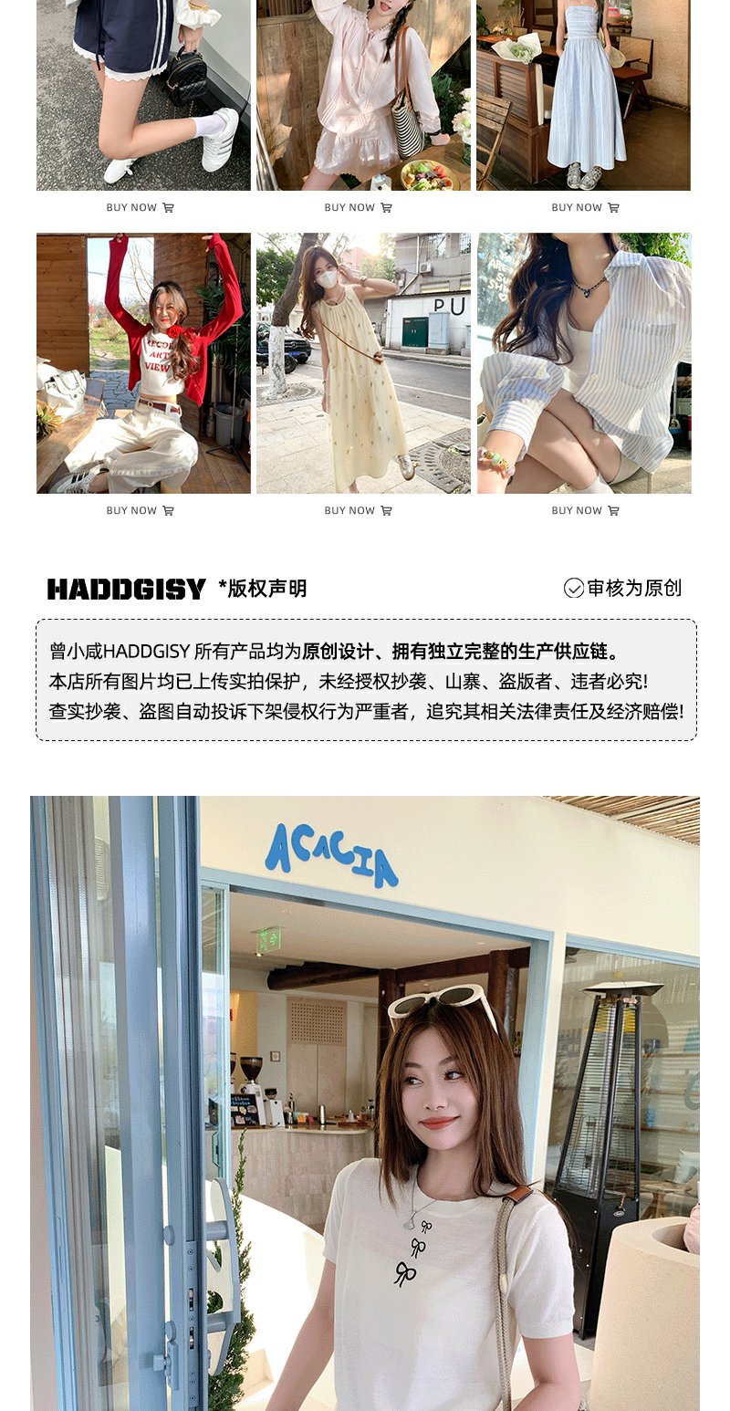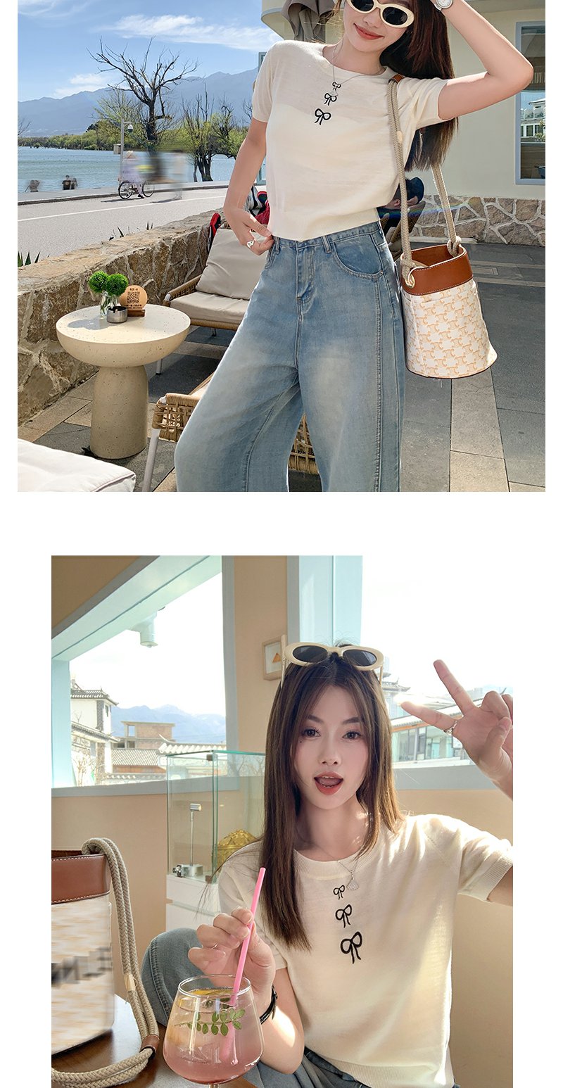 <曾小咸推荐>韩版2色蝴蝶结绣花针织短袖T恤