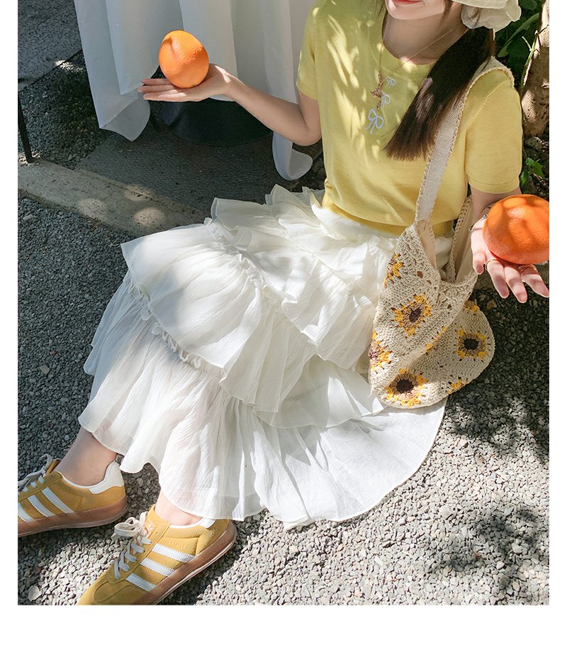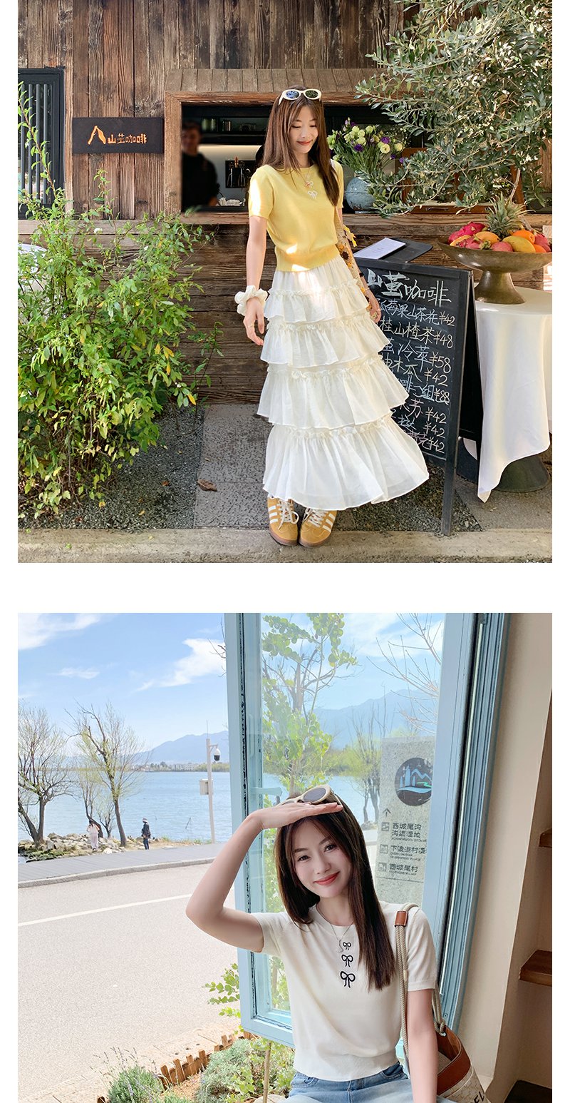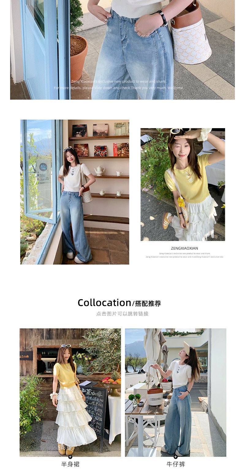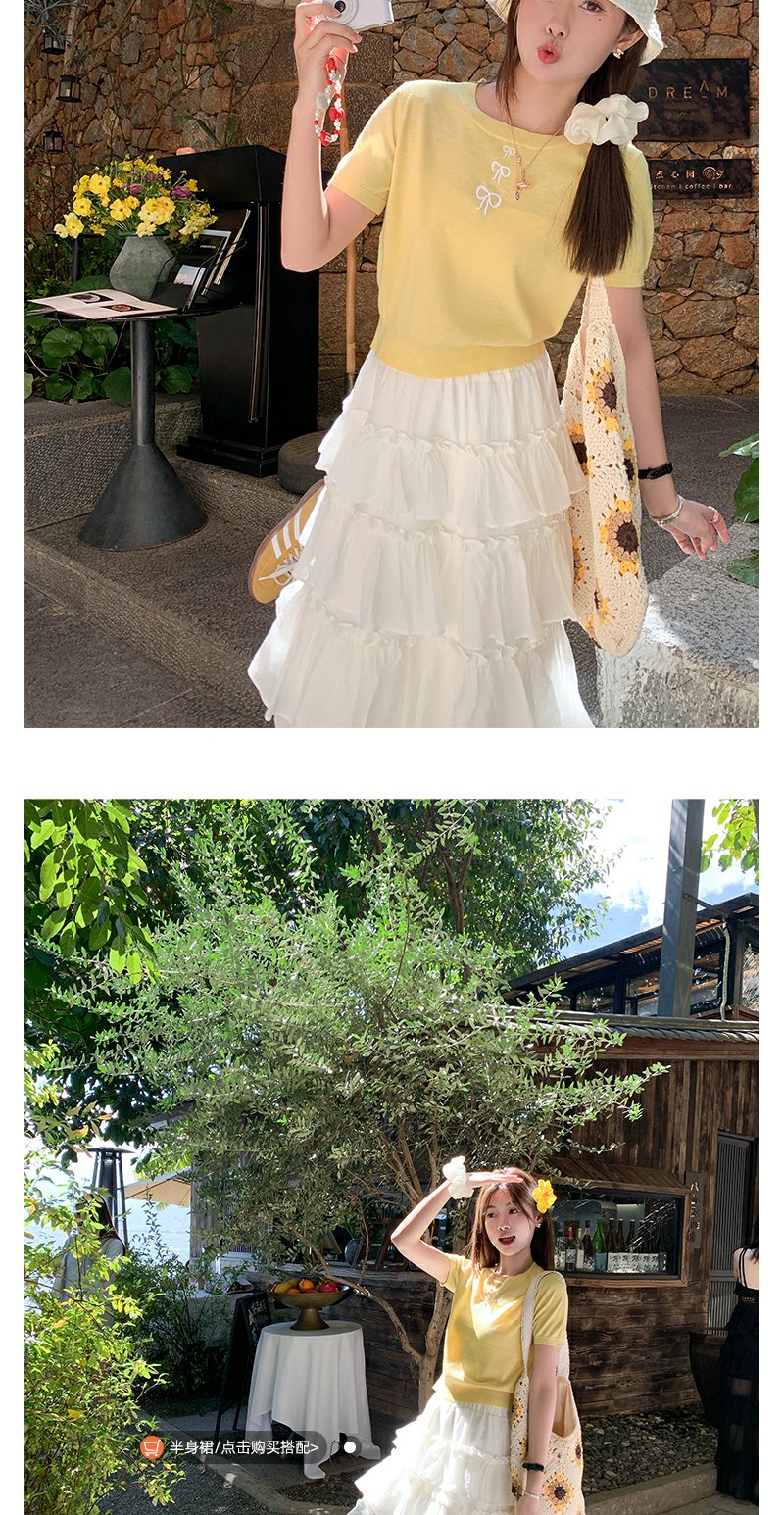 <曾小咸推荐>韩版2色蝴蝶结绣花针织短袖T恤