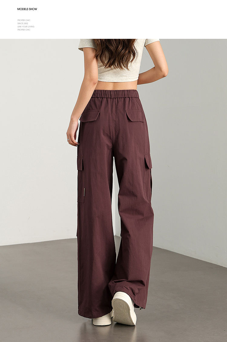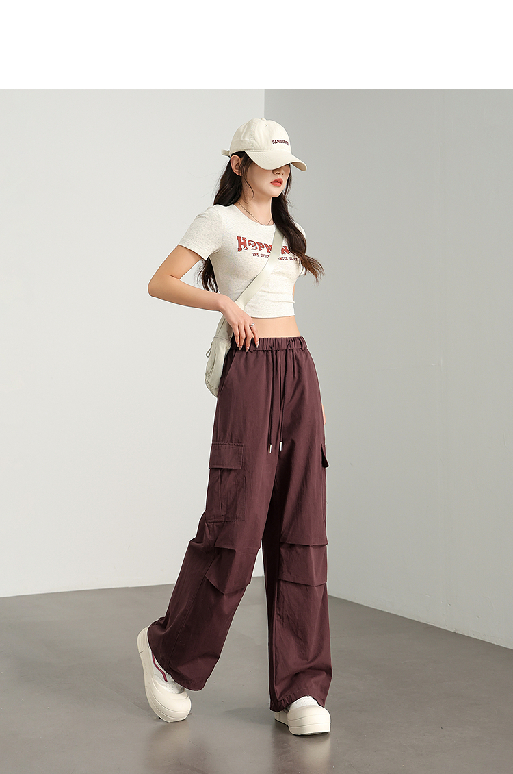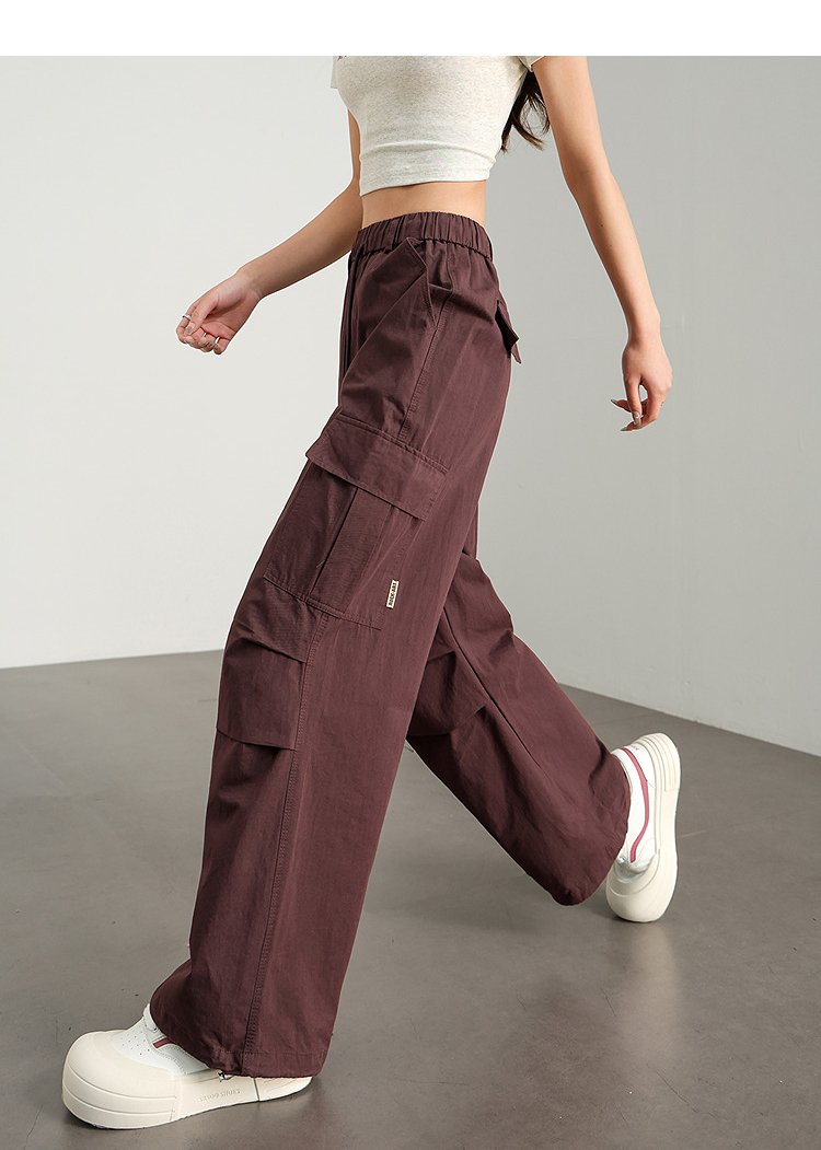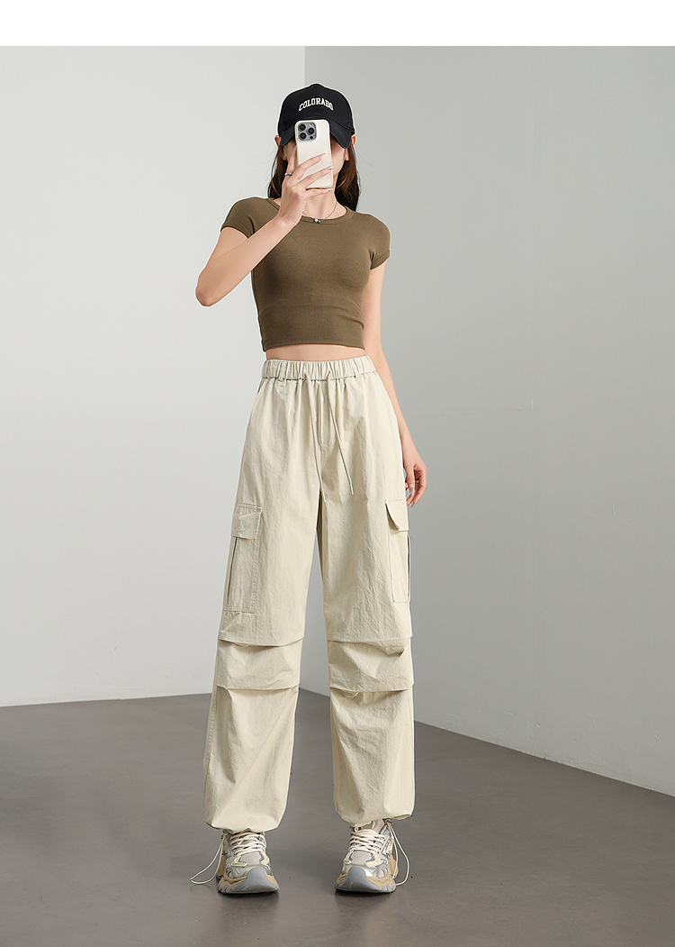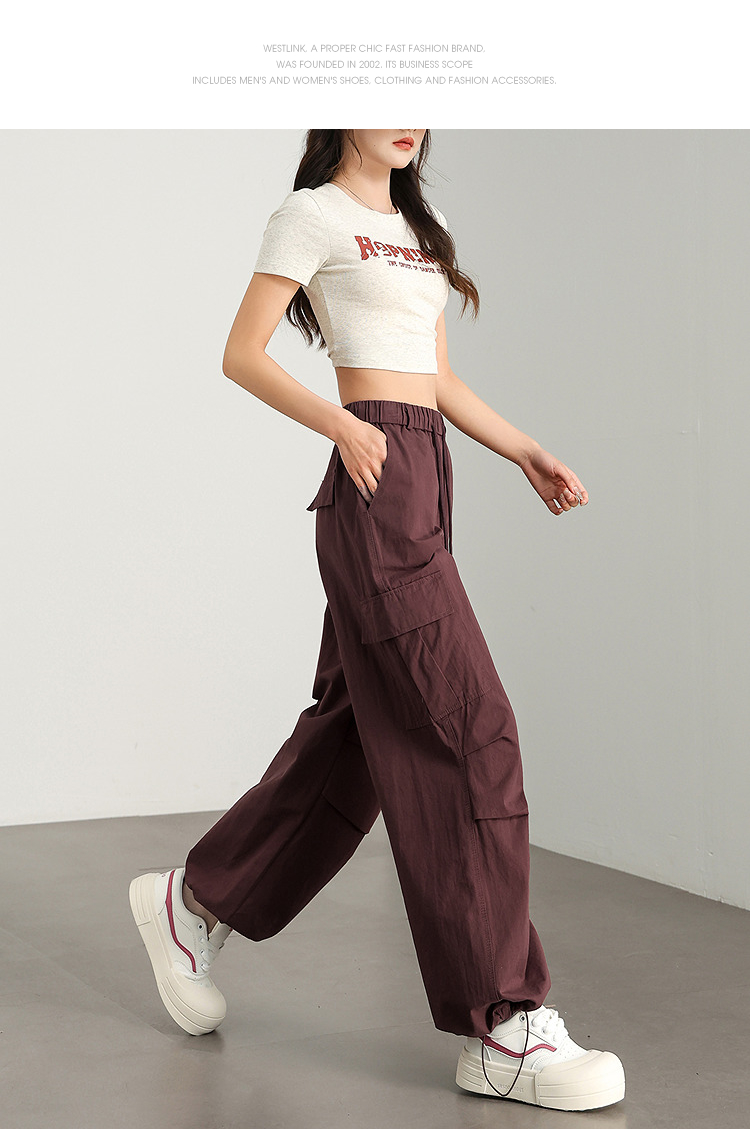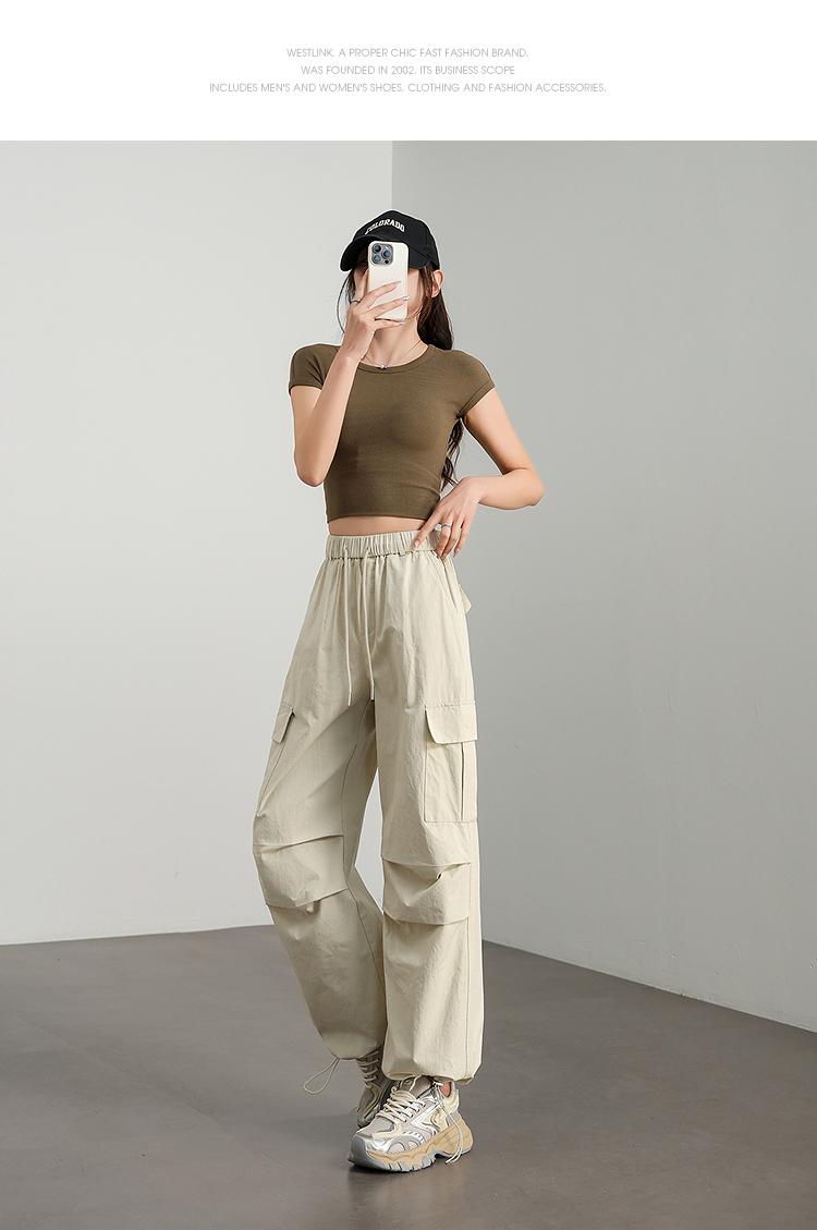 西遇白色工装裤女新款松紧腰美式酷飒风高腰直筒休闲裤D0050454
