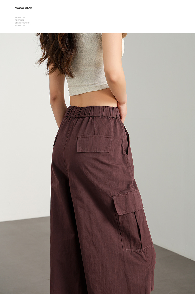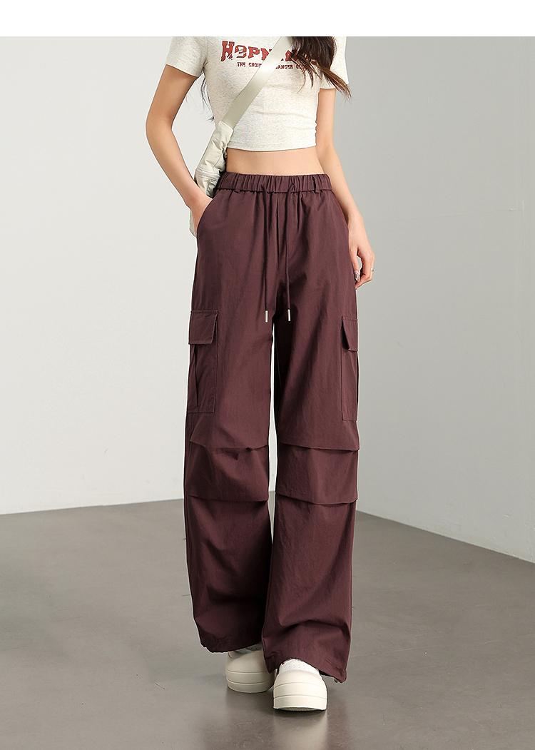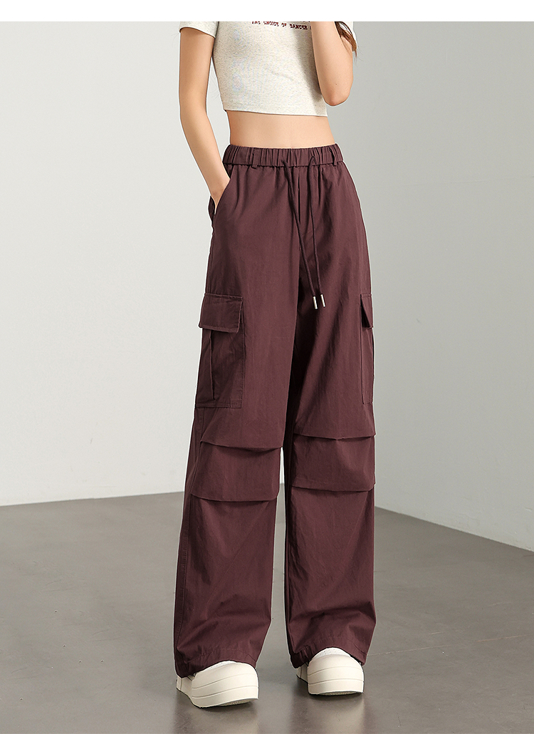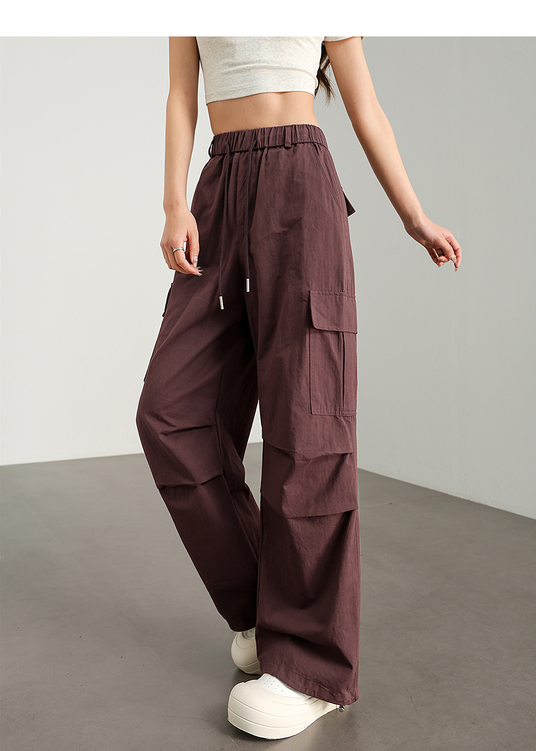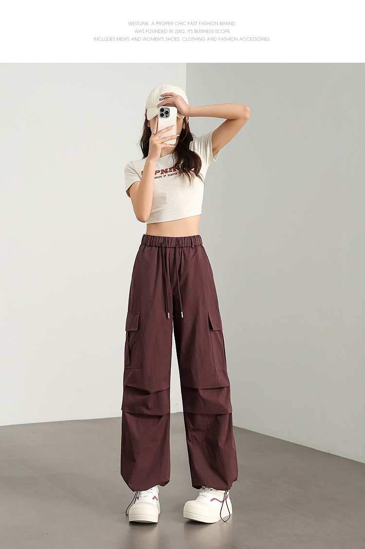 西遇白色工装裤女新款松紧腰美式酷飒风高腰直筒休闲裤D0050454