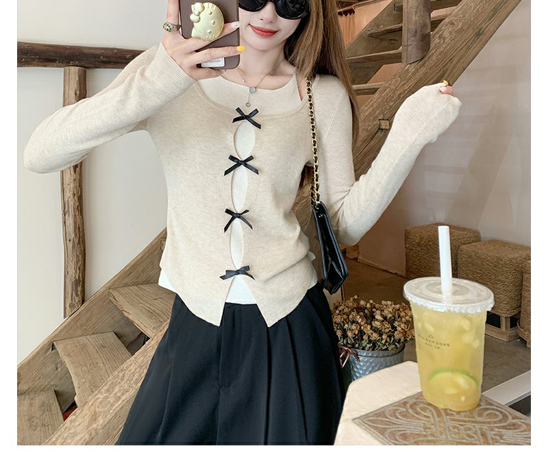 <曾小咸推荐>2.17现货秒杀 !微信超特价!2色蝴蝶结假两件针织衫 日常159.99 立减80 秒杀79.99!!