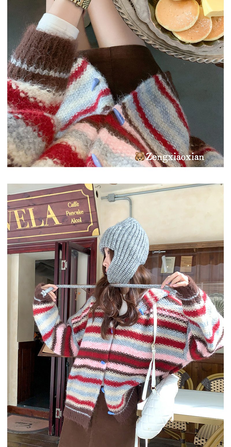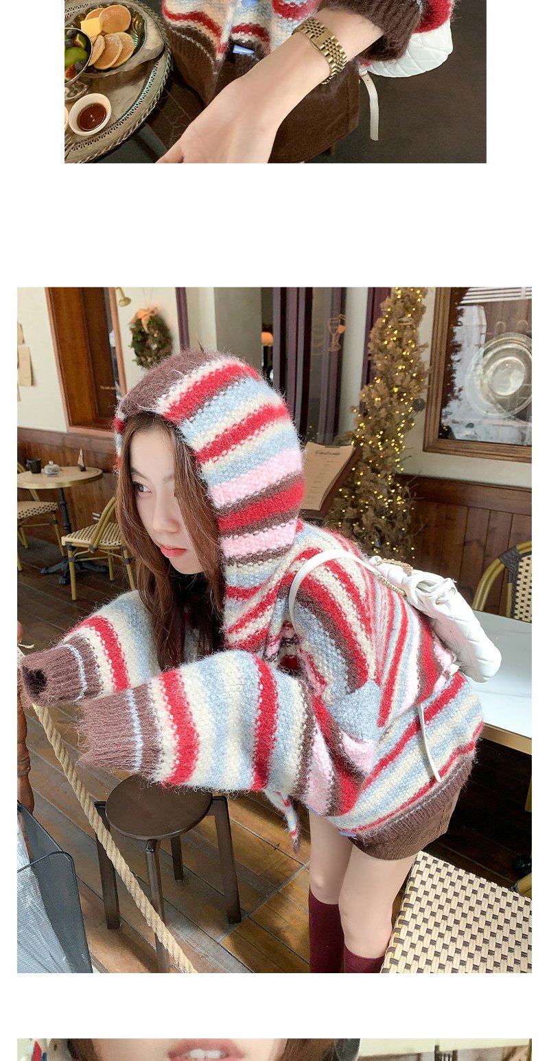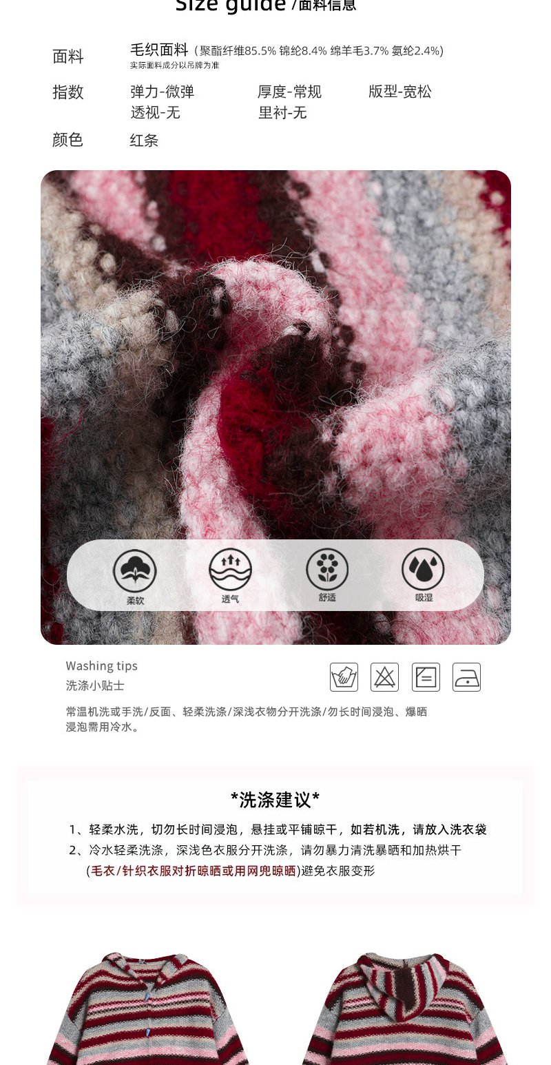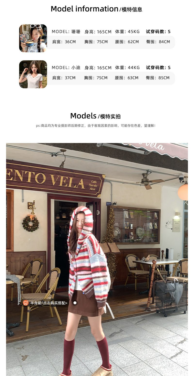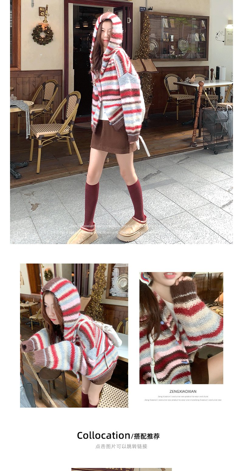 <曾小咸推荐> 韩系条纹连帽毛衣开衫