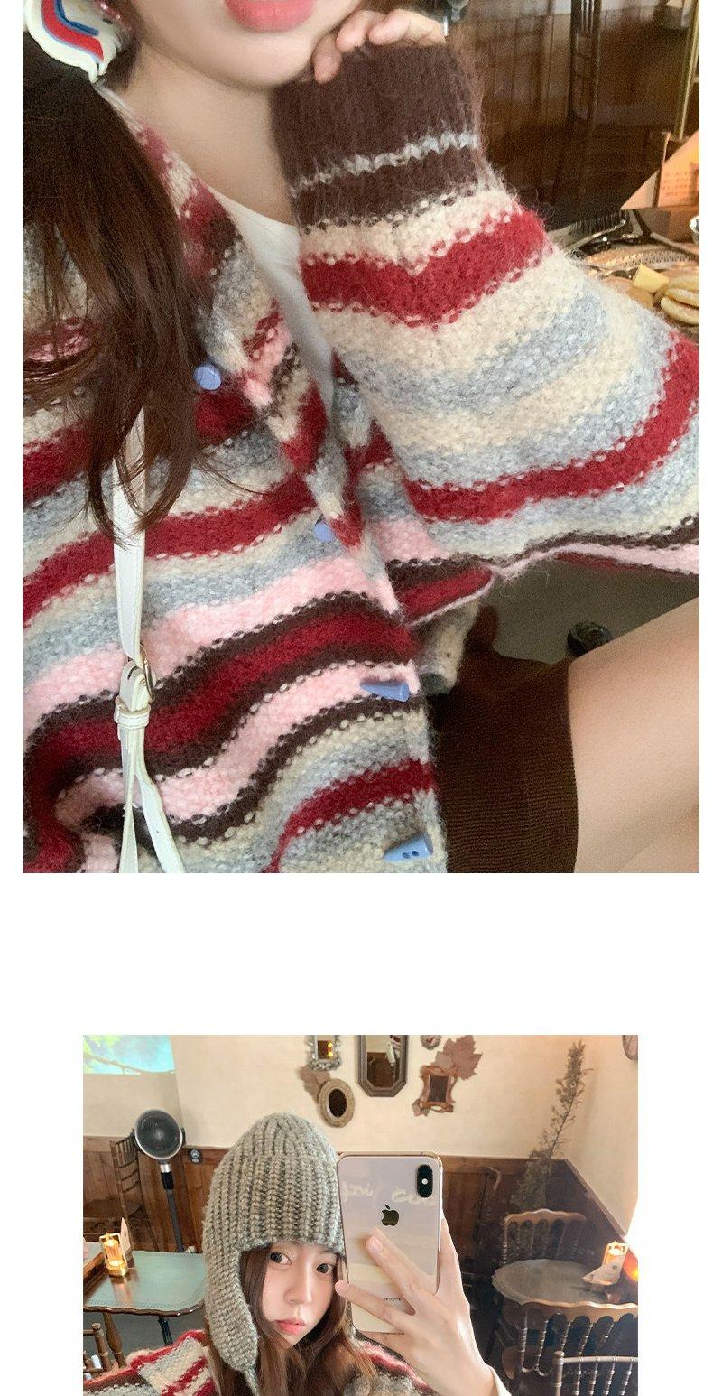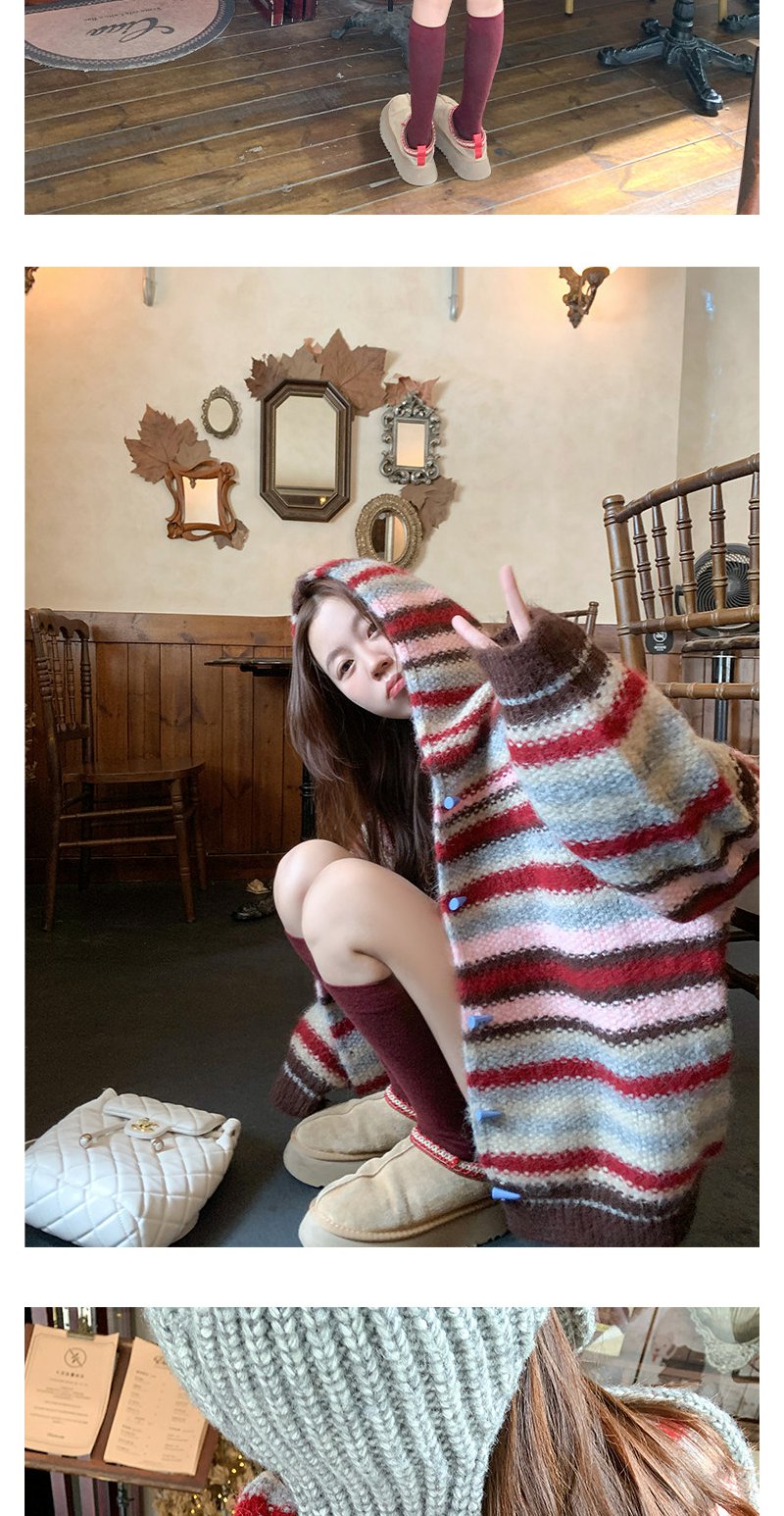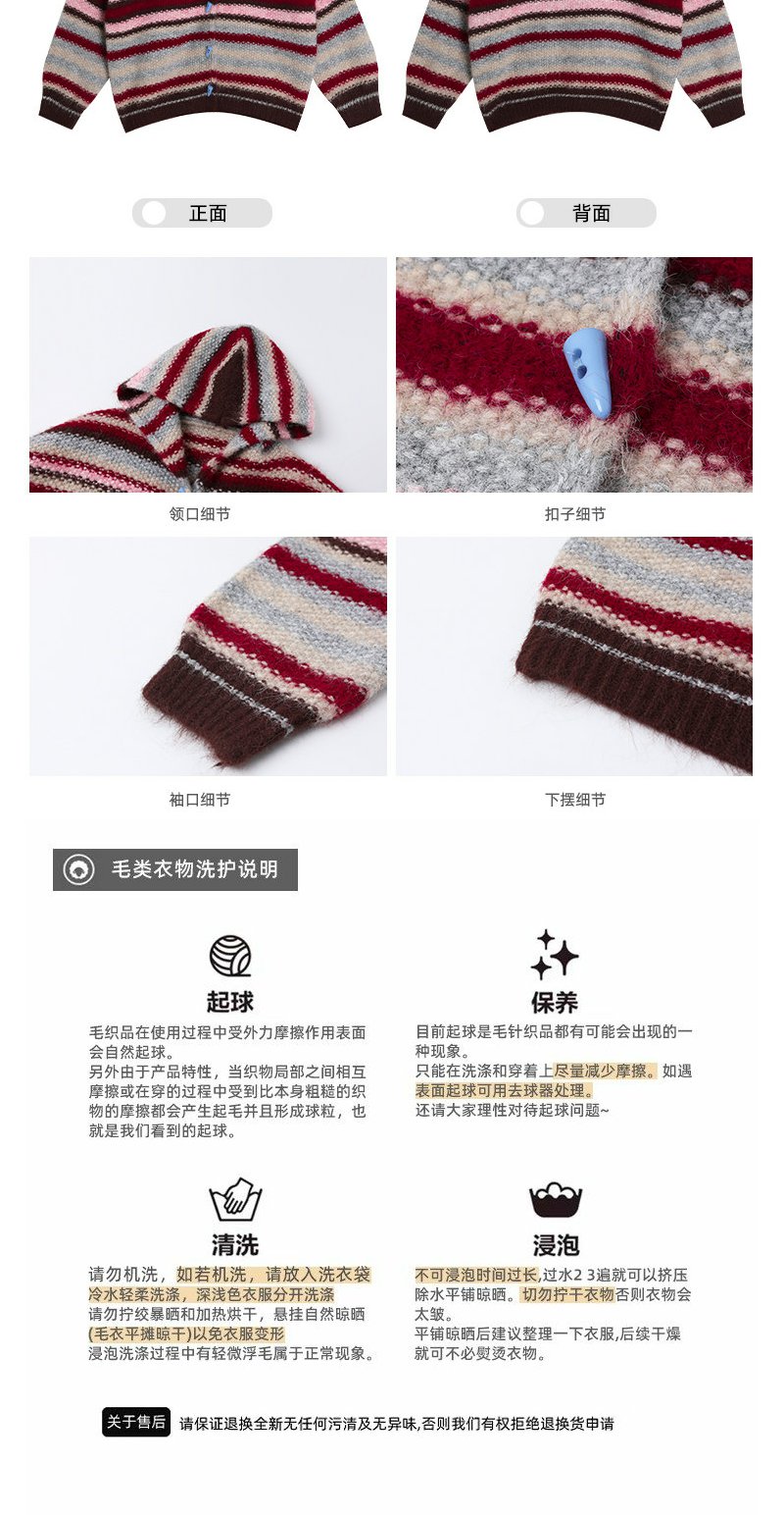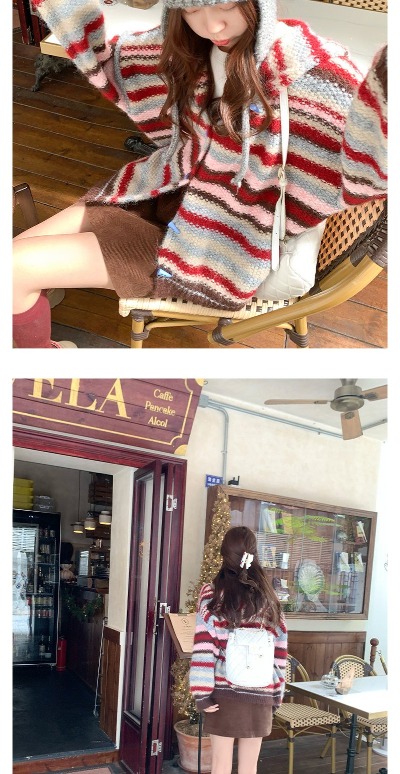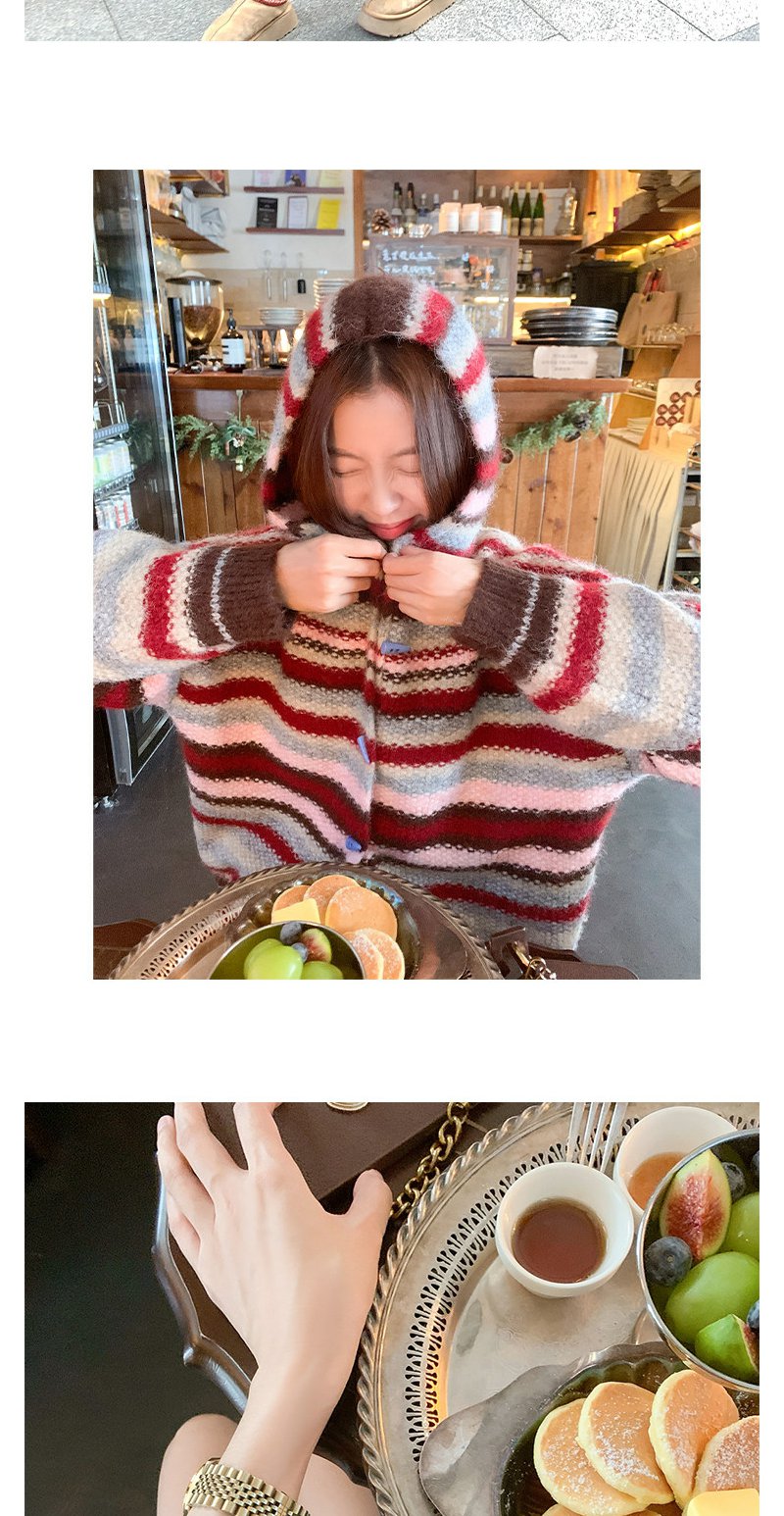 <曾小咸推荐> 韩系条纹连帽毛衣开衫
