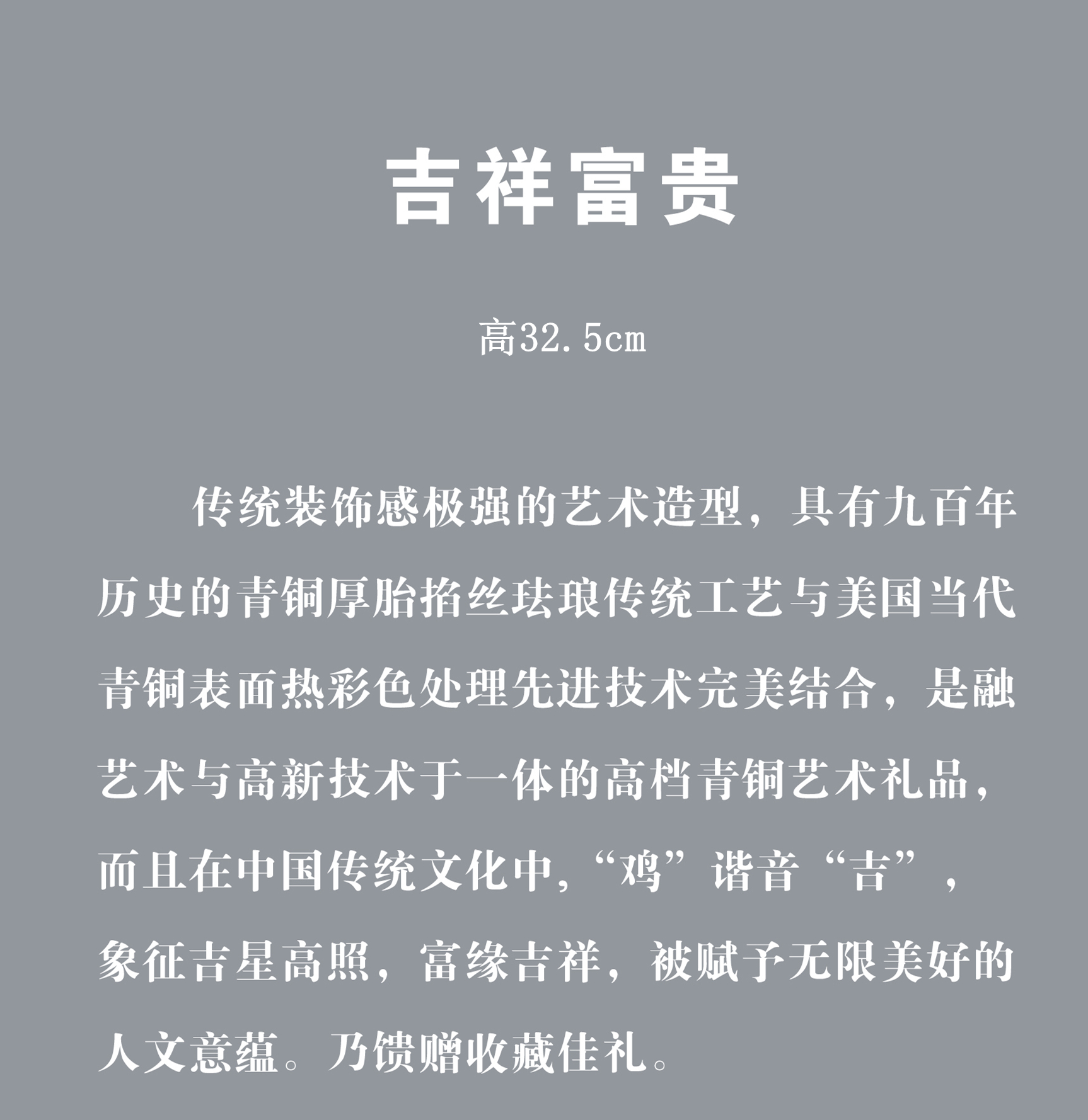宇达青铜摆件 十二生肖鸡《吉祥富贵》创意装饰 家居工艺摆件 高32.5cm