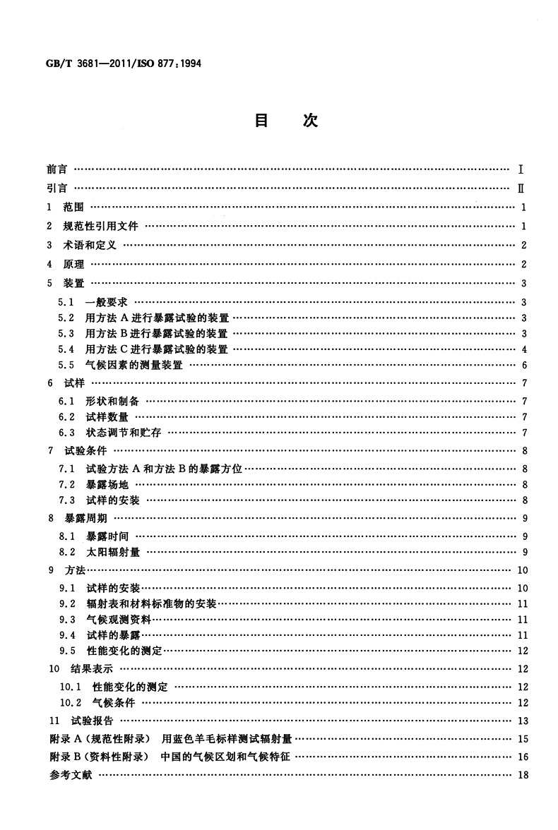 GB/T 3681-2011 塑料 自然日光气候老化、玻璃过滤后日光气候老化和菲涅耳镜加速日光气候老化的暴露试验方法