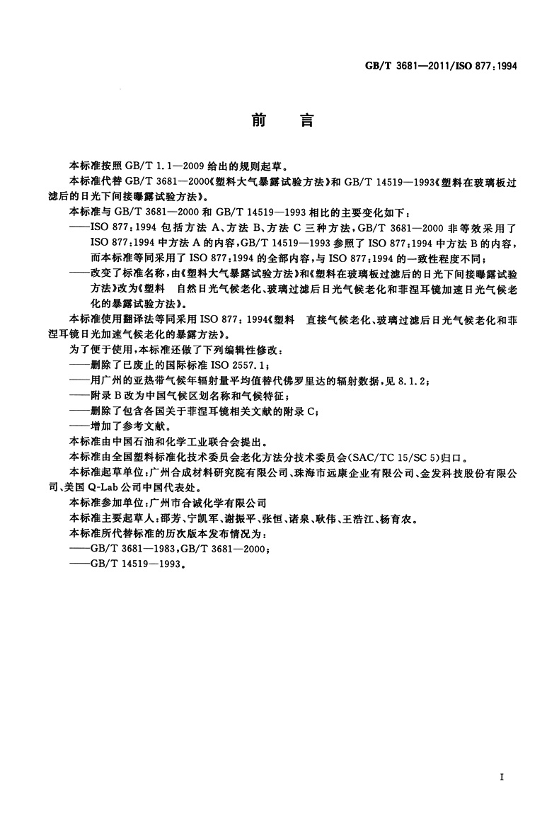 书名:速印不退 GB/T 3681-2011 塑料 自然日光气候老化、玻璃过滤后日光气候老化和菲涅耳镜加速日光气候老化的暴露试验方法