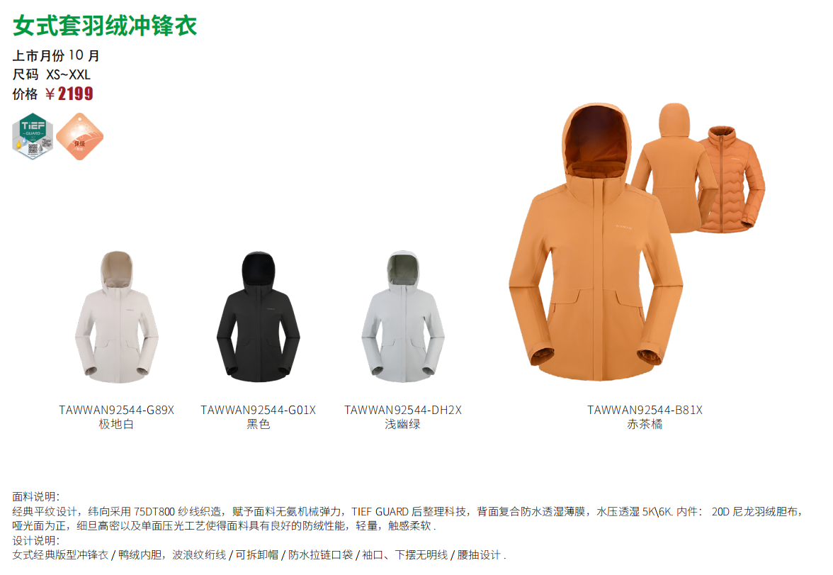 探路者女式套羽绒冲锋衣TAWWAN92544