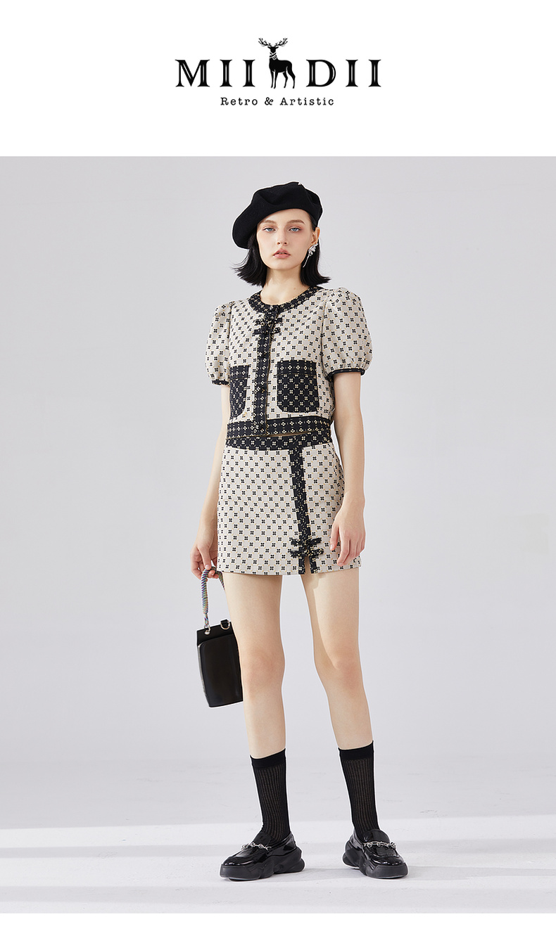 谜底超短裙2024春季新款复古学院风特色修身包臀裙半裙241MB0171