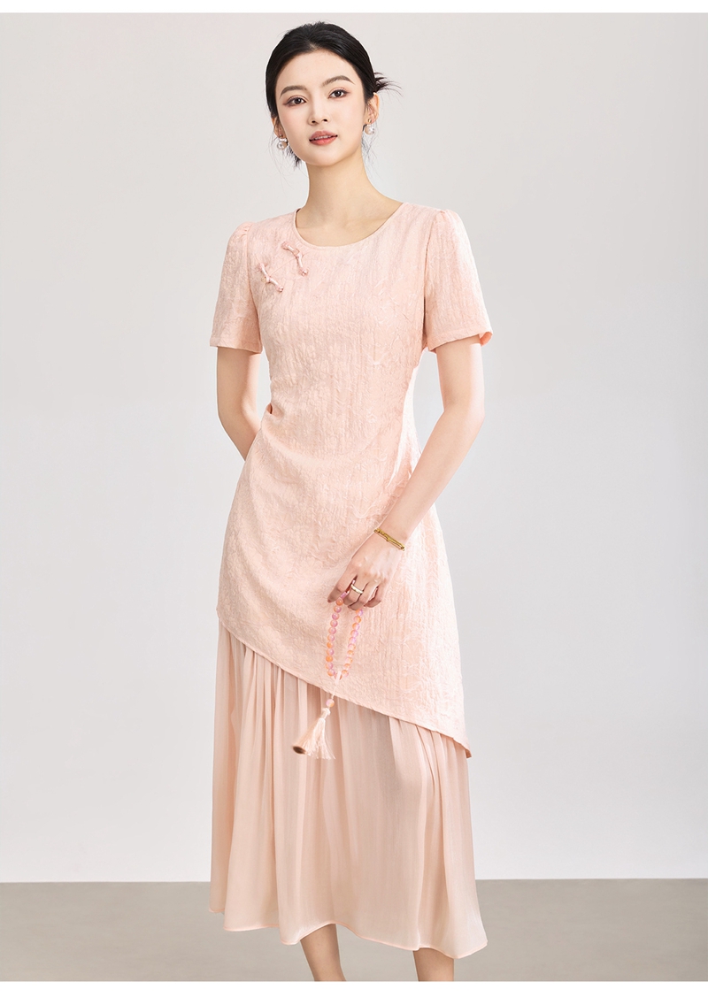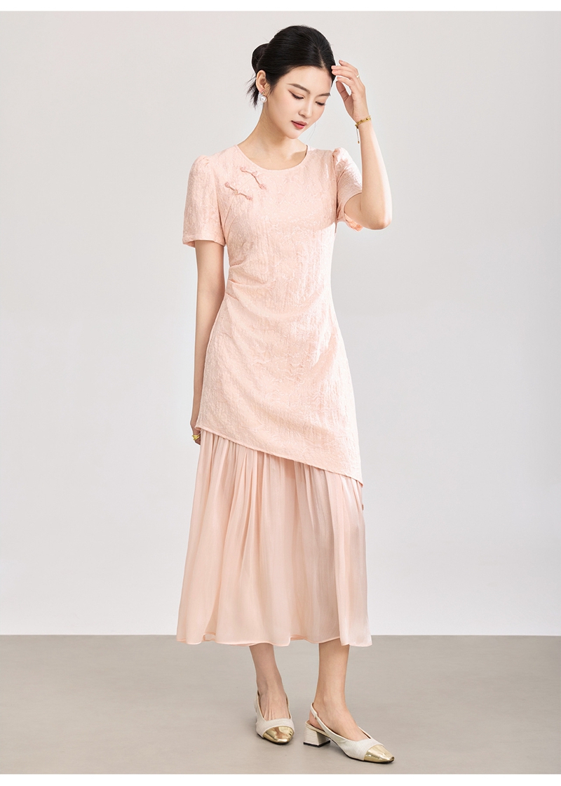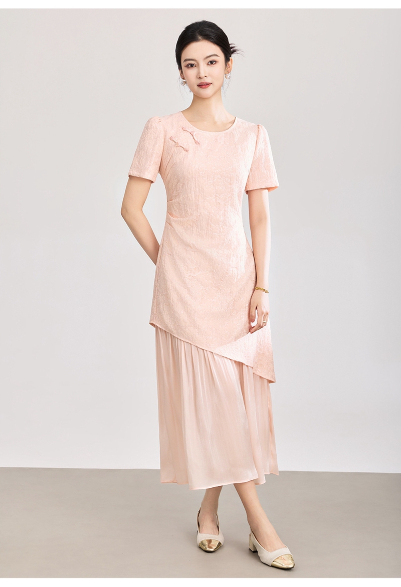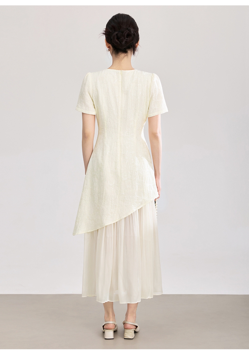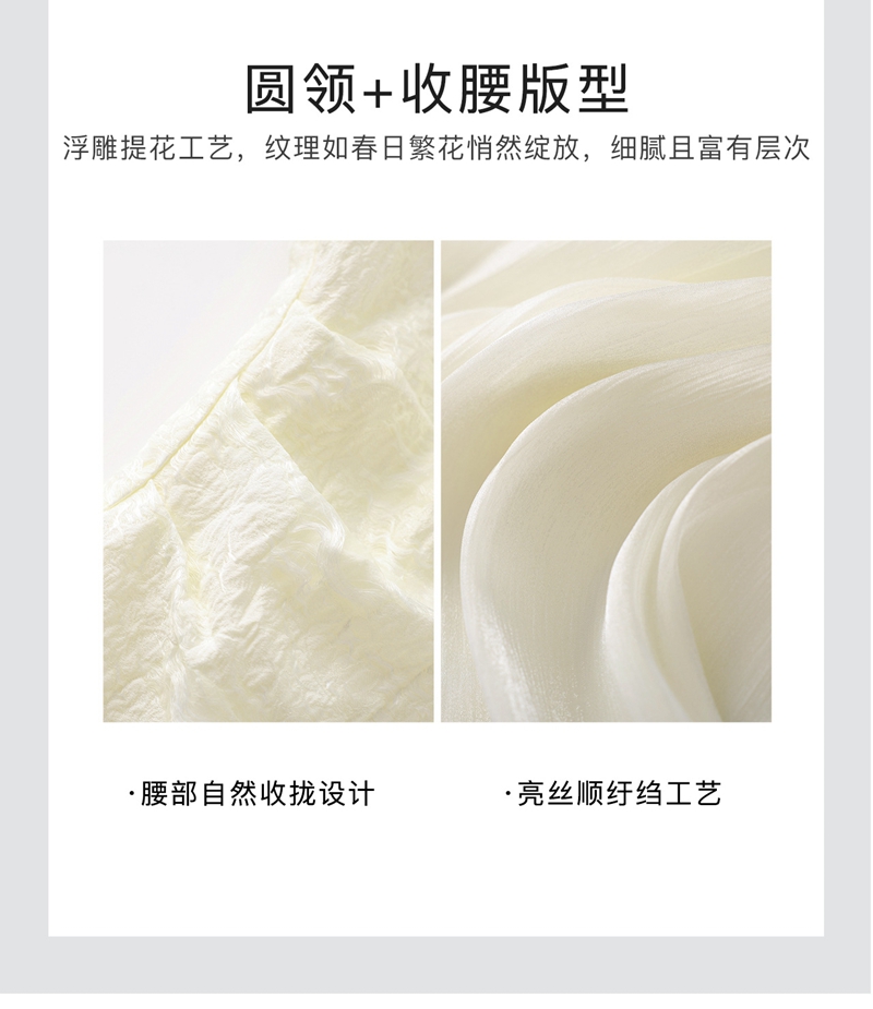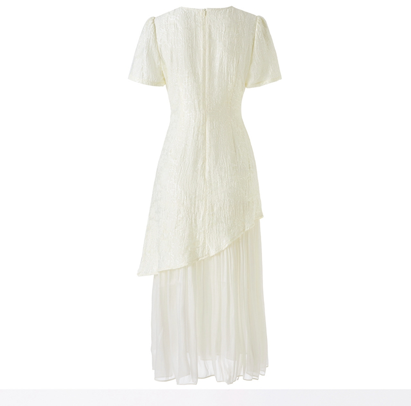 时尚浮雕肌理提花圆领短袖拼接连衣裙