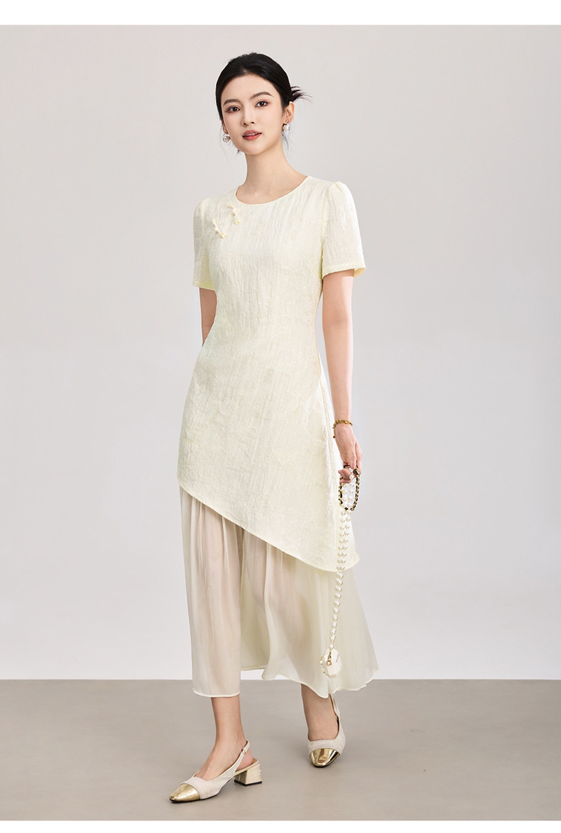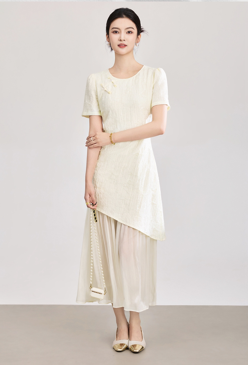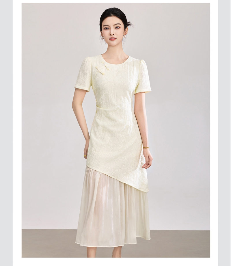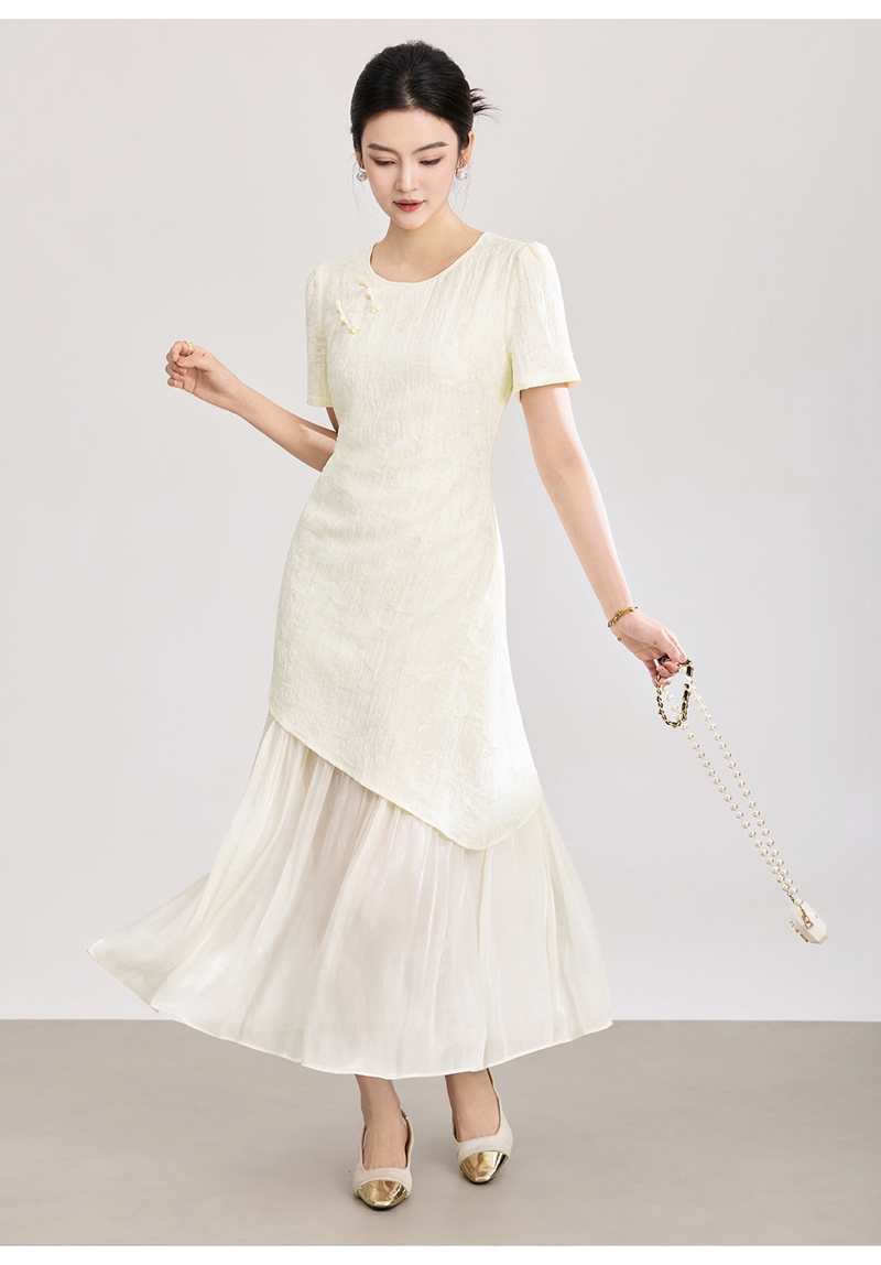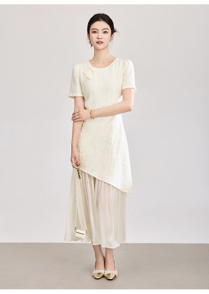 时尚浮雕肌理提花圆领短袖拼接连衣裙