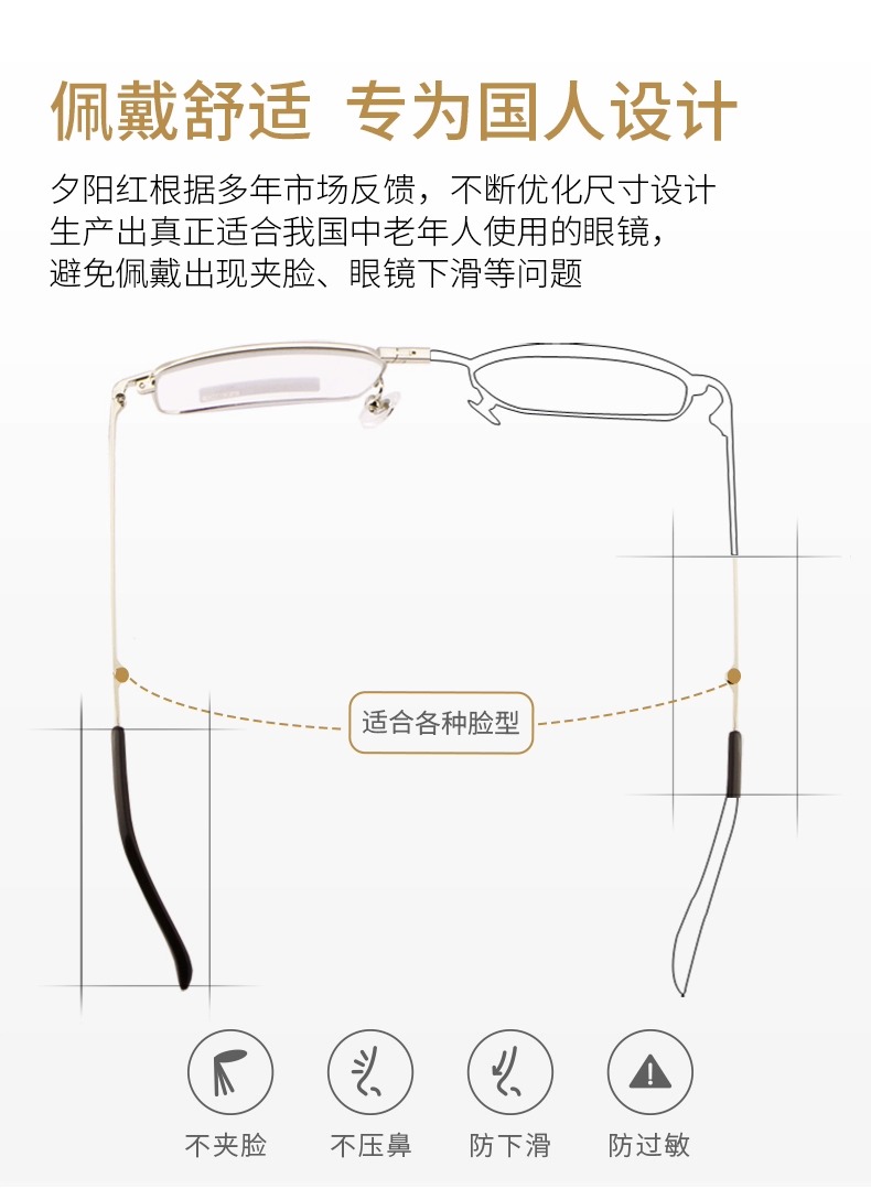 夕阳红老花镜品牌正品中老年折叠便携防蓝光高清老人老花眼镜男女5206