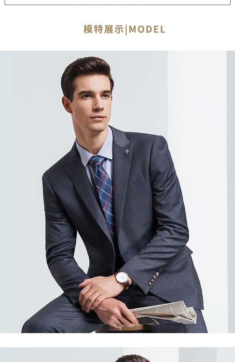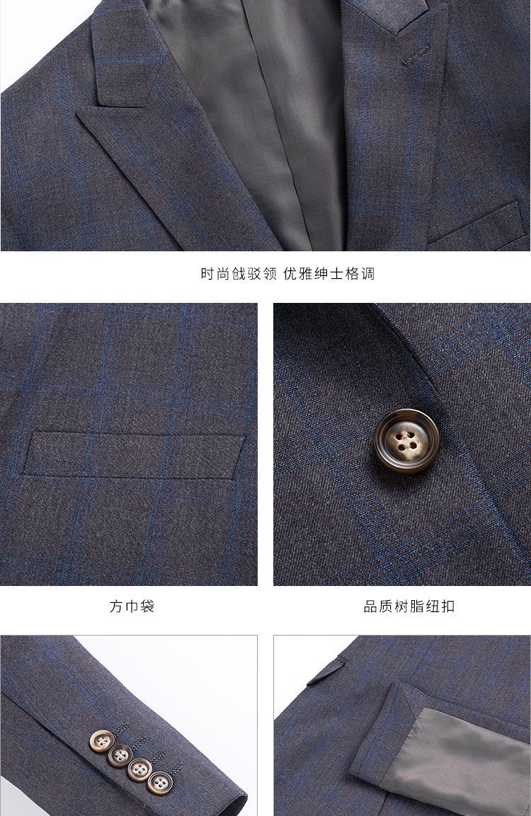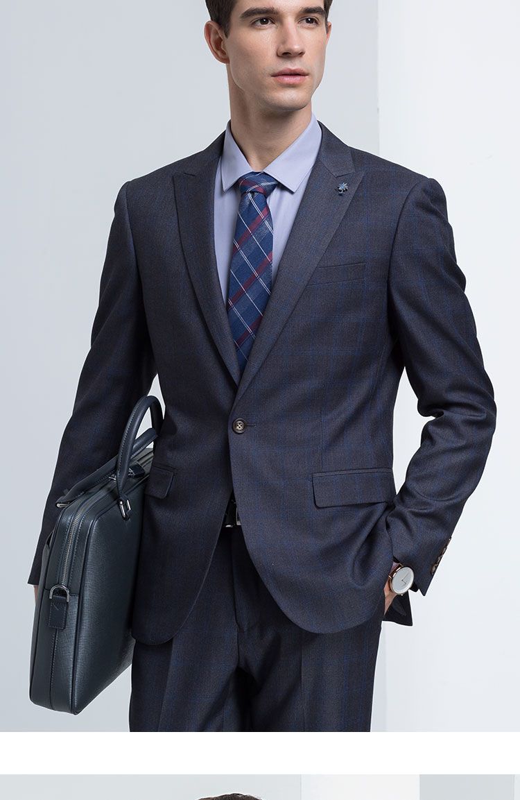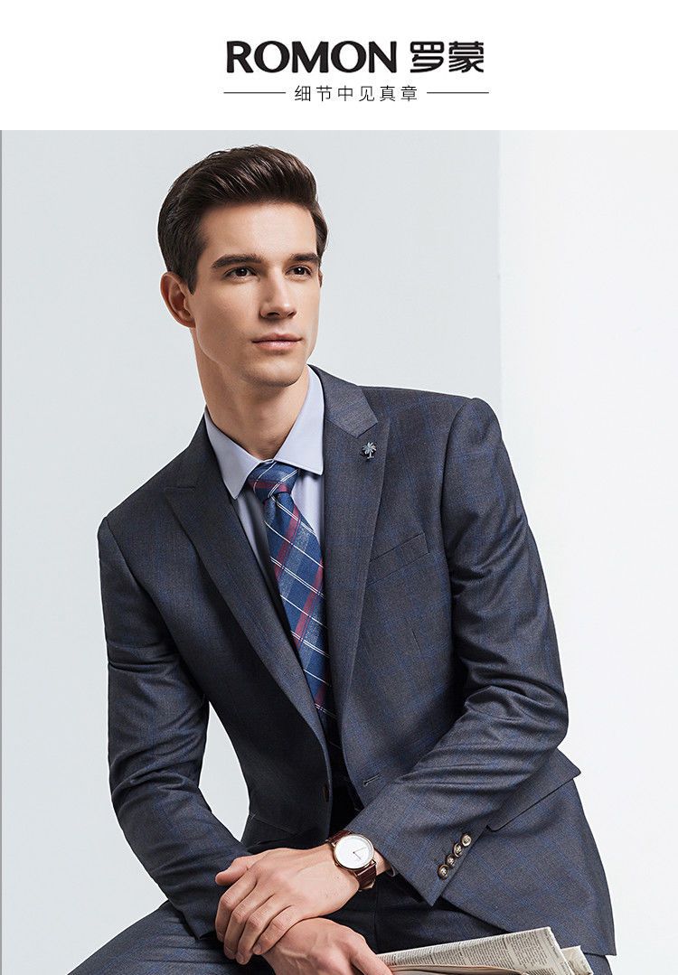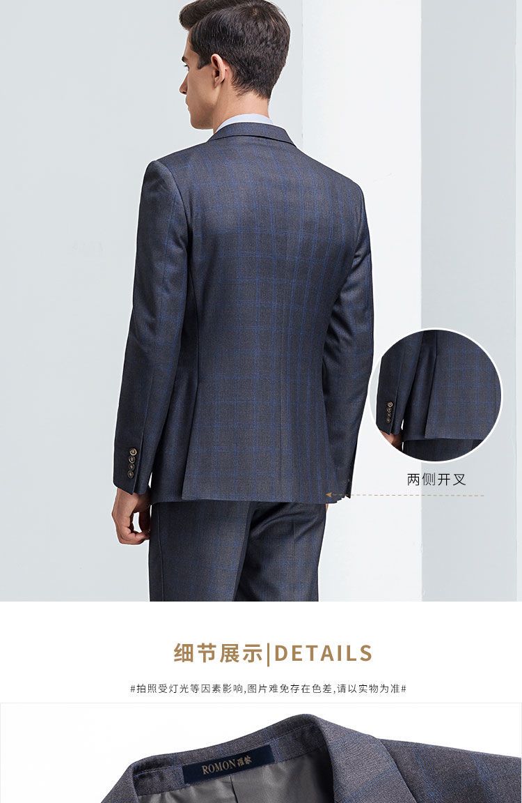 【上衣+裤子】罗蒙西装套装男士时尚修身款格纹西服新郎结婚礼服