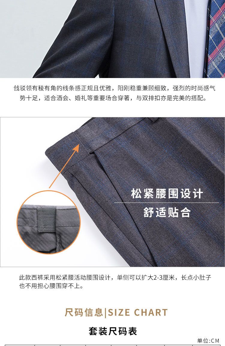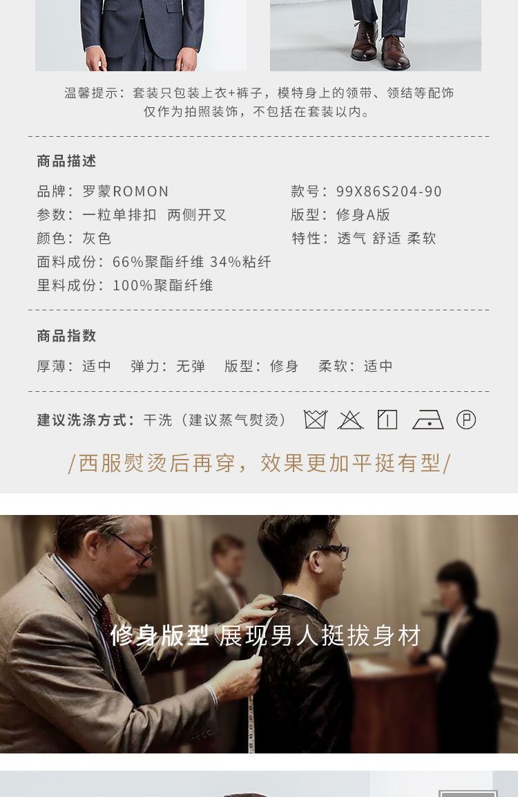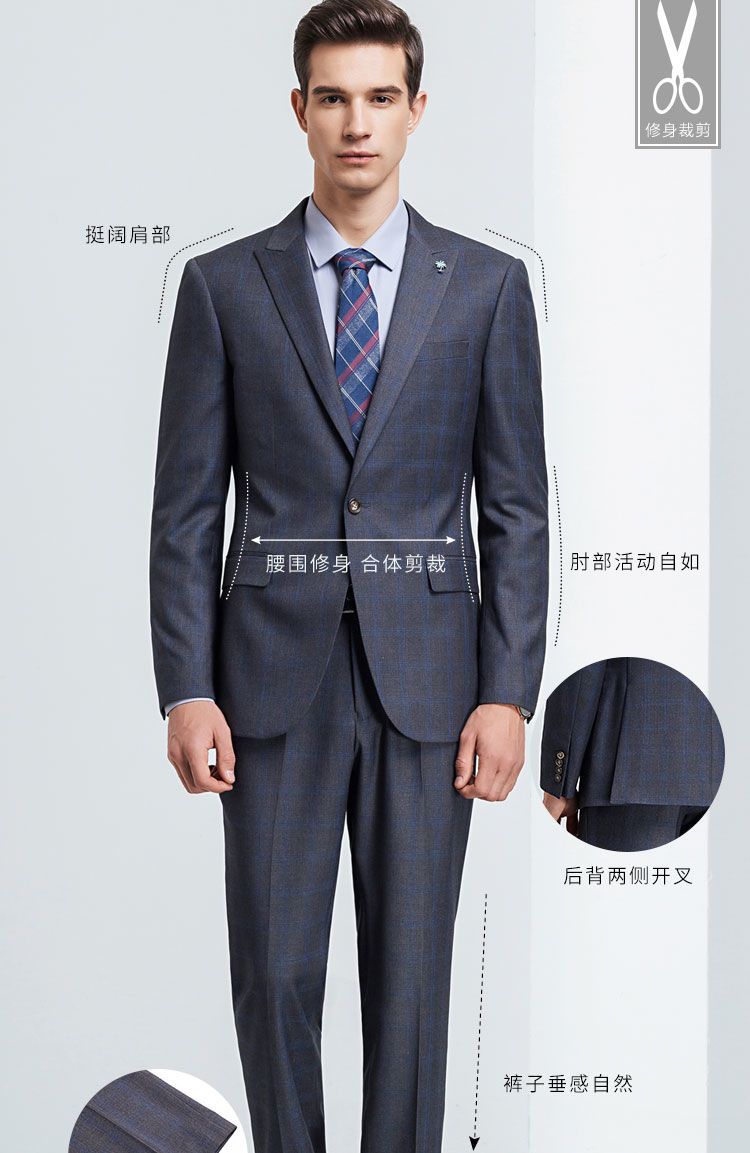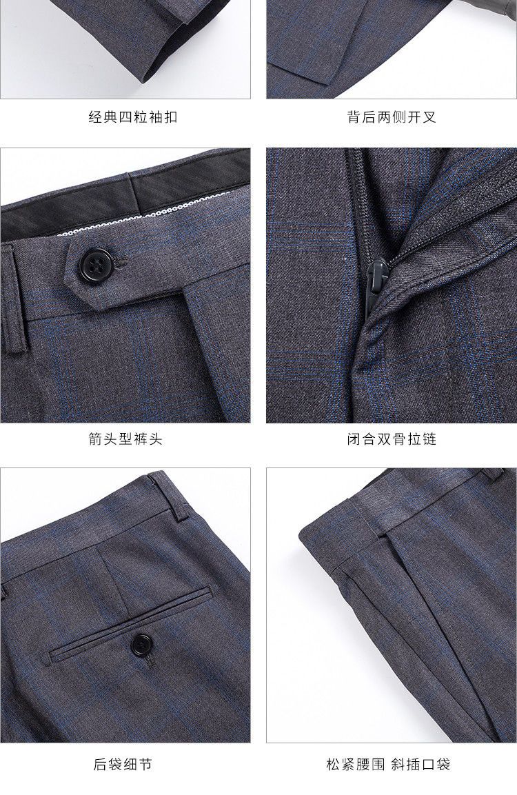 【上衣+裤子】罗蒙西装套装男士时尚修身款格纹西服新郎结婚礼服