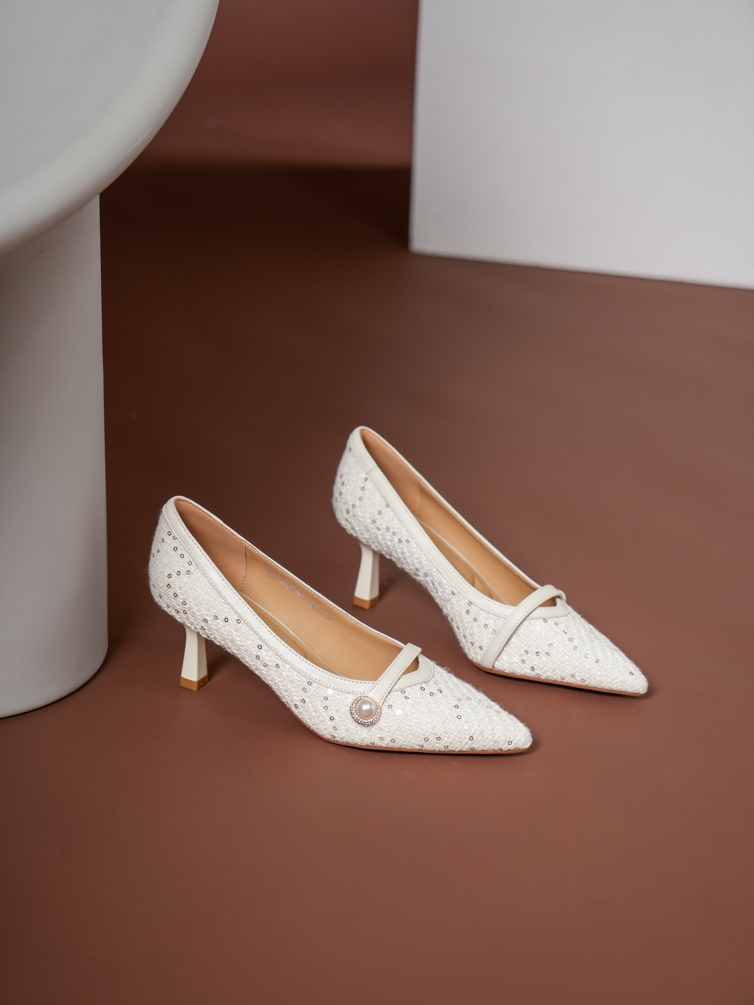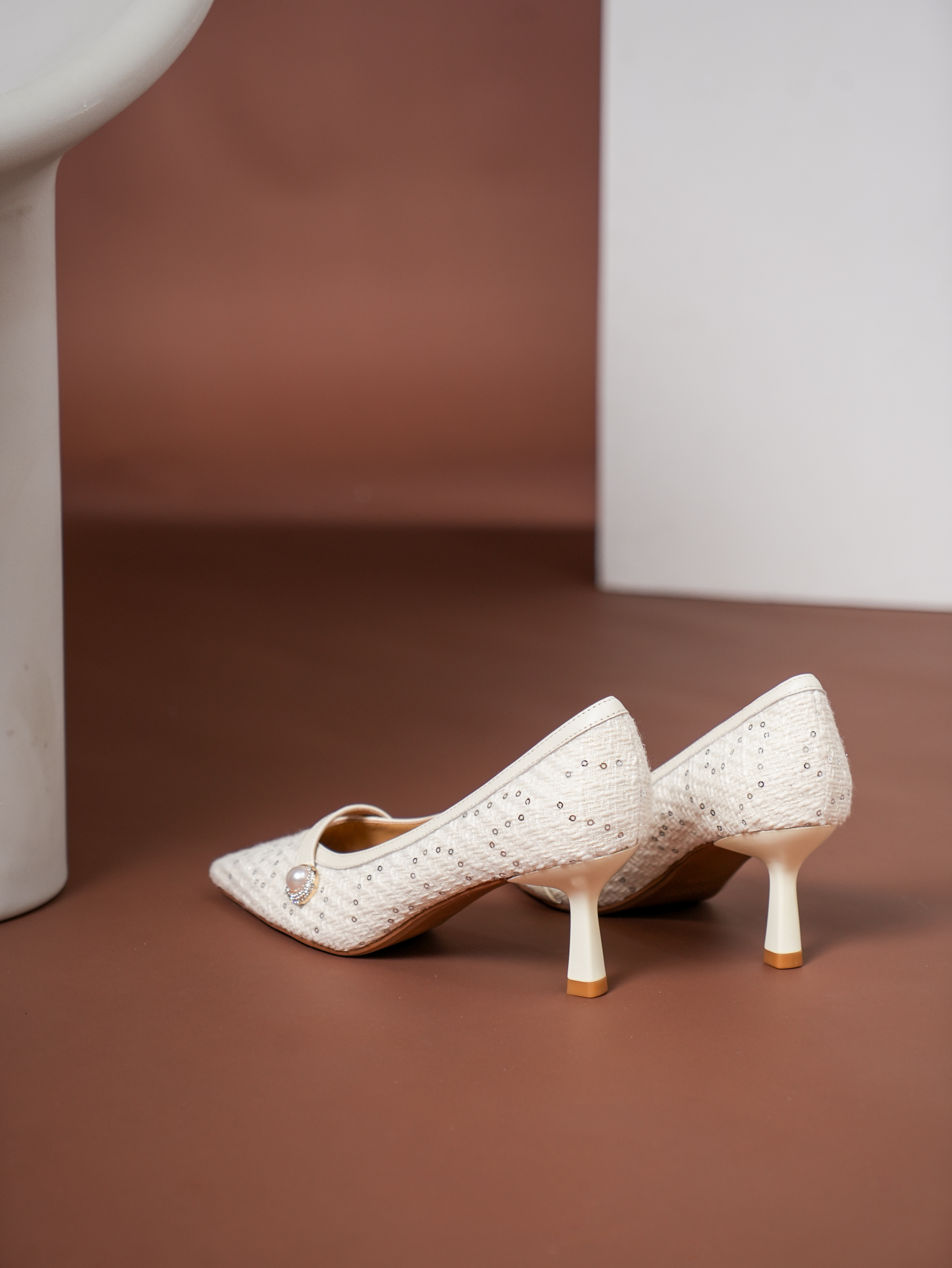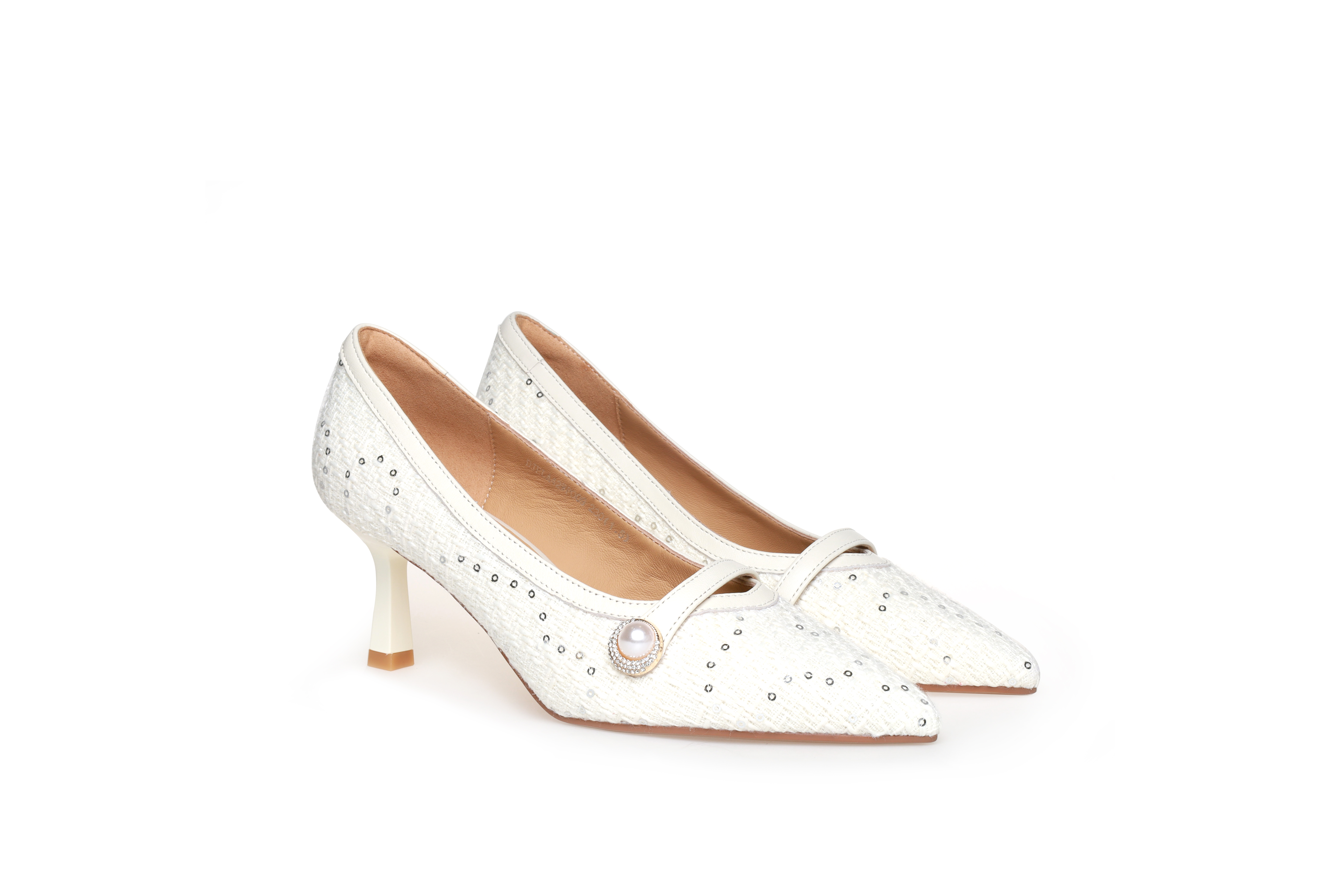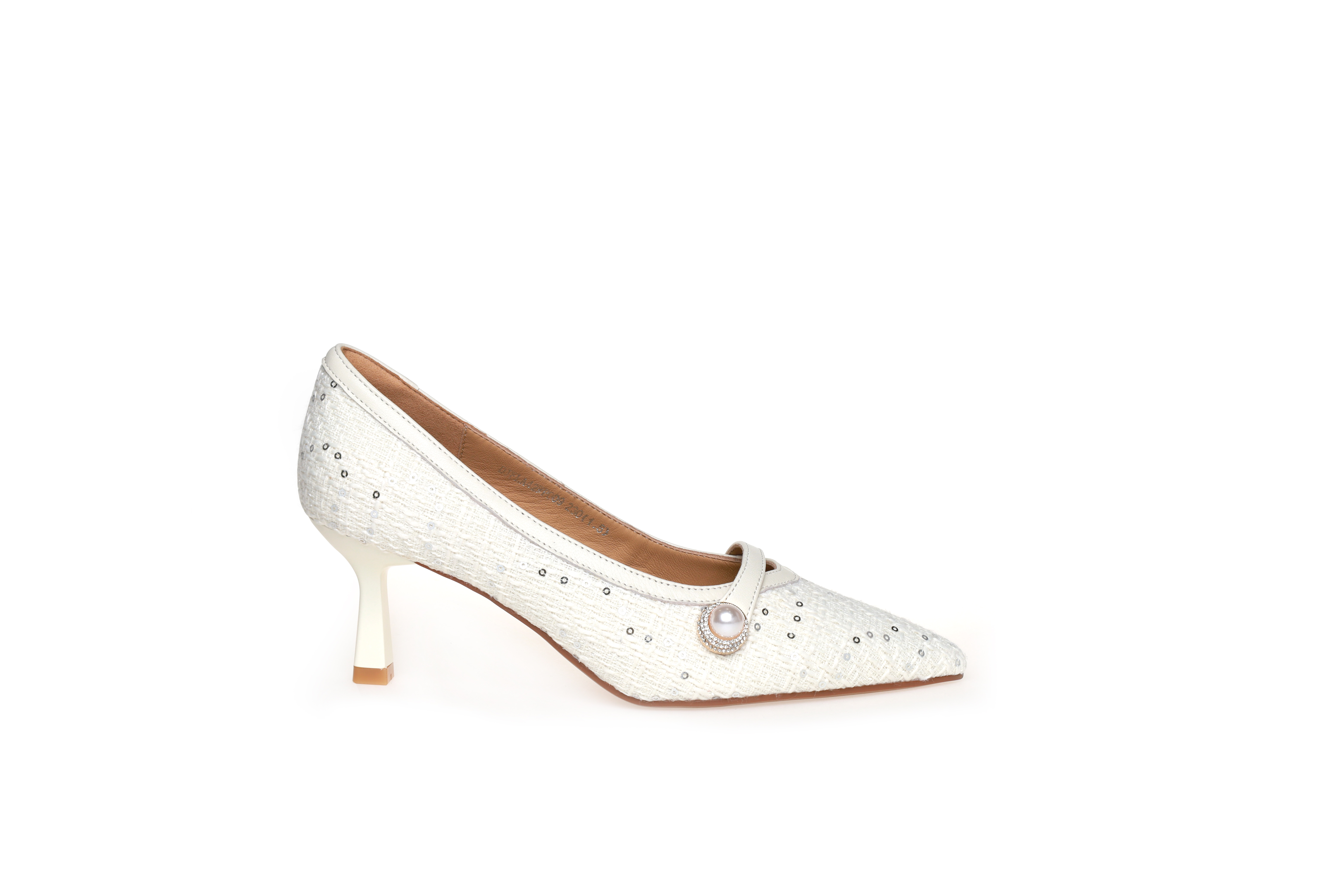 豪麟名鞋奥莱迪嘉女鞋皮鞋织物+羊皮革DJELA42WP009白色 原价1660元