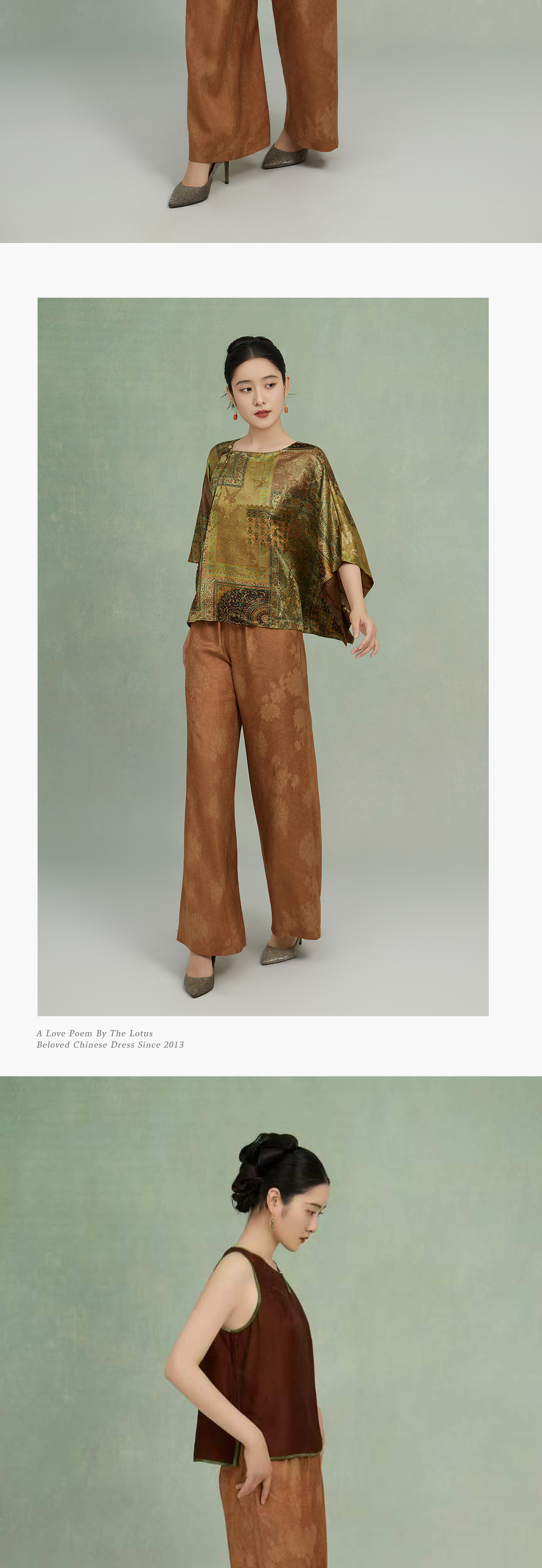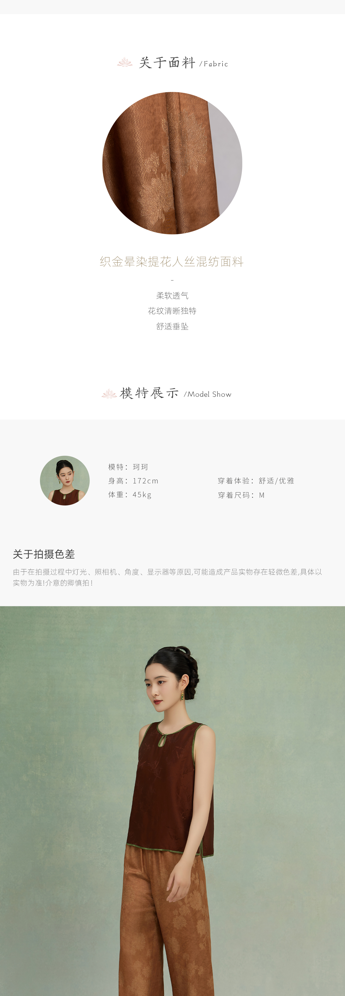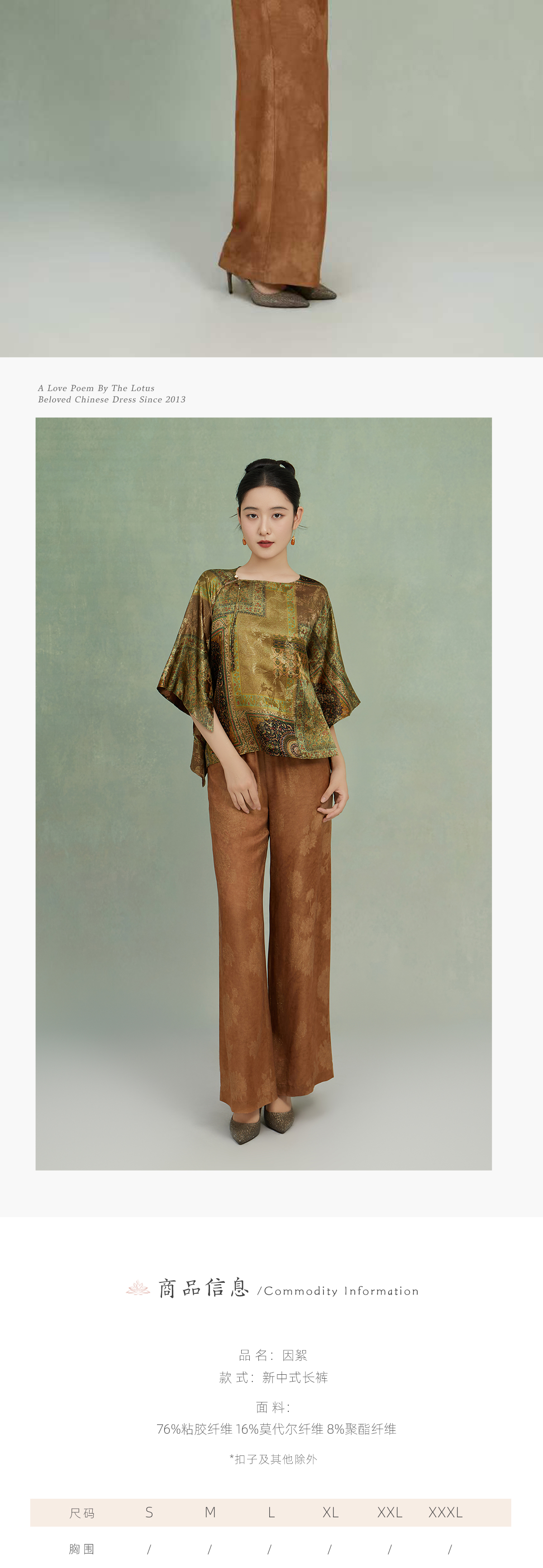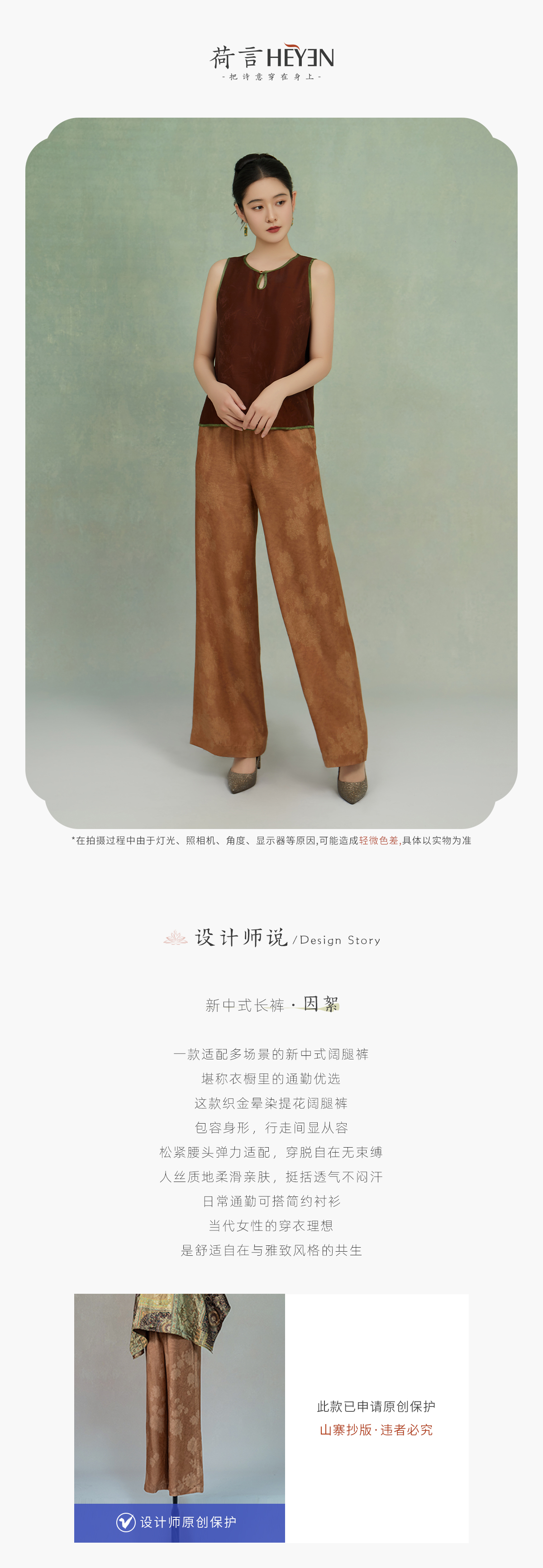 荷言GL 因絮 织金晕染山水花卉纹新中式阔腿裤松紧腰轻薄透气