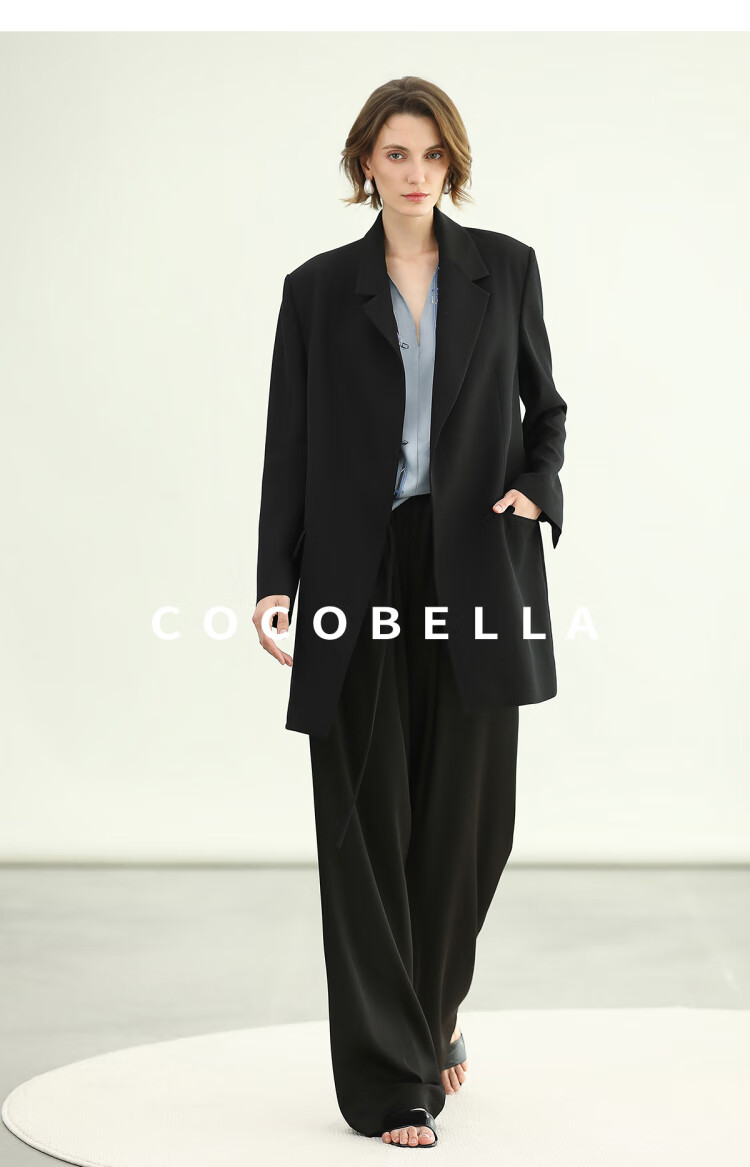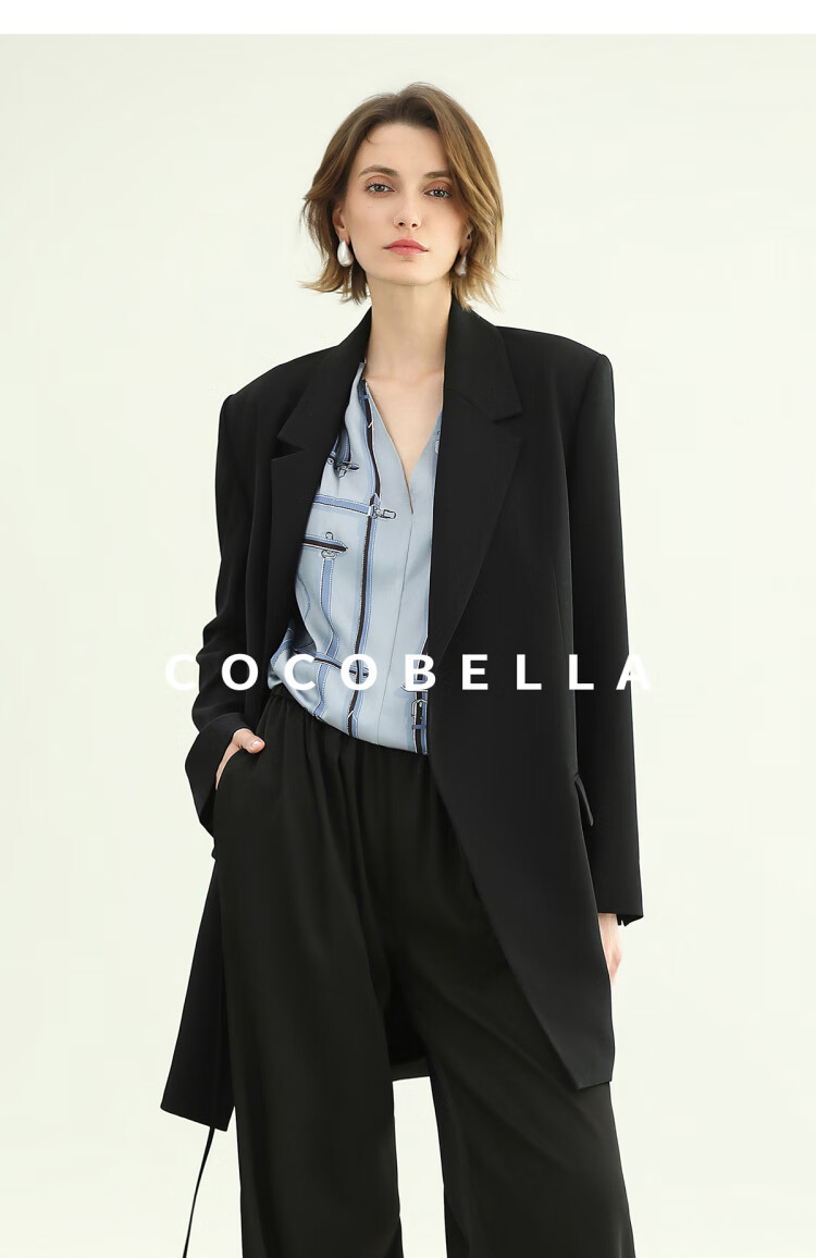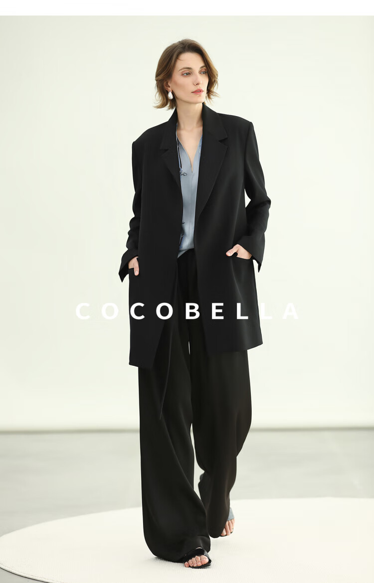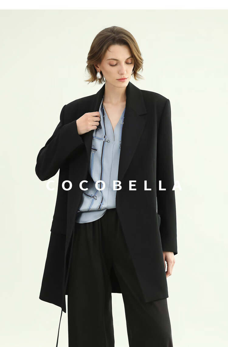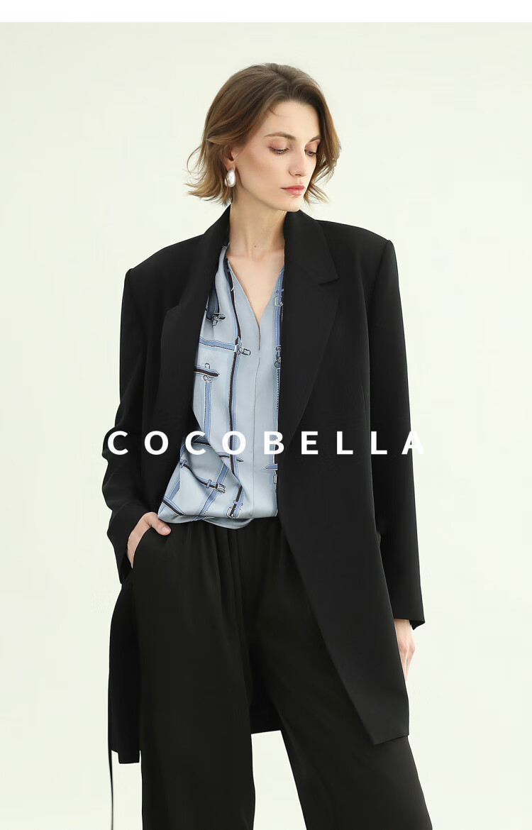 COCOBELLA高智感通勤长款外套纸片人女秋冬系带西装SI3098