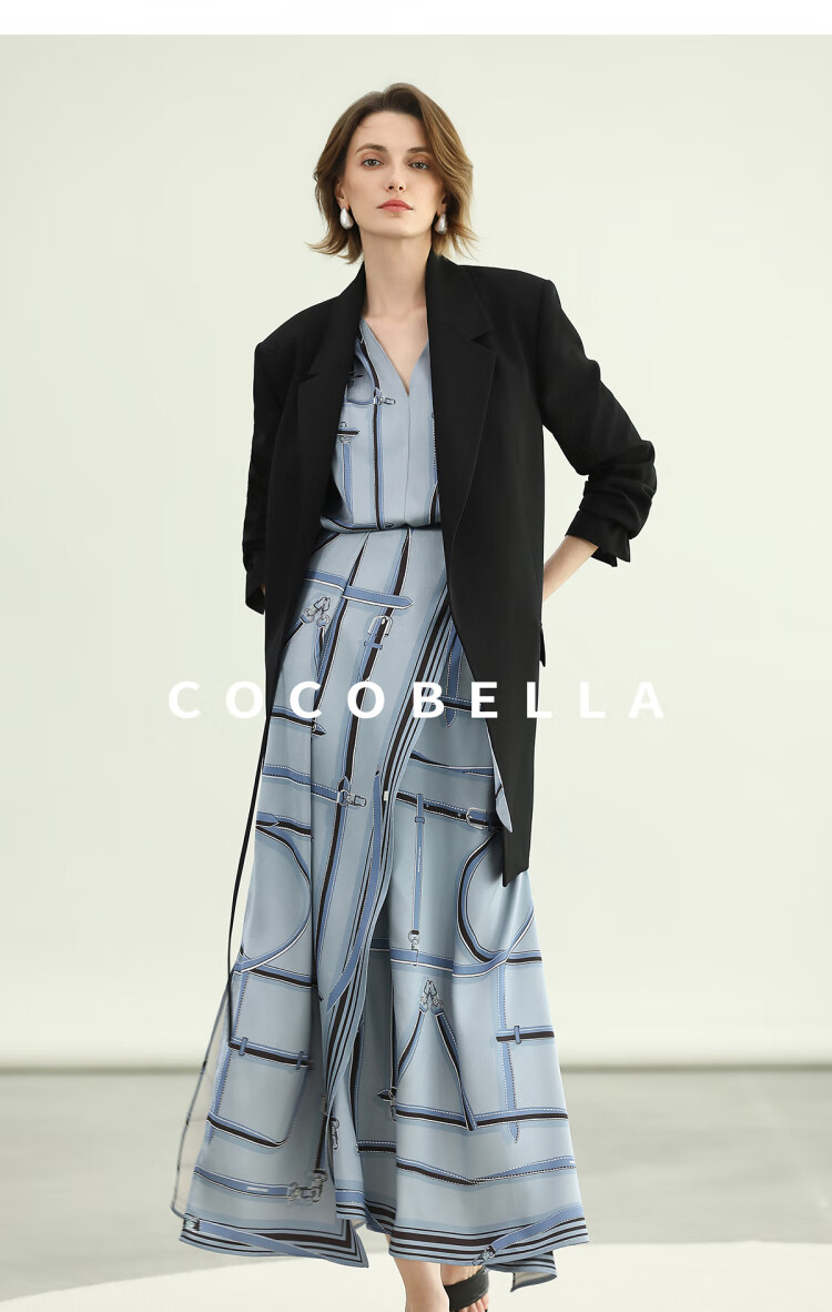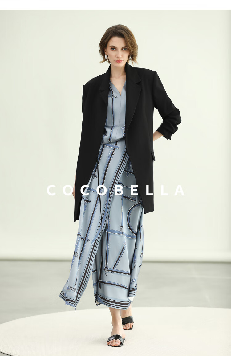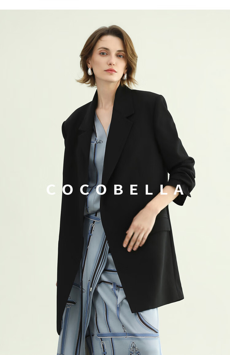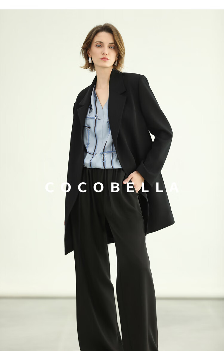 COCOBELLA高智感通勤长款外套纸片人女秋冬系带西装SI3098