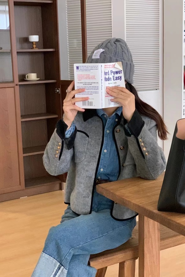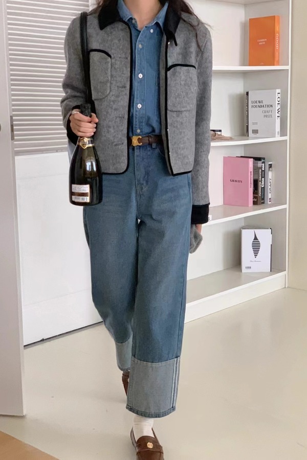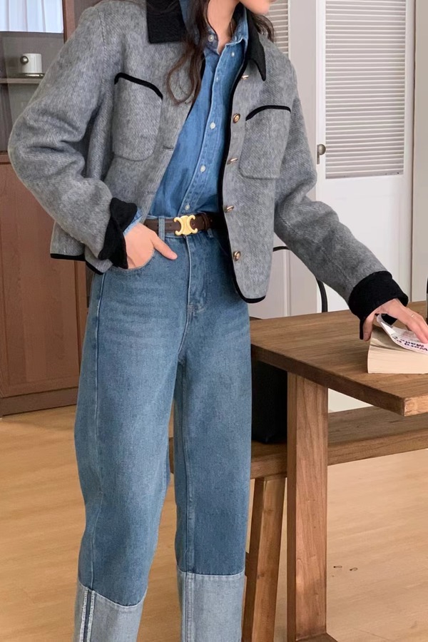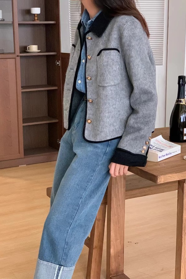 LNNNS 黑灰撞色翻领短款小香风外套 19513