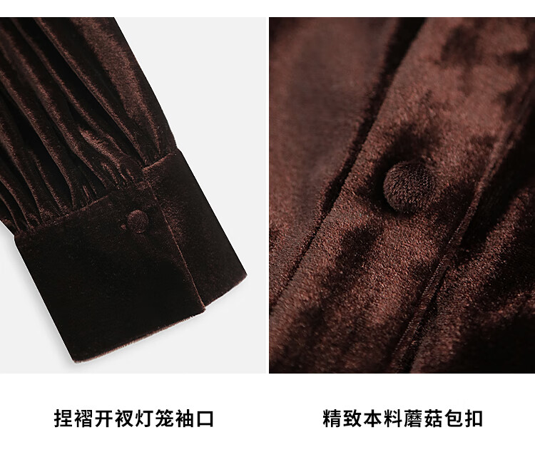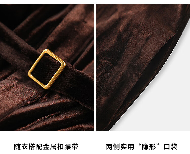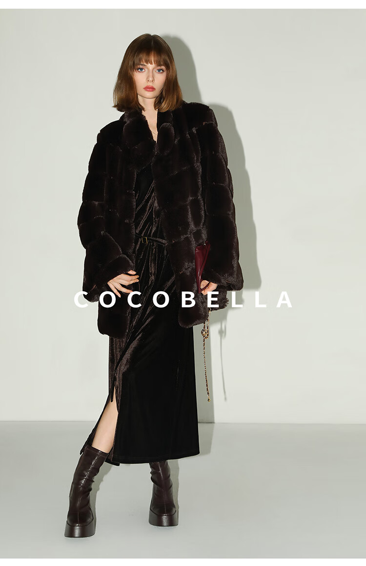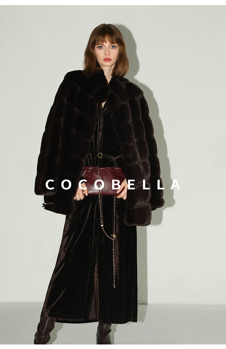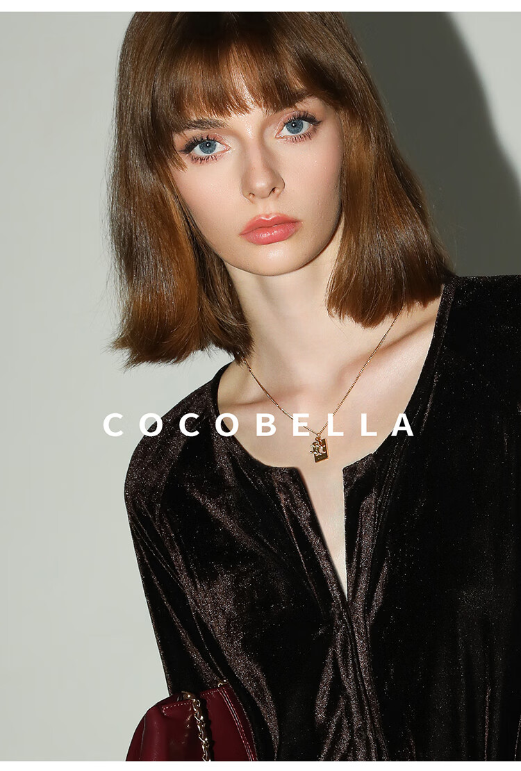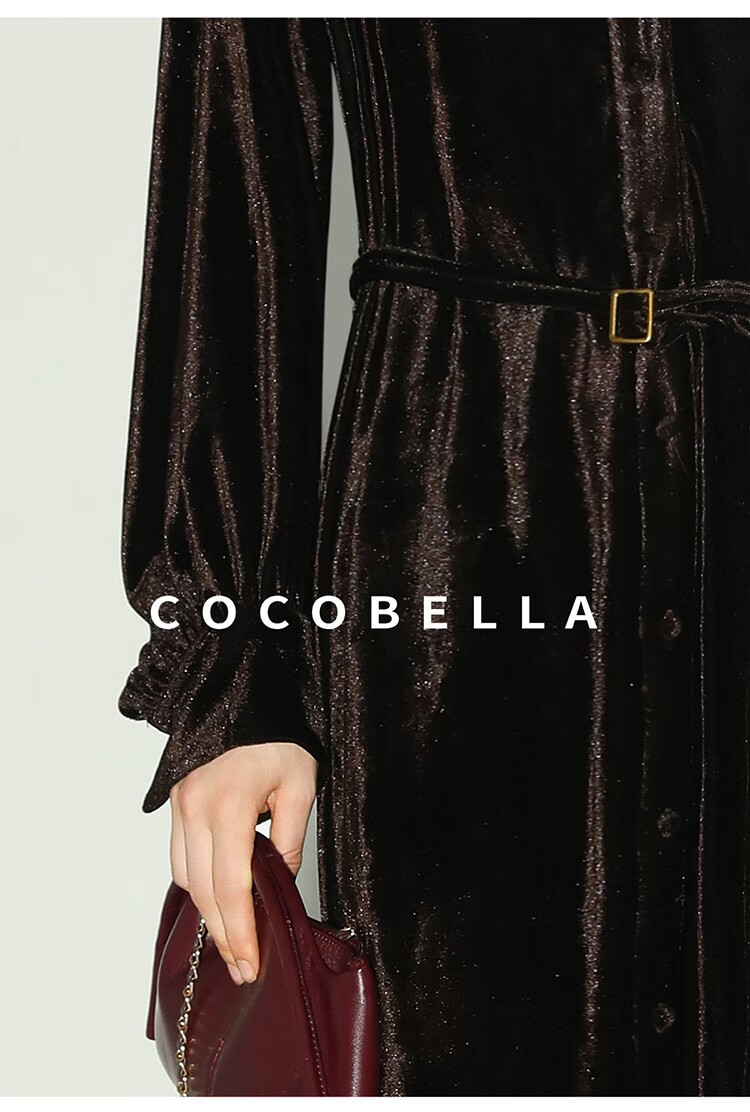 COCOBELLA静奢风丰盈天鹅绒长袖连衣裙质感丝绒礼服裙FR7088