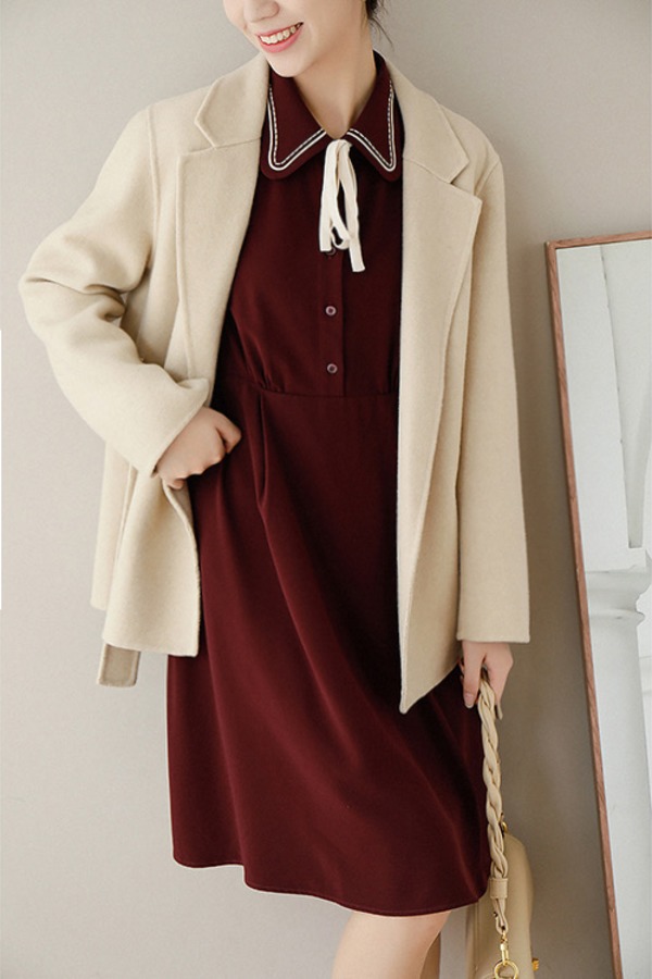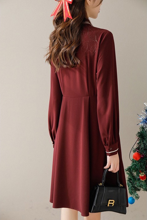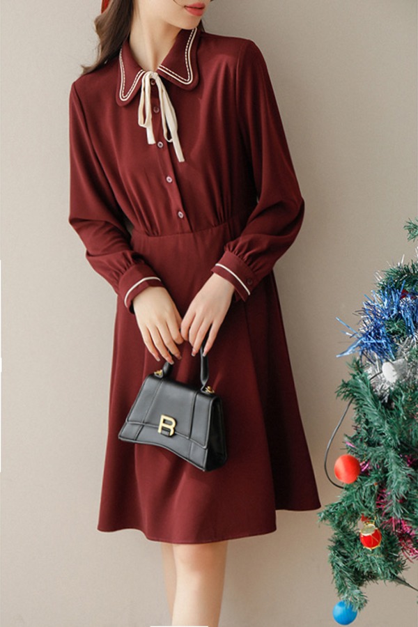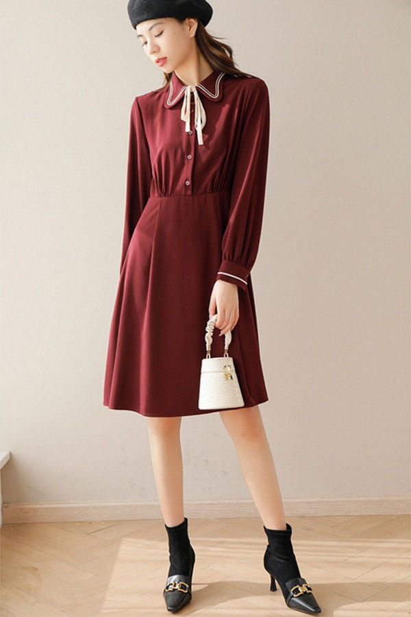 amadella 复古娃娃领蝴蝶结翻领连衣裙 17673