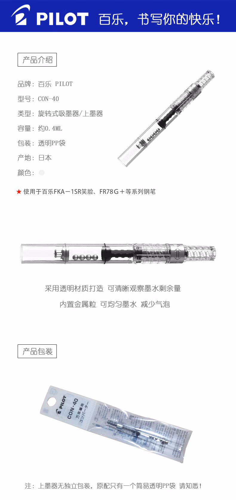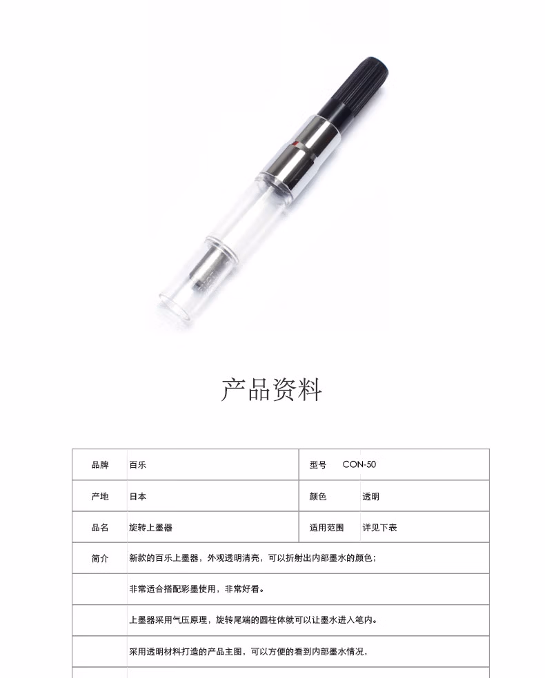 百乐(PILOT)旋转上墨器 吸墨器 CON-40