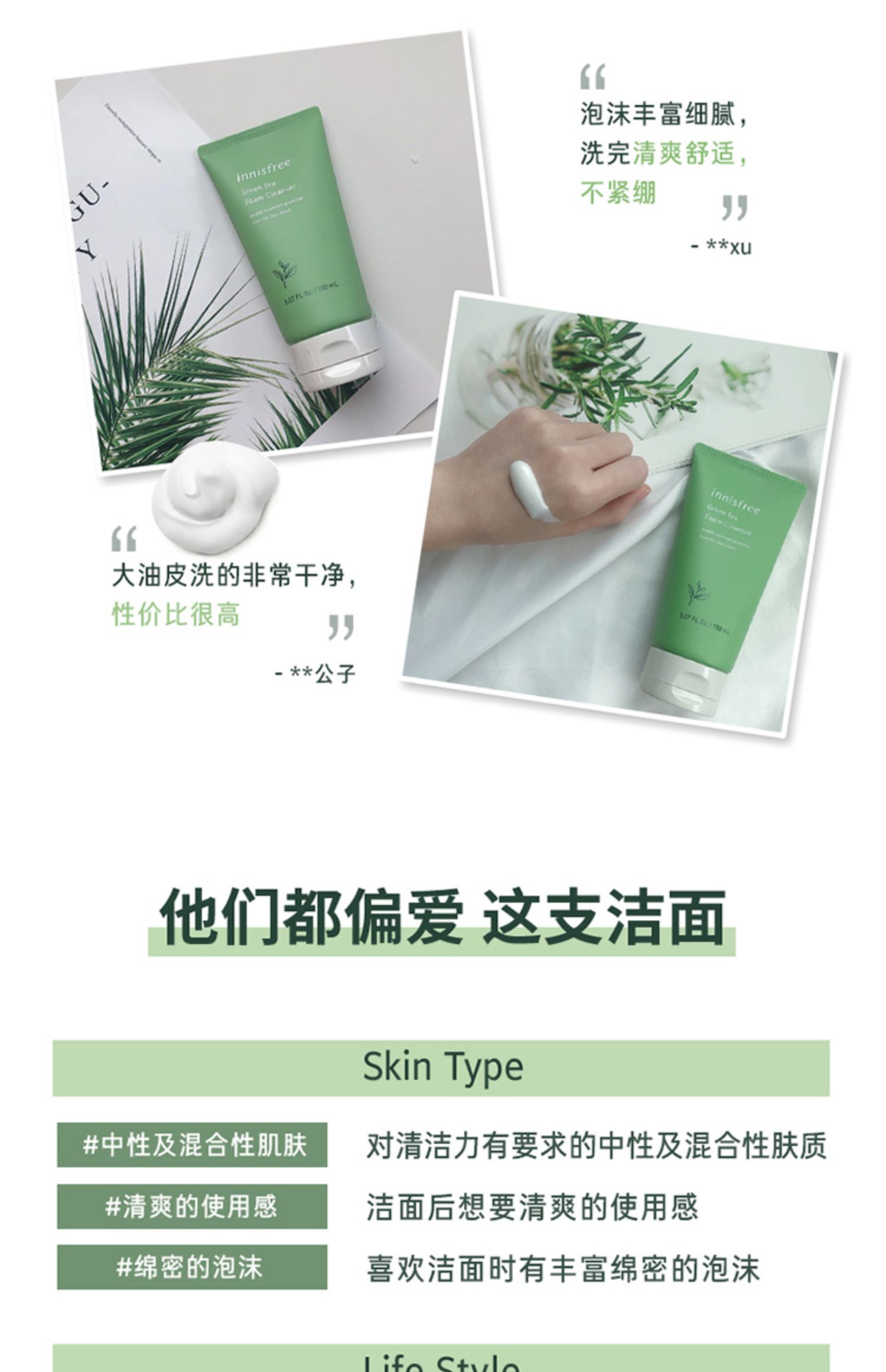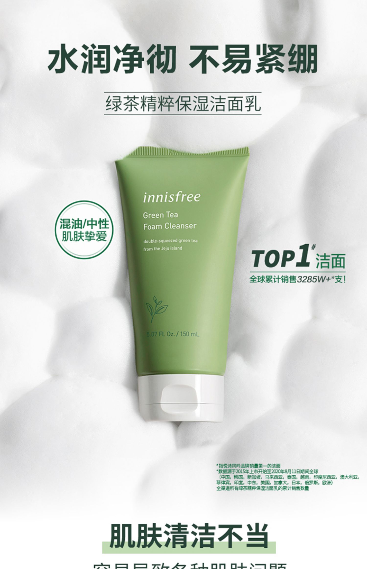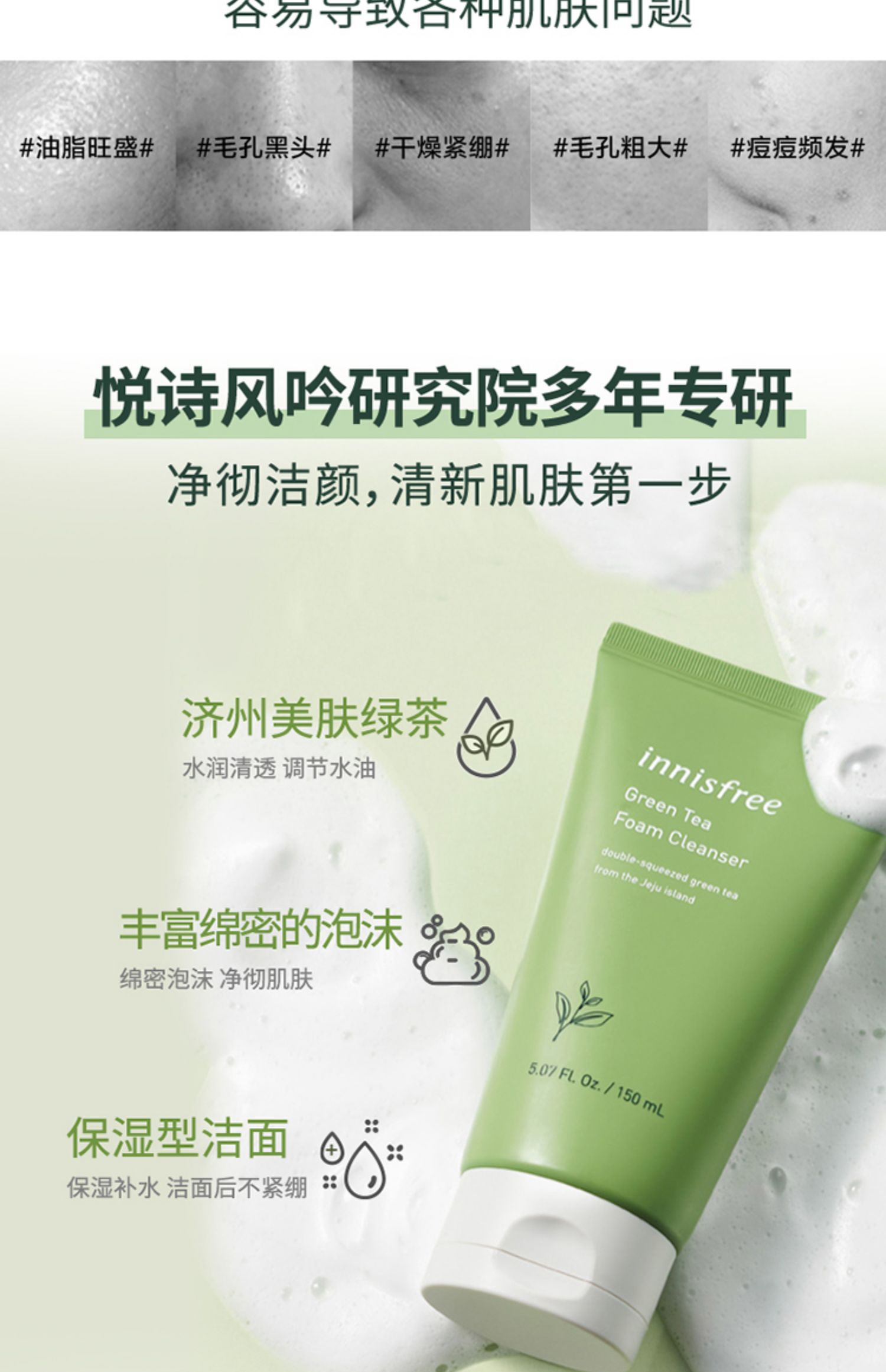 悦诗风吟innisfree绿茶洗面奶专用控油温和清洁毛孔 150ml