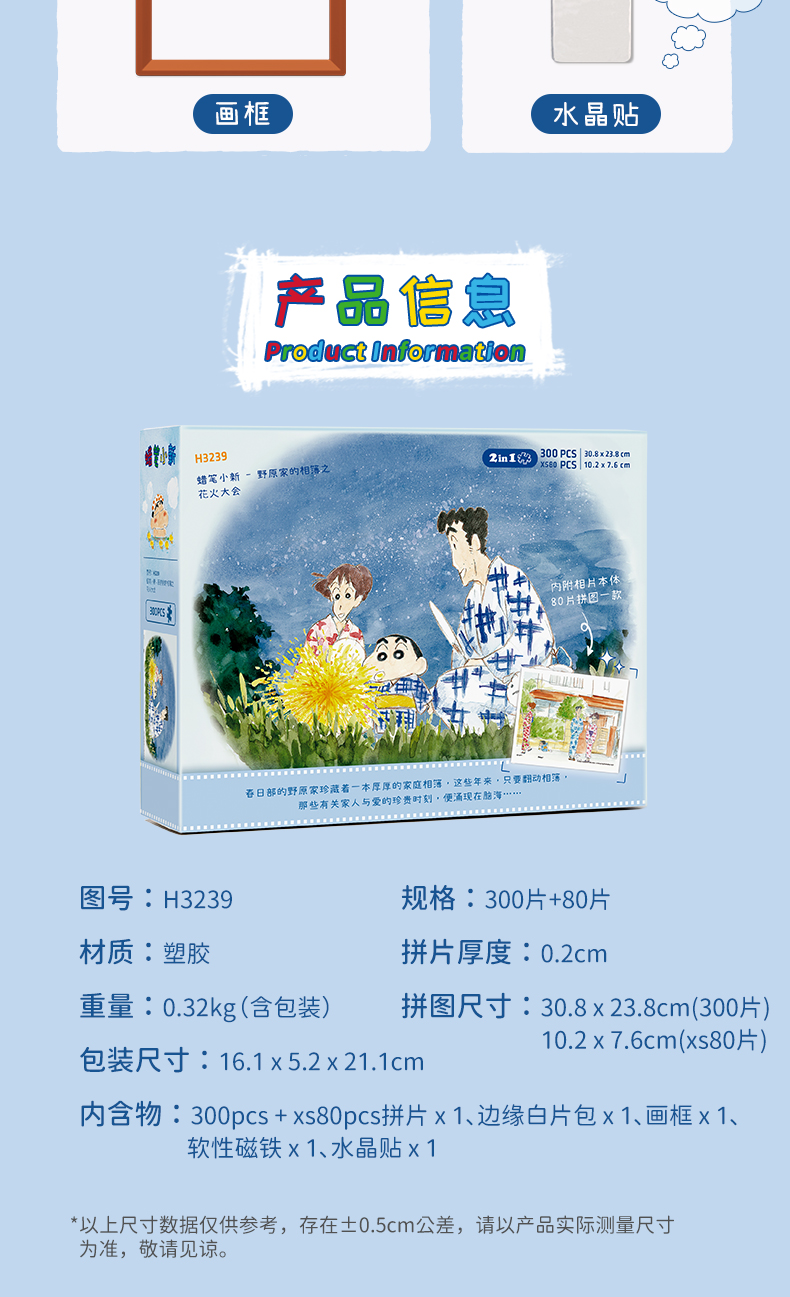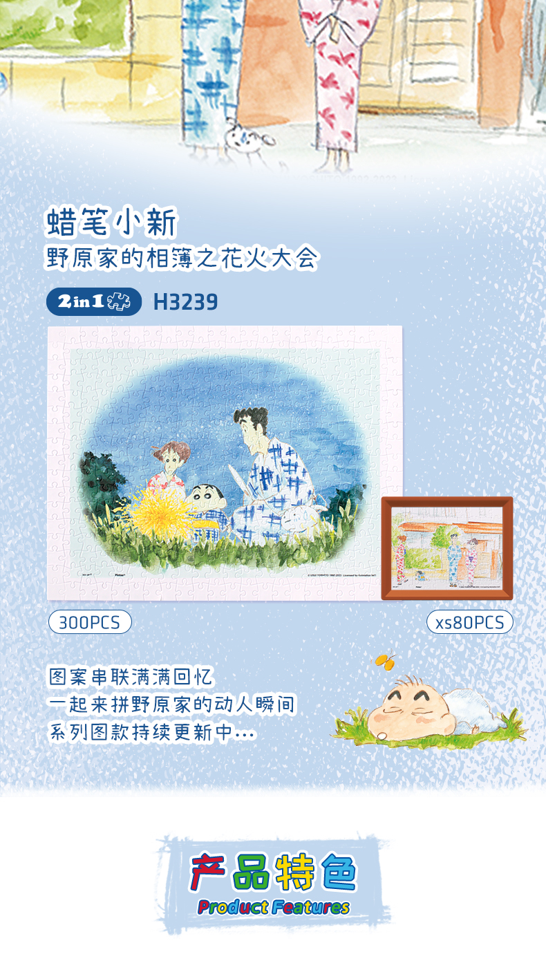 300片 平面拼图塑料拼图 H3239 蜡笔小新-野原家的相簿之花火大会(内附80片拼图)