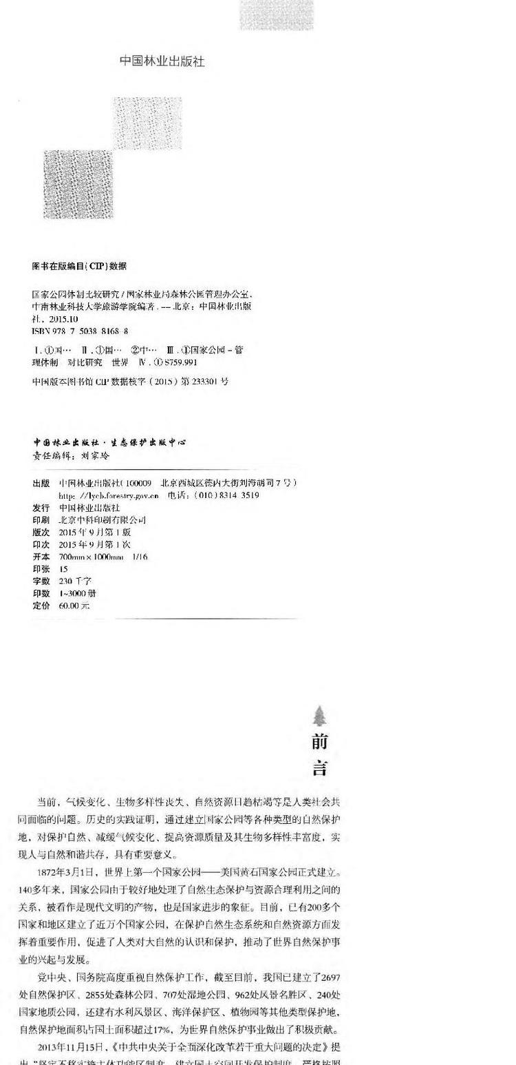 国家公园体制比较研究 8168 国家林业局森林公园管理办公室 中南林业科技大学旅游学院 编著 中国林业出版社 畅销书籍
