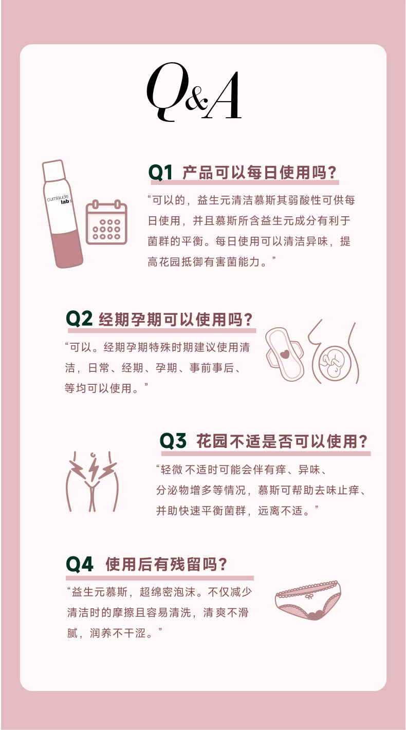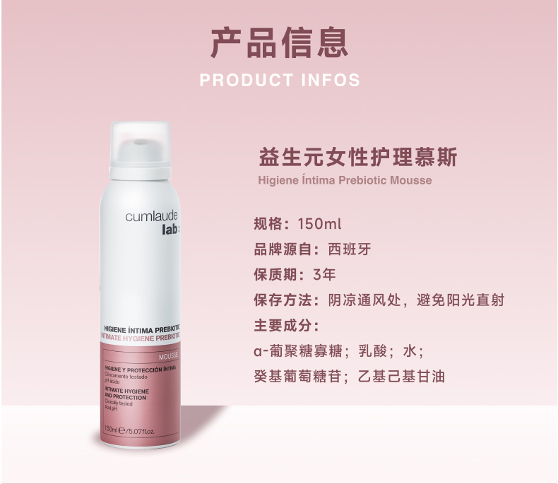 买三送凝胶 平衡菌群 Cumlaude珂蔓朵 益生元女性护理慕斯150ml