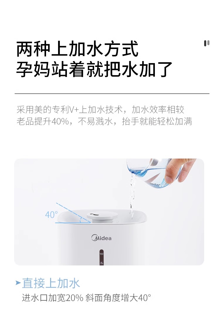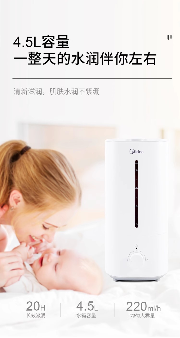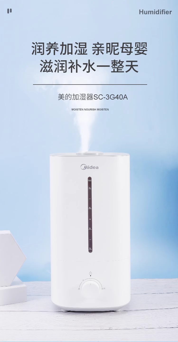 美的加湿器孕妇母婴儿小型低噪空气净化加湿器大喷雾量SC-3G40S