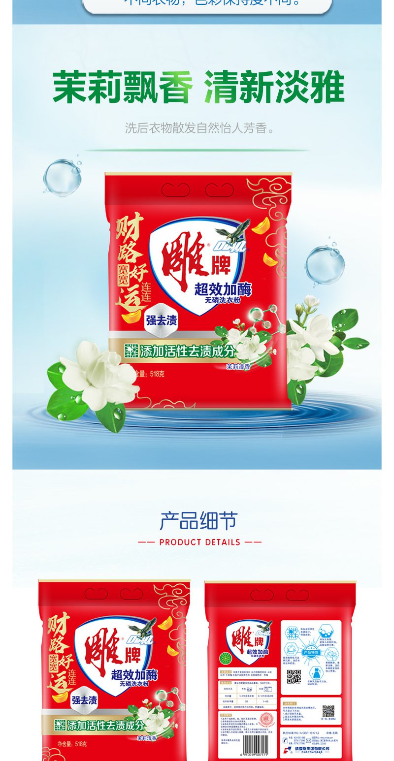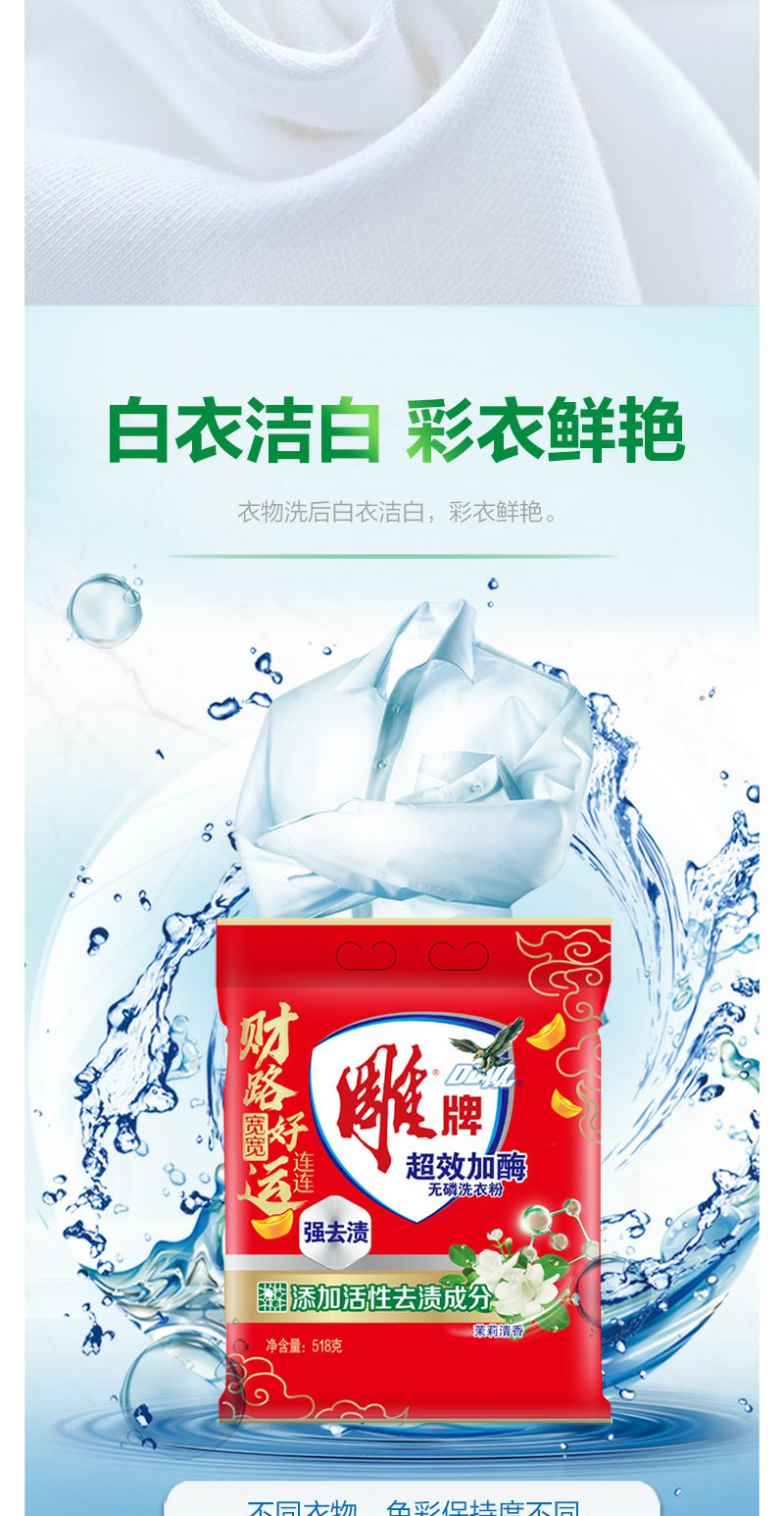 雕牌 超效加酶洗衣粉 不伤手去污去渍易漂洗 518g/袋
