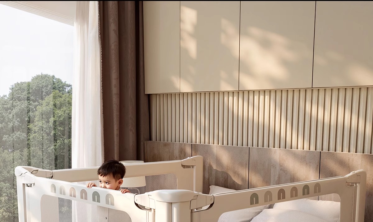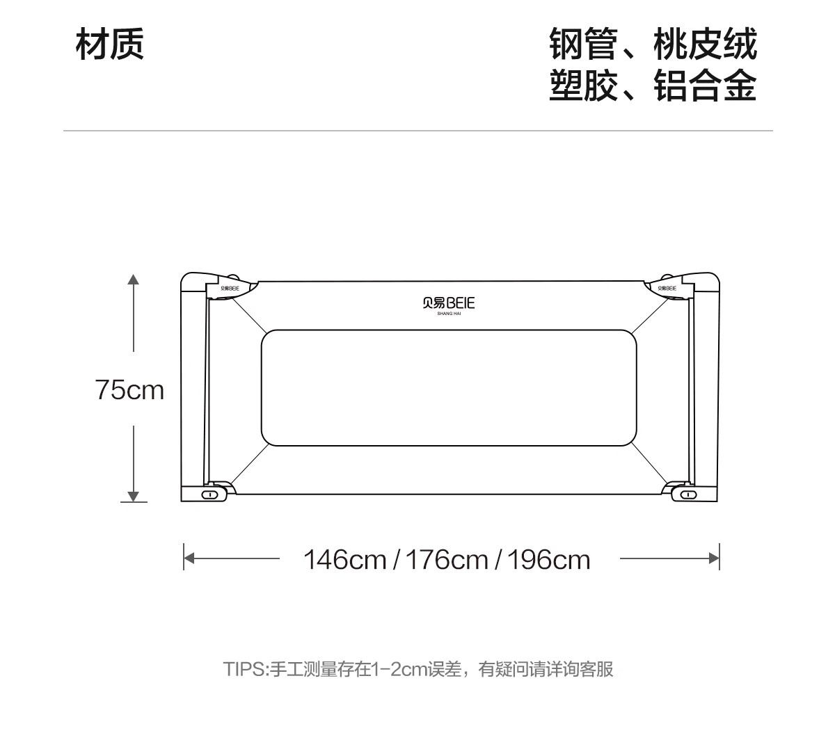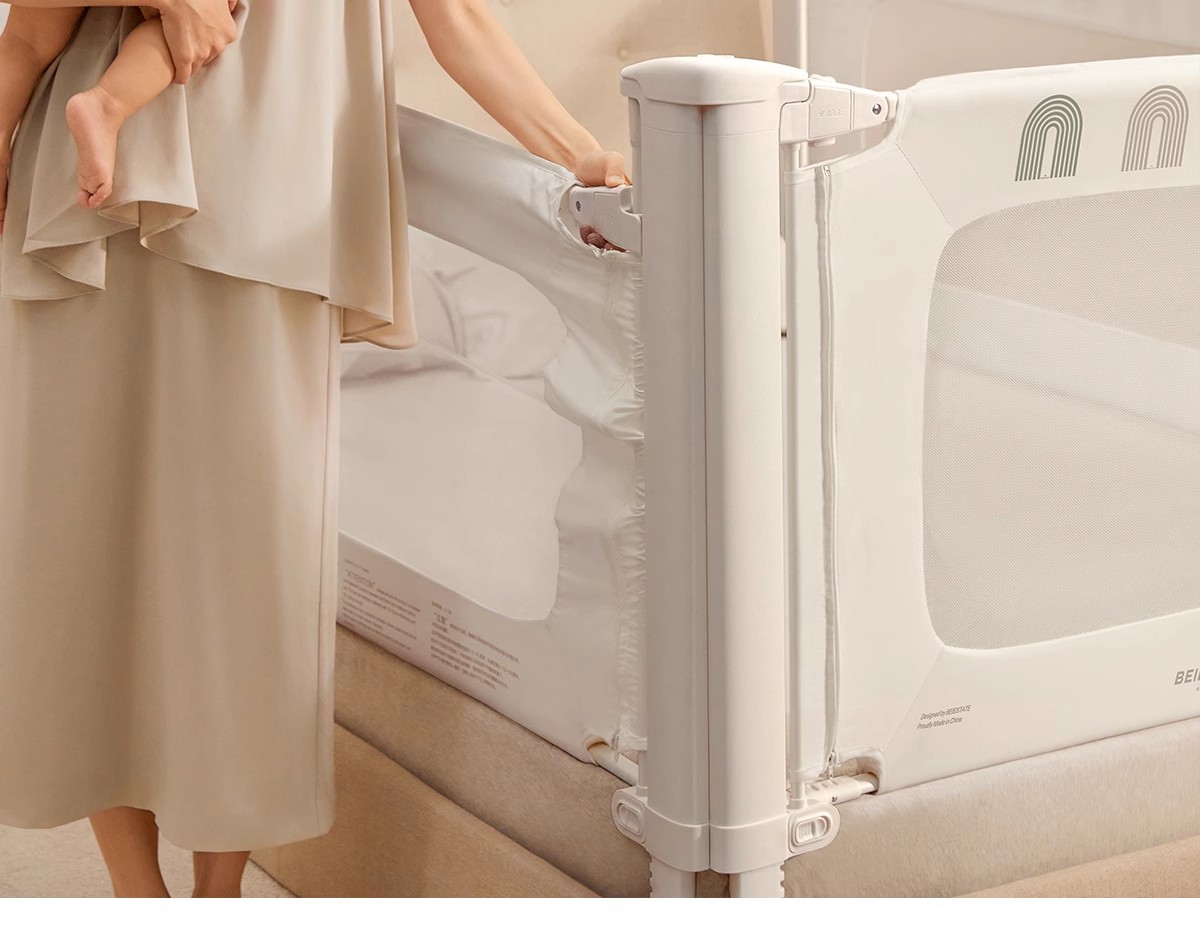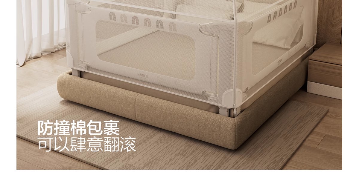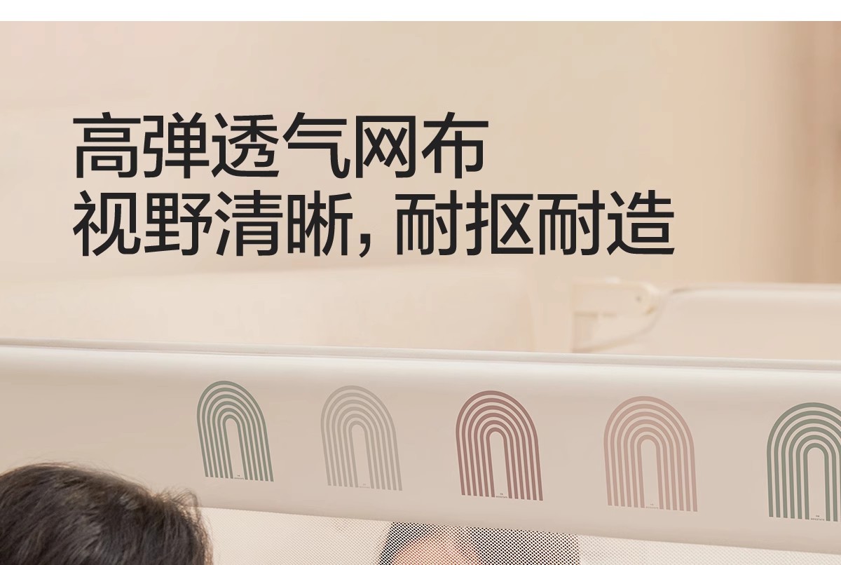 贝易彩虹床围栏宝宝防摔防护栏儿童床边挡板婴儿加高床围护栏一面【会员下单送绑带,三面加赠床头杆1.8 米+惯性小汽车】【收到后,一片一片打开,不要一起安装。使用过程中,禁止使劲按压上杆以防变形】