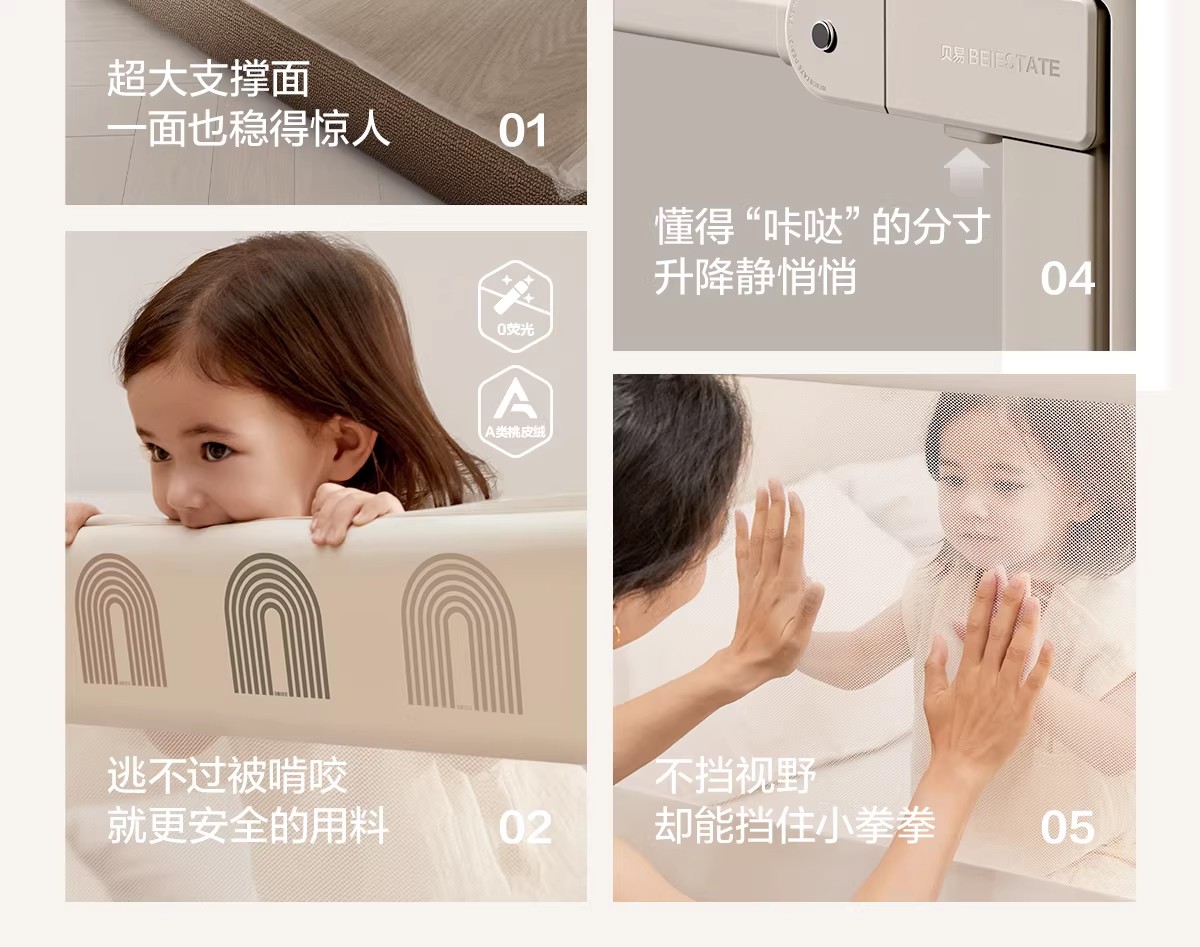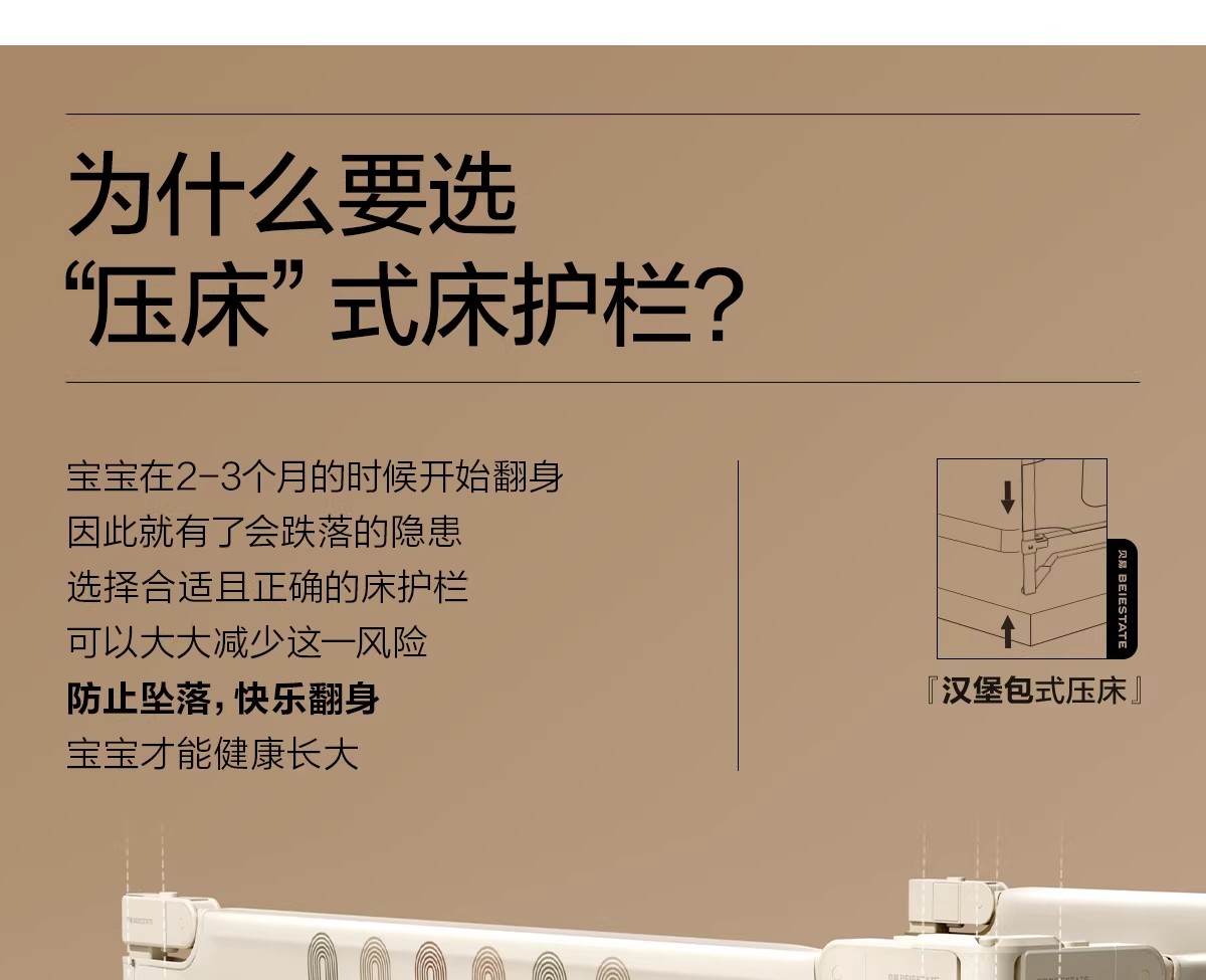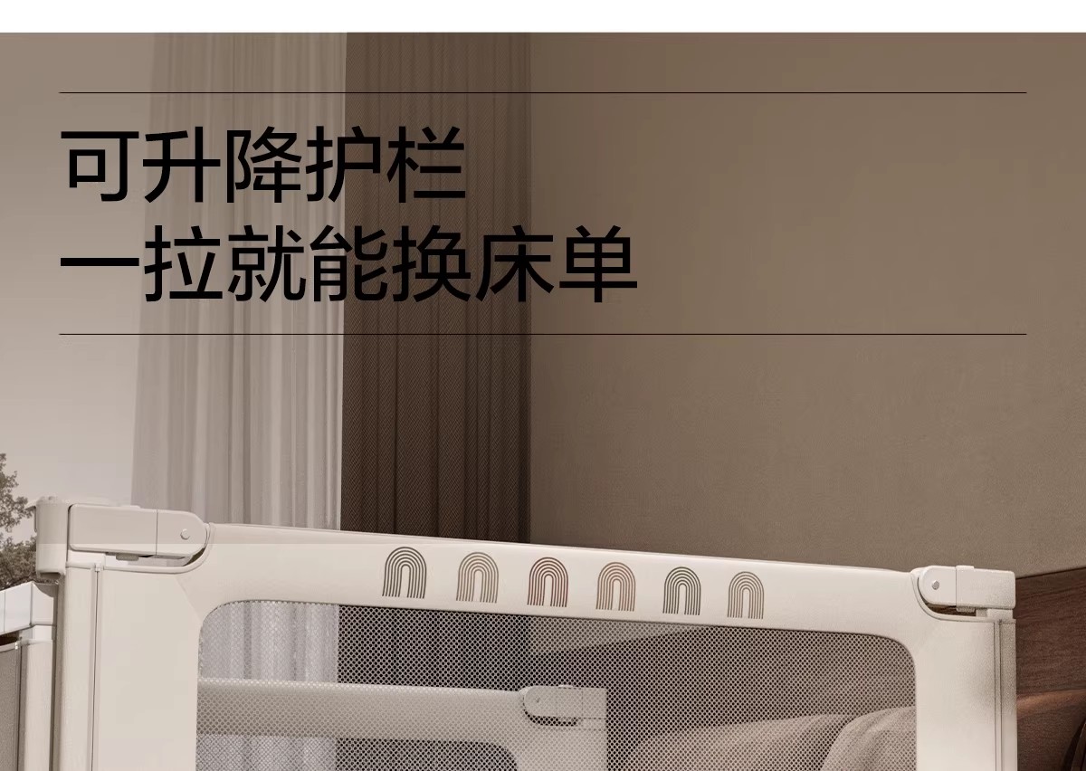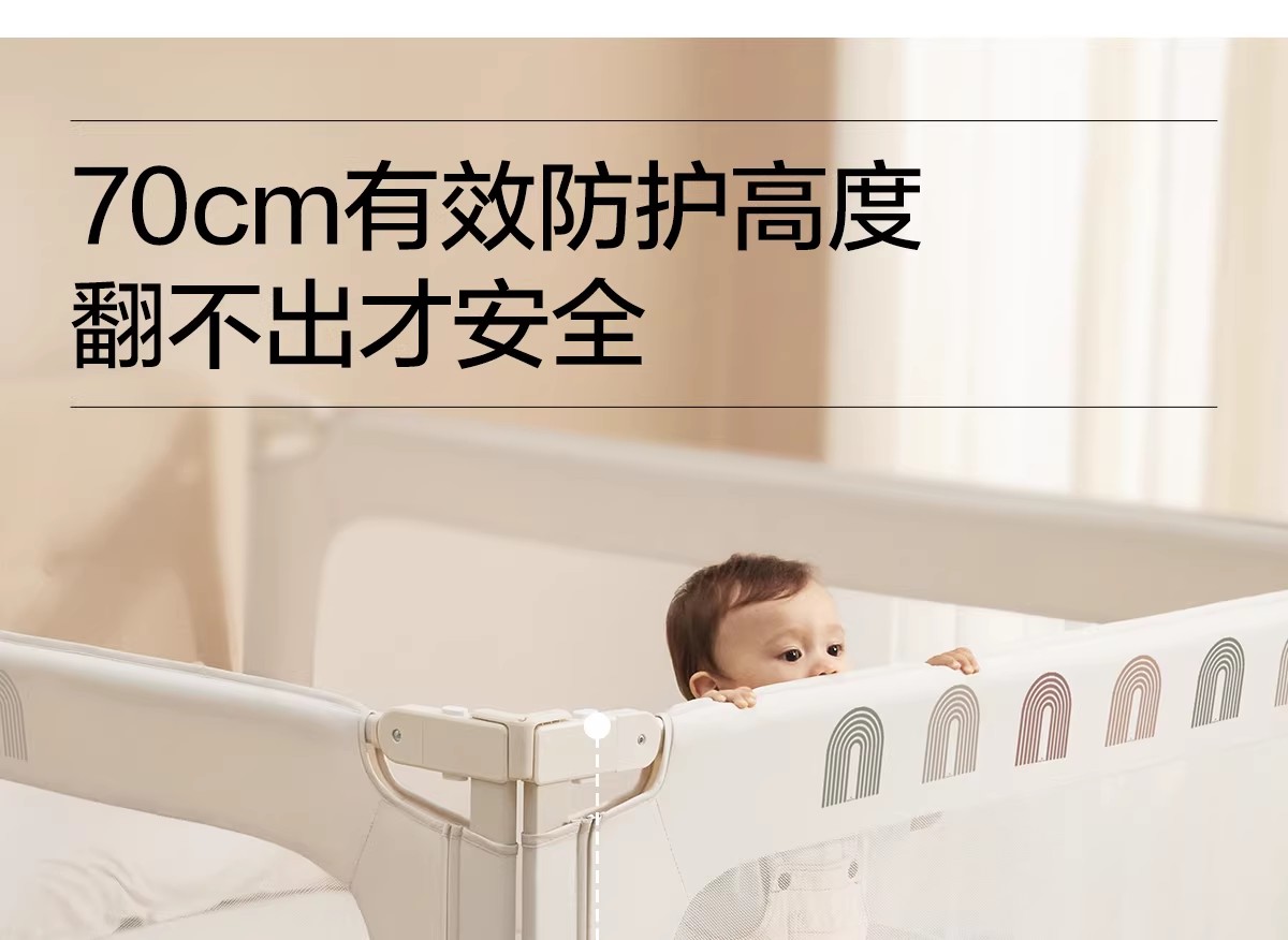 【佳琦直播价】贝易彩虹床围栏宝宝防摔防护栏儿童床边挡板婴儿加高床围护栏一面【佳琦直播间升级款价格不带赠品哦!】【回型款式:会员下单送绑带,三面加赠床头杆1.8 米+惯性小汽车】