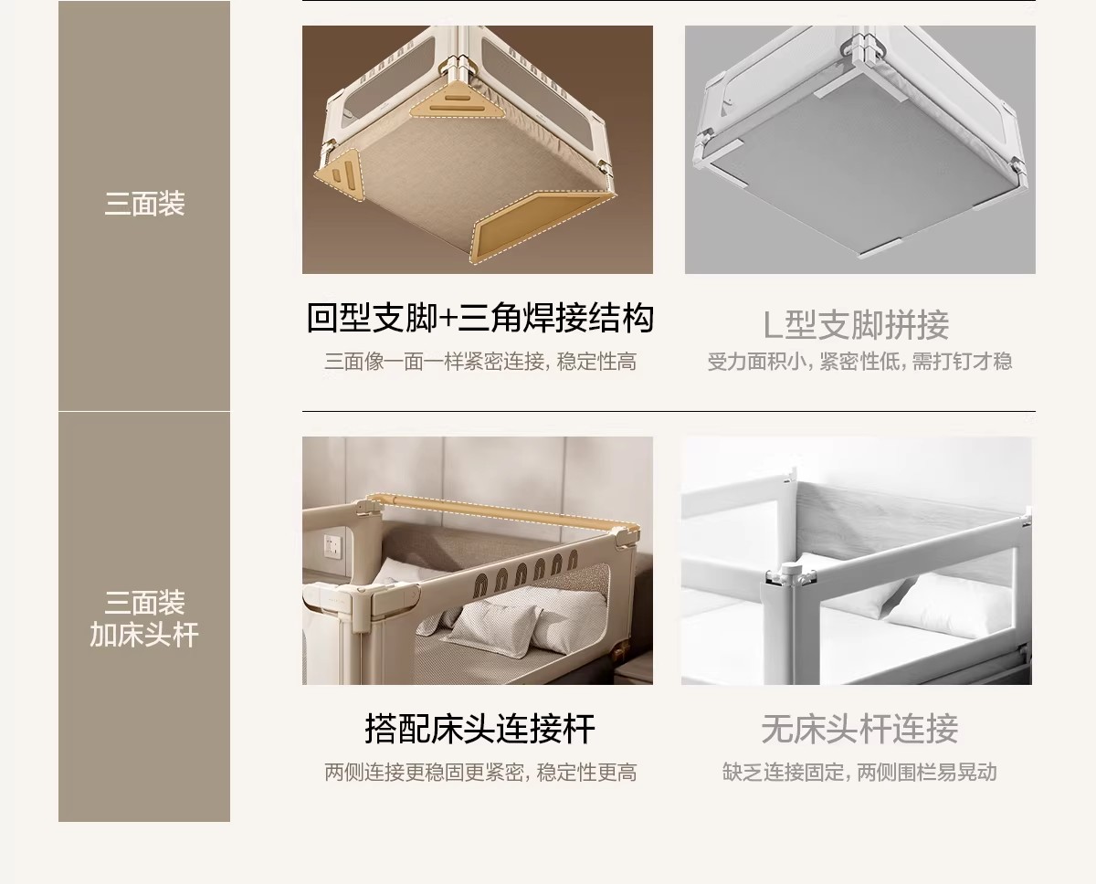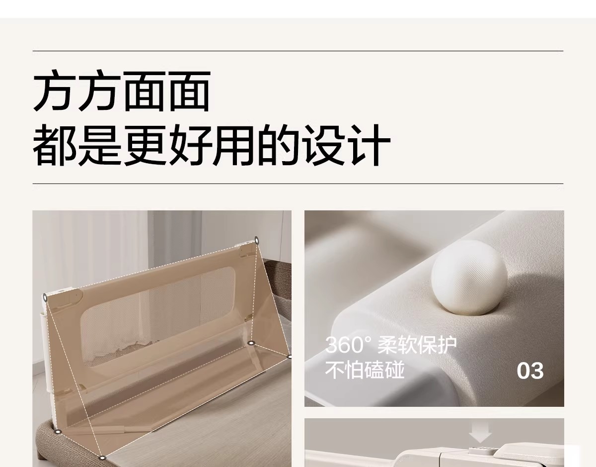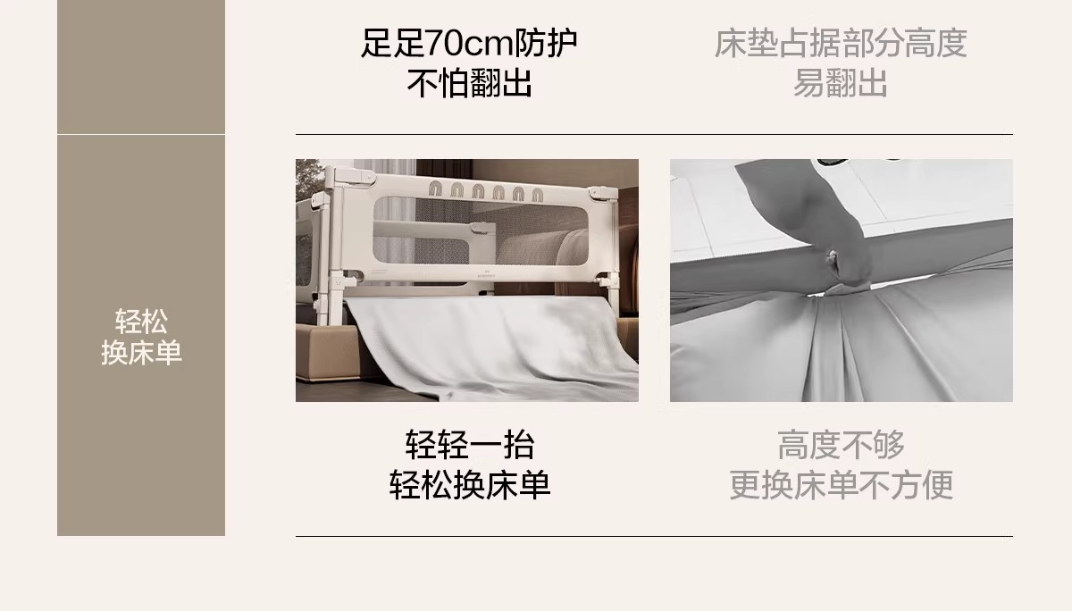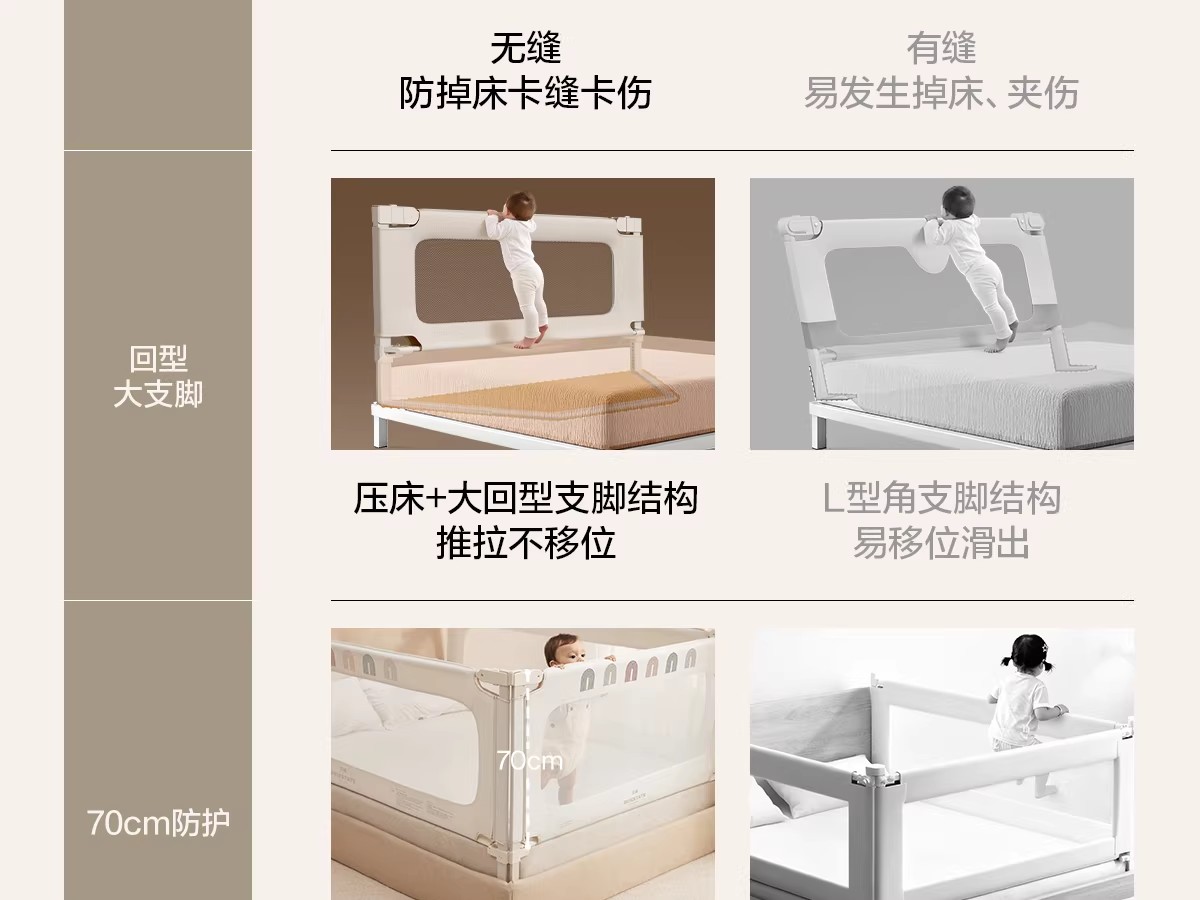 【佳琦直播价】贝易彩虹床围栏宝宝防摔防护栏儿童床边挡板婴儿加高床围护栏一面【佳琦直播间升级款价格不带赠品哦!】【回型款式:会员下单送绑带,三面加赠床头杆1.8 米+惯性小汽车】