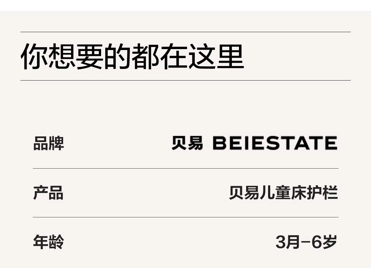 - 「BEIESTATE贝易」以极简设计为风格,主打兼顾设计、品 质和性价比的母婴产品,以创造极致细腻、不张扬、 不世俗的当代母婴用具,为用户日常亲子生活与幼儿 的启蒙早教提供新选择。