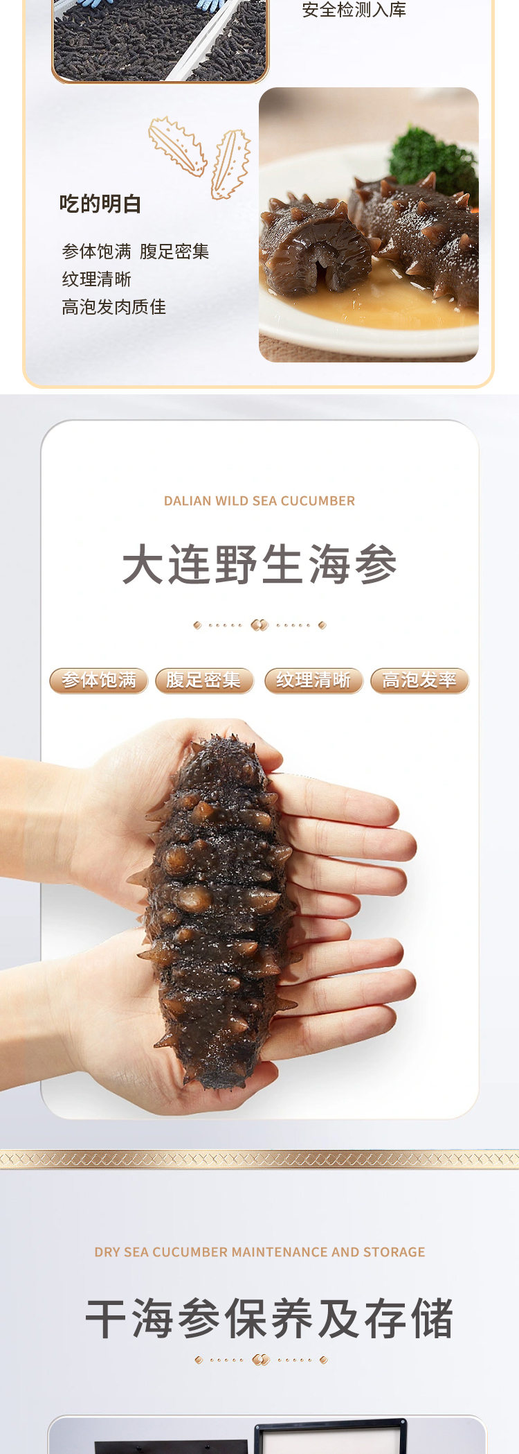 【GJ链接请勿用!!!】【淡干辽刺参礼盒】大连深海底播6-7年,六排刺淡干辽刺参,10倍泡发!